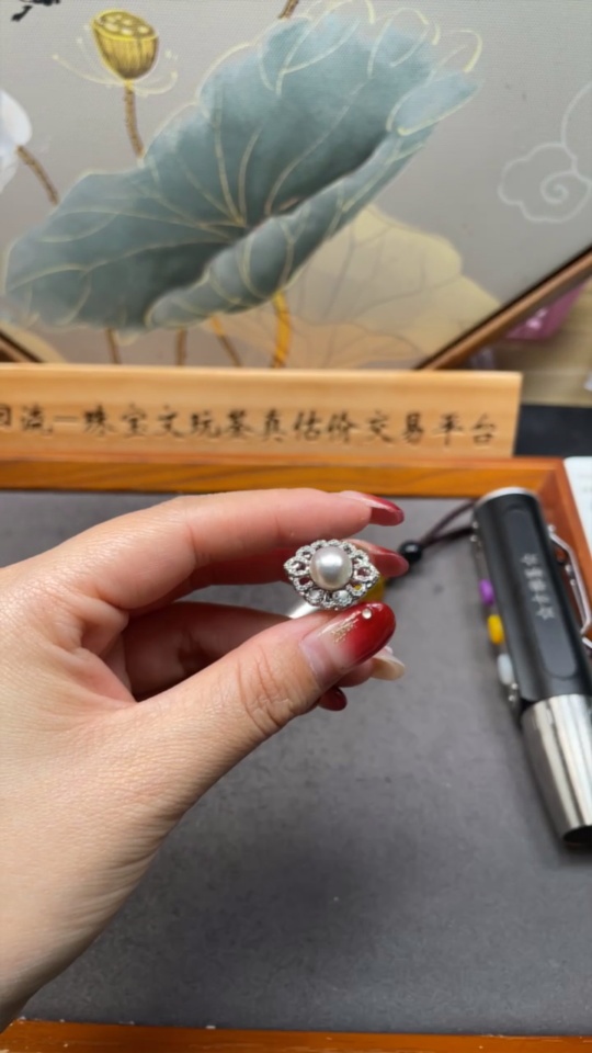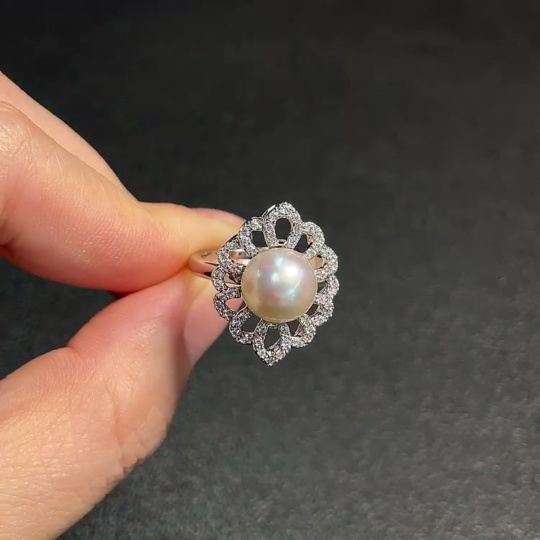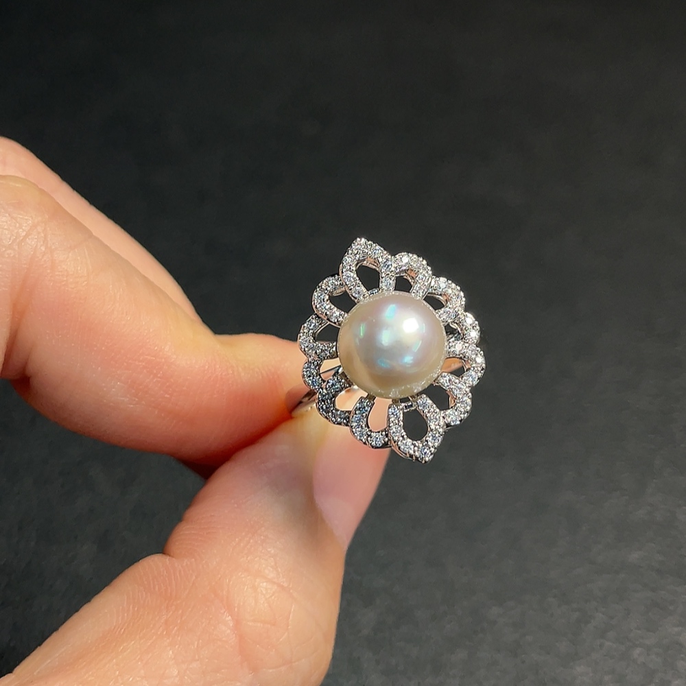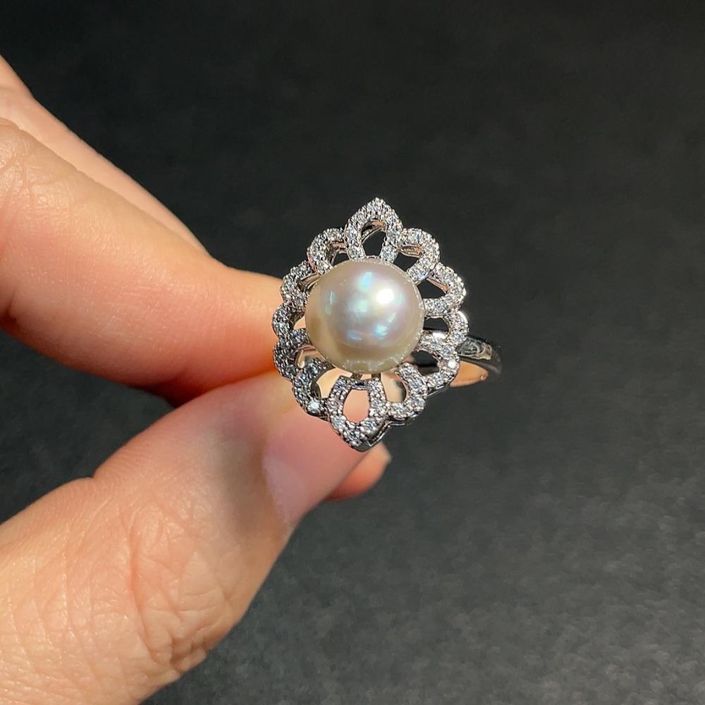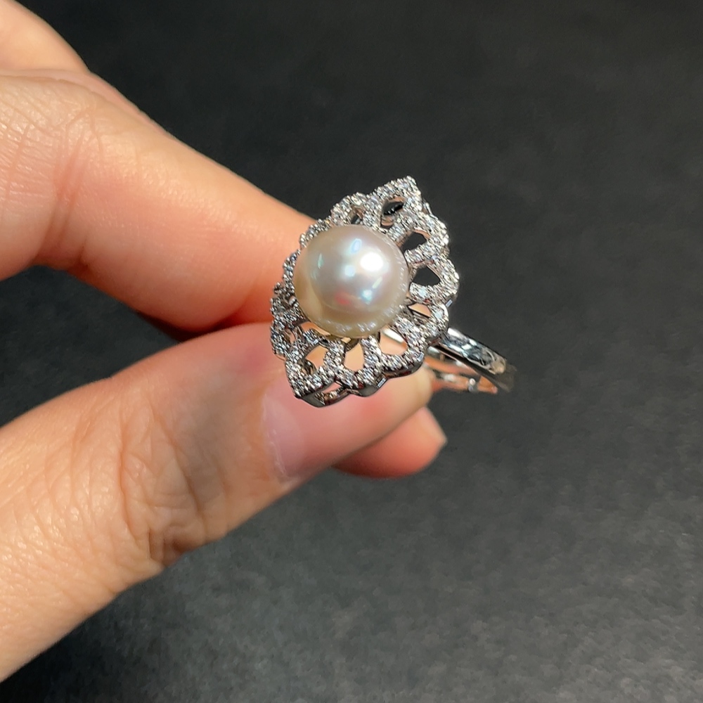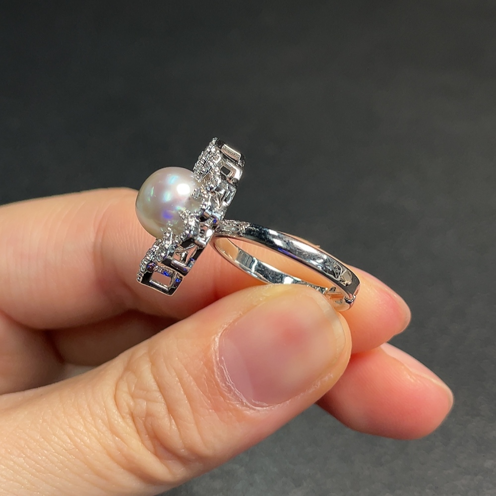 Seawater pearl ring, color origin undetermined, non-gold, adjustable, total weight approx. 4.49g, size approx. 8.8mm