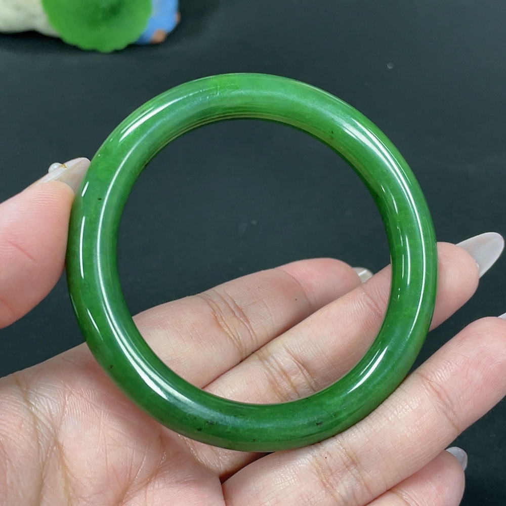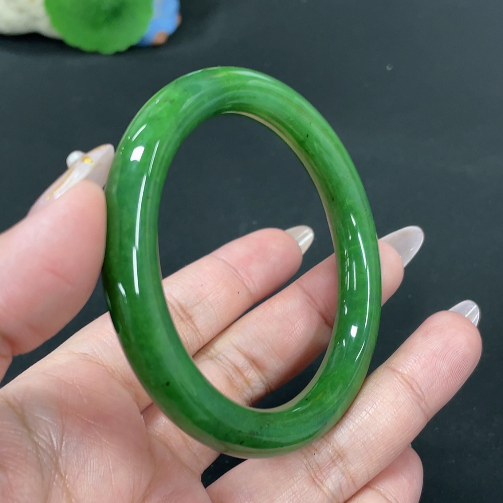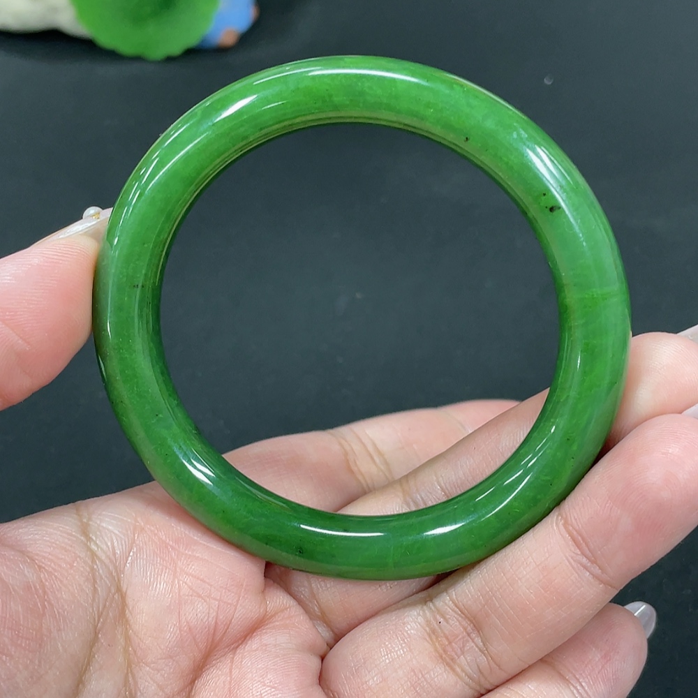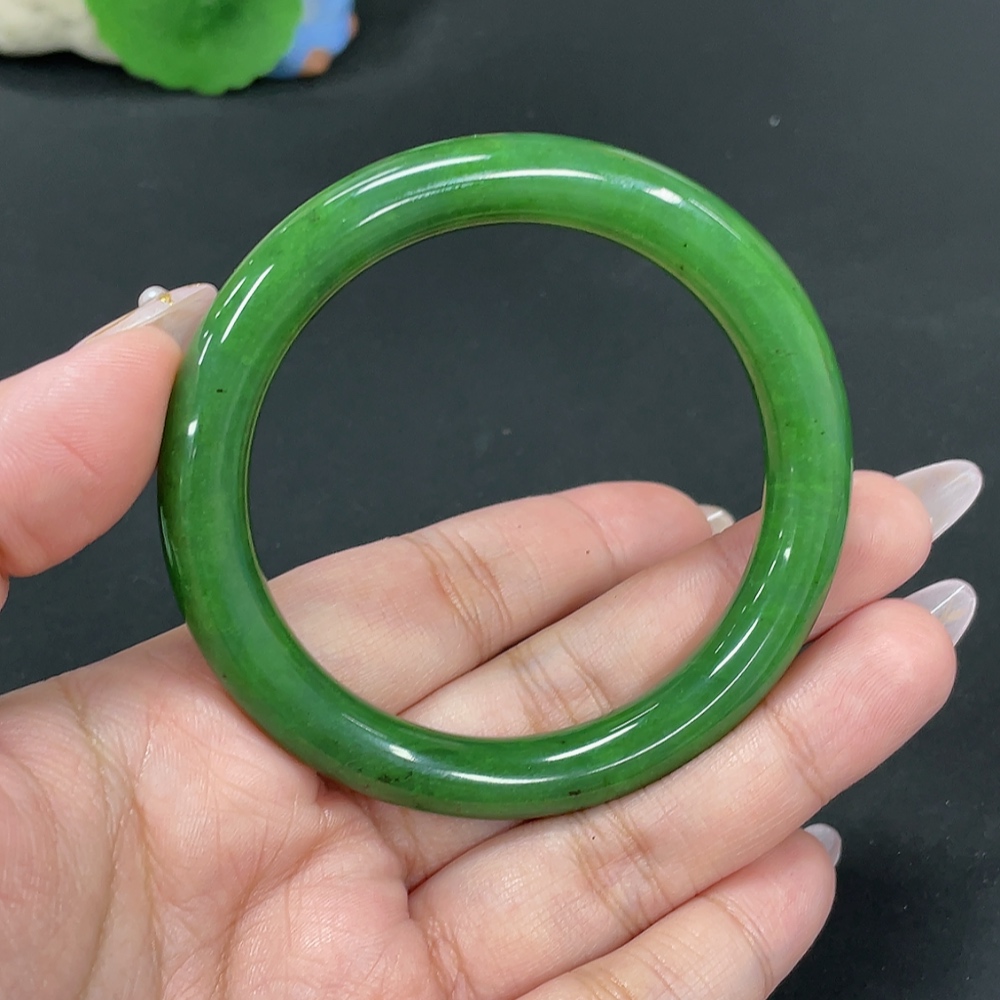 Hetian Jade Green Jade Round Bangle Size 55.7 Total Weight Approx. 41.8g