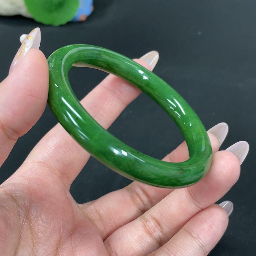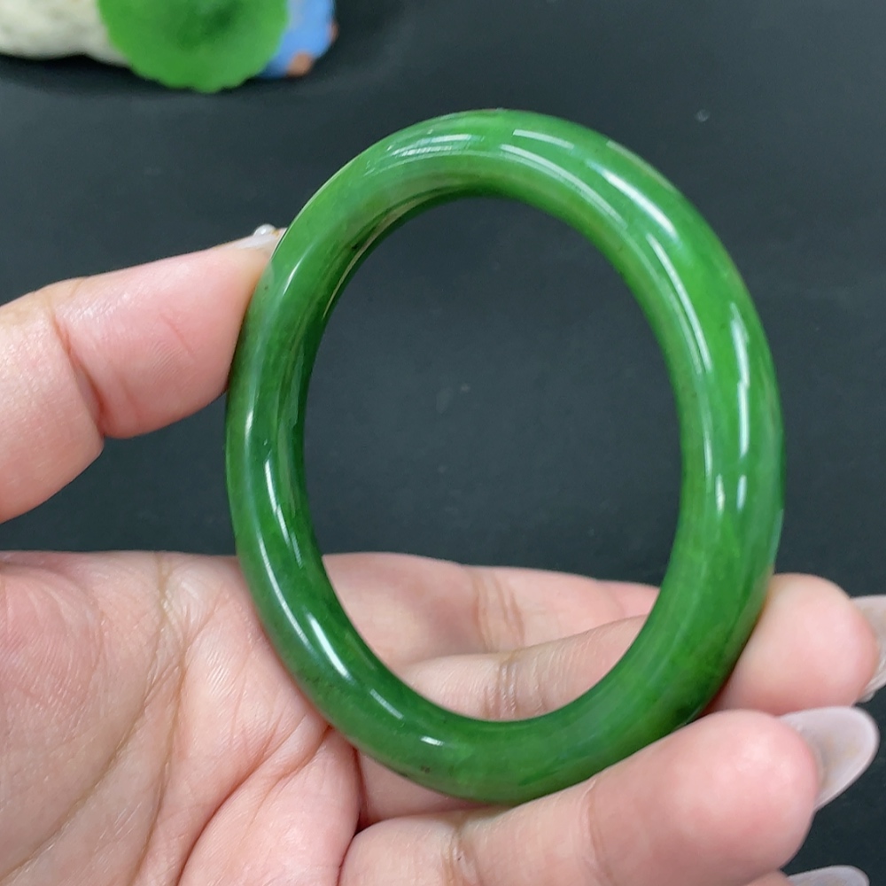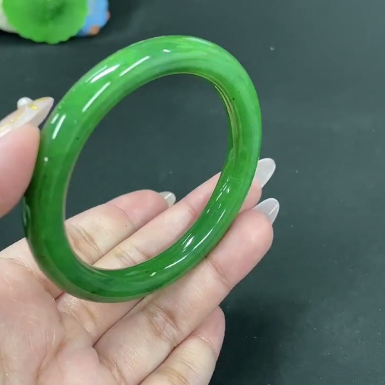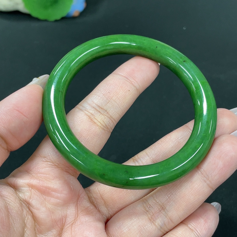 Hetian Jade Green Jade Round Bangle Size 55.7 Total Weight Approx. 41.8g