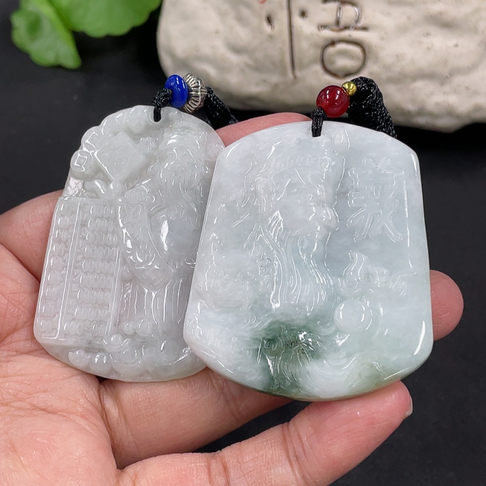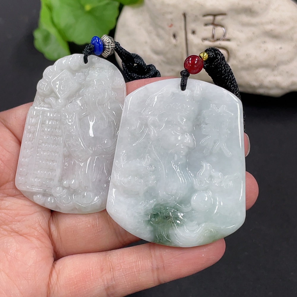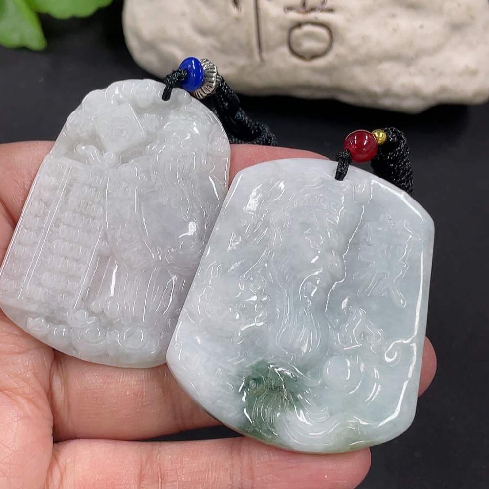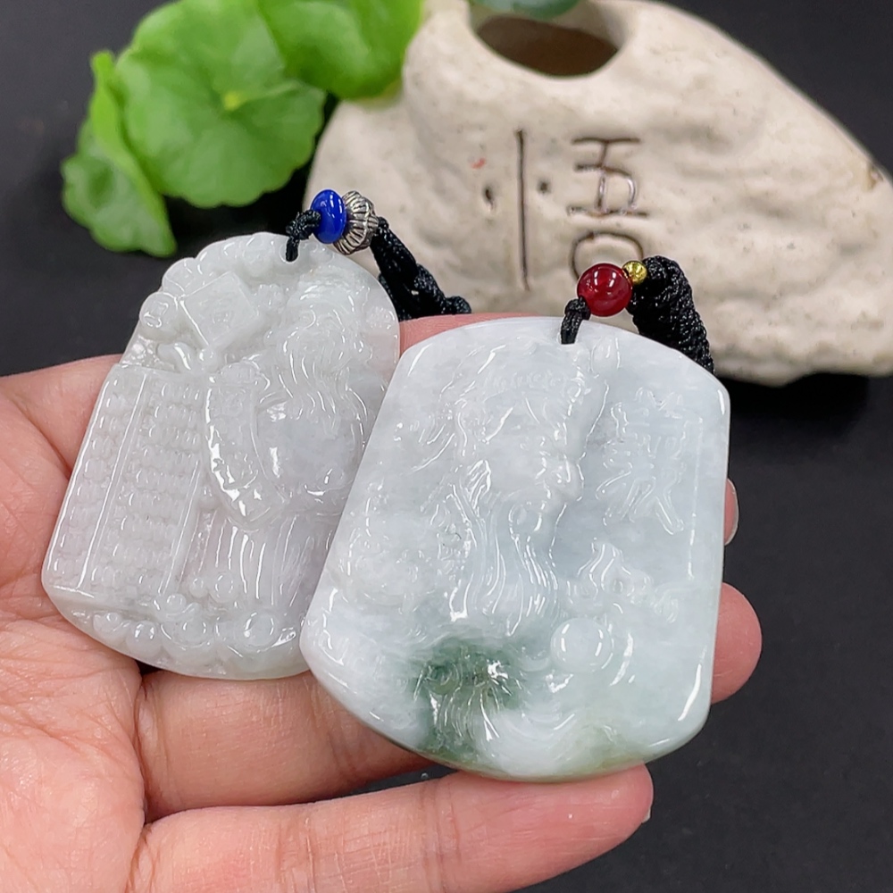Jadeite Pendant God of Wealth Guan Gong with Non-A Beads Total Weight Approx. 48.49g