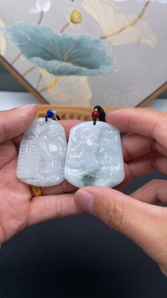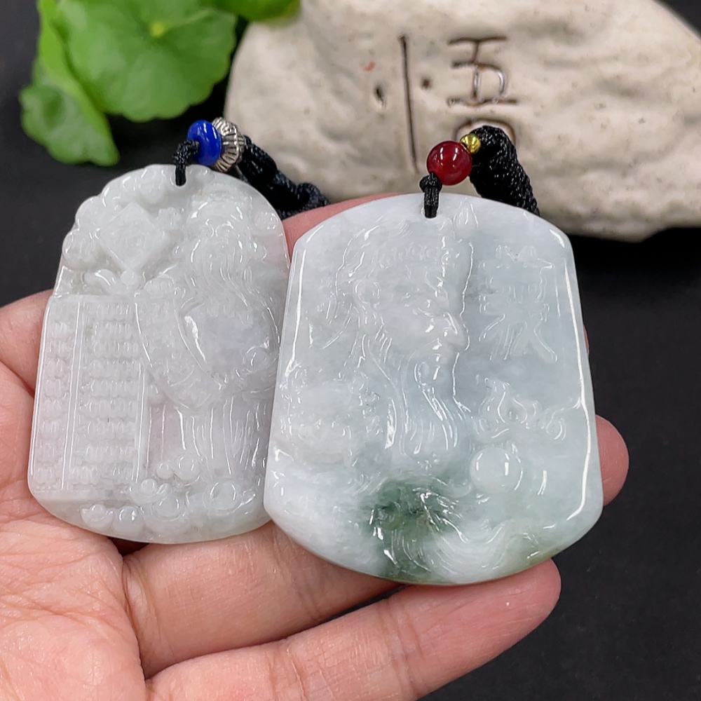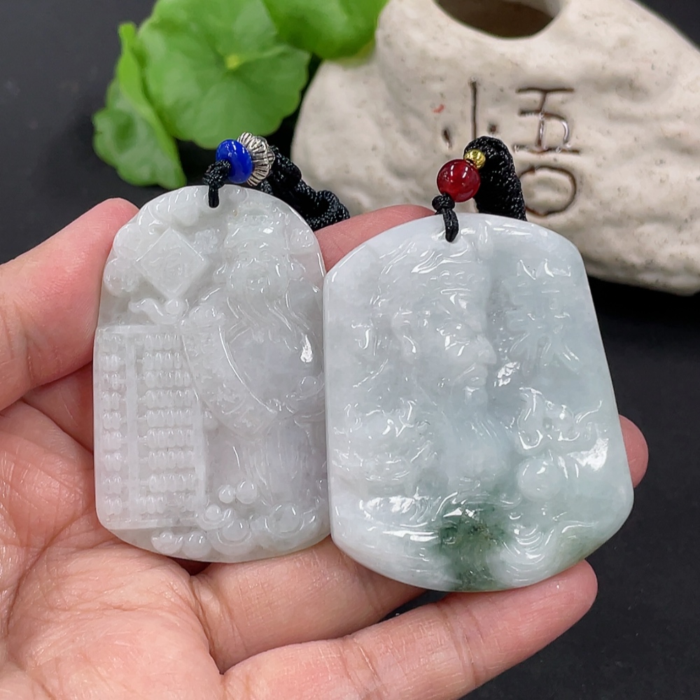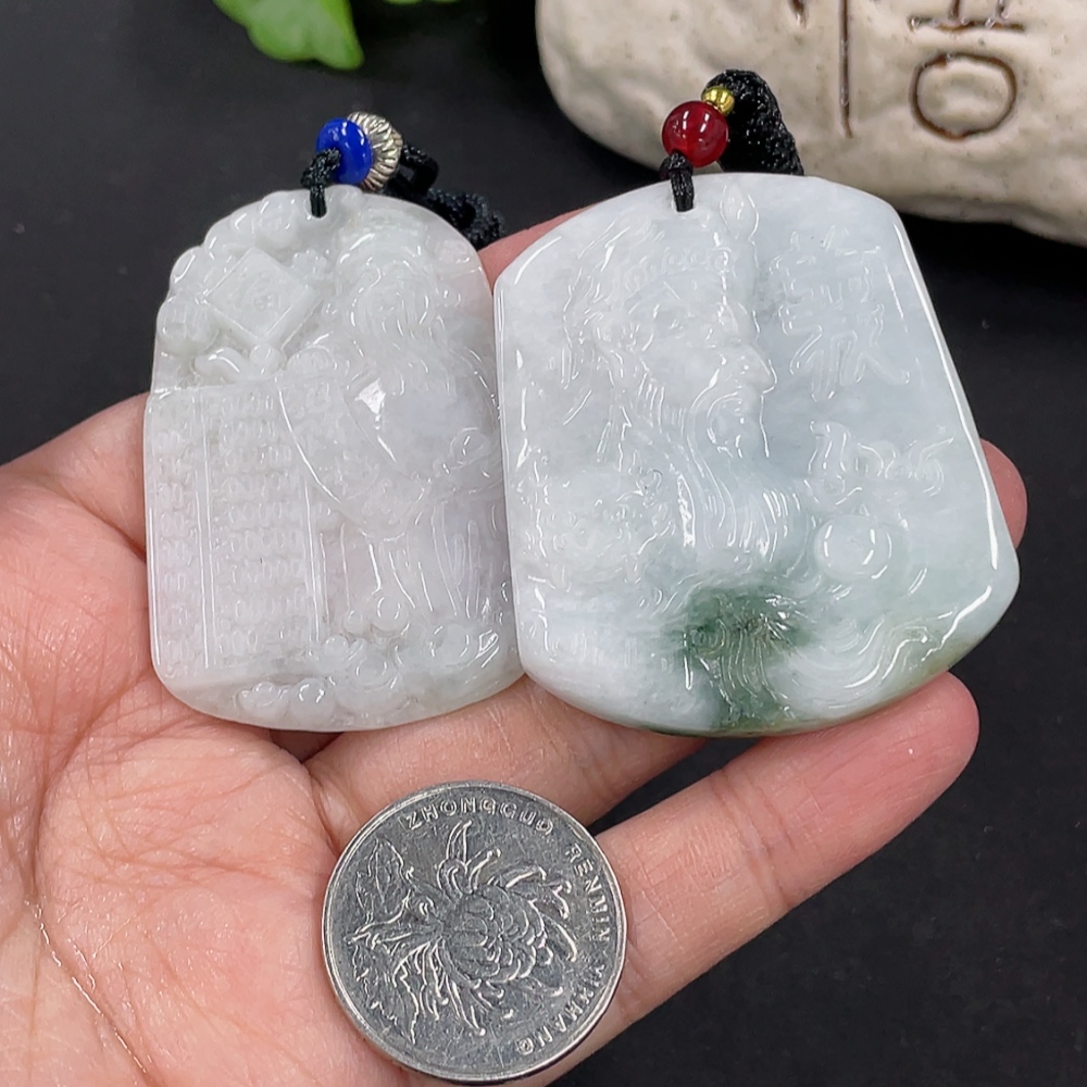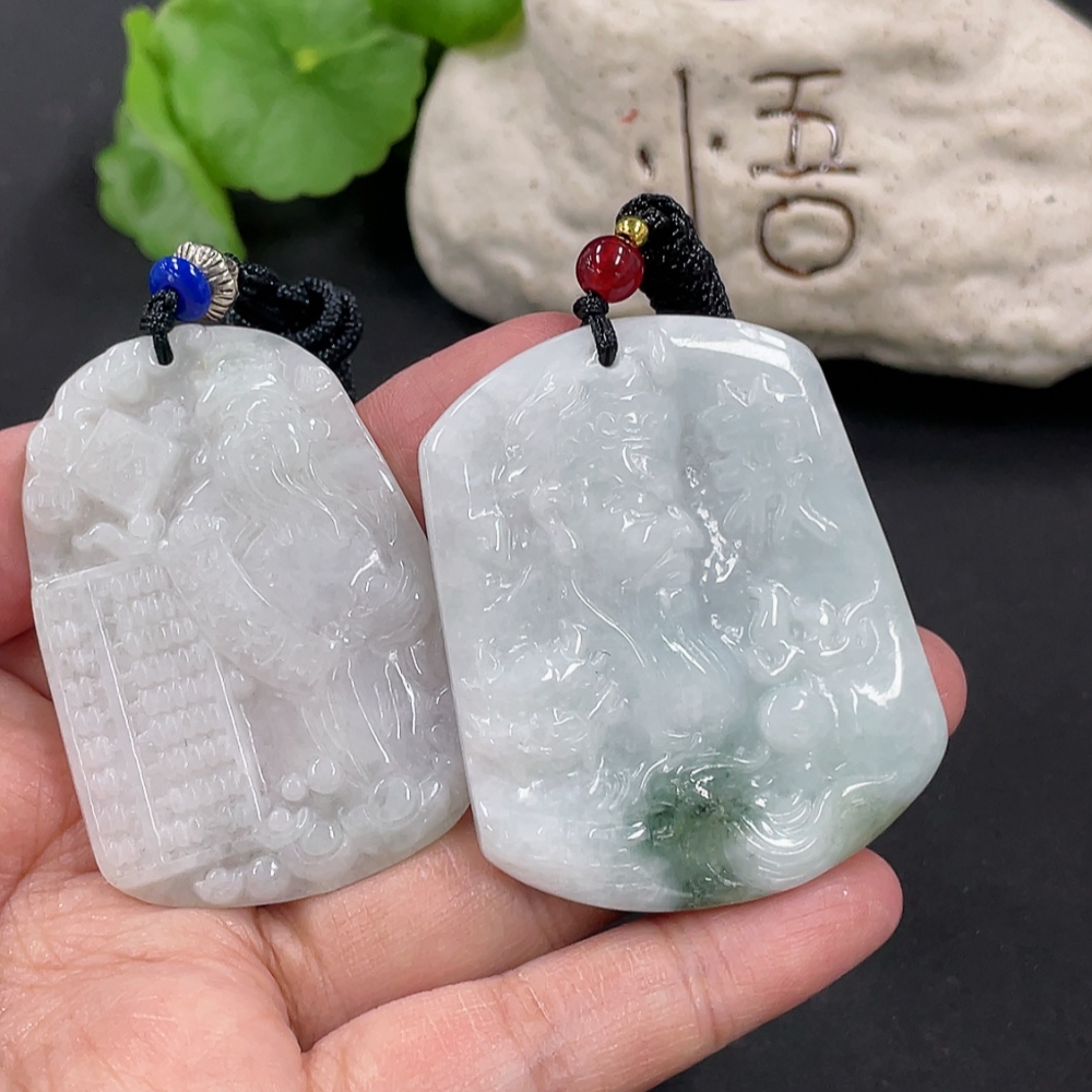 Jadeite Pendant God of Wealth Guan Gong with Non-A Beads Total Weight Approx. 48.49g