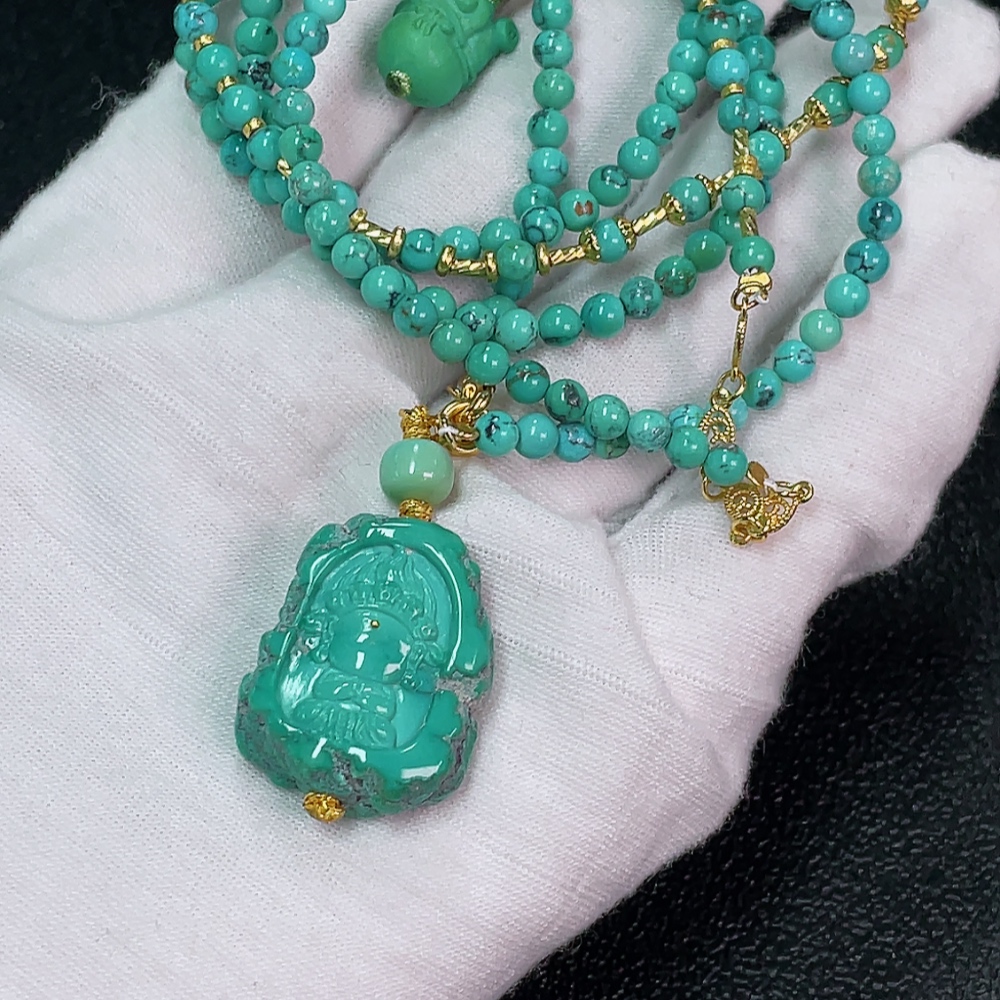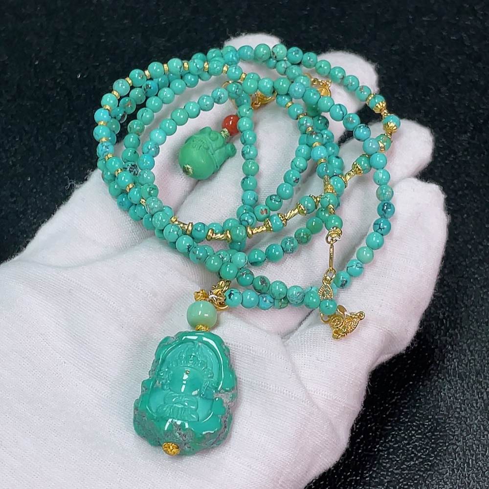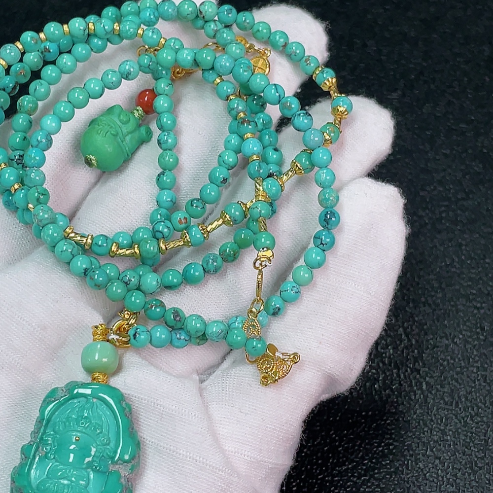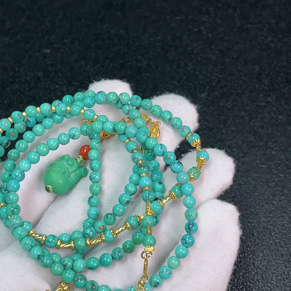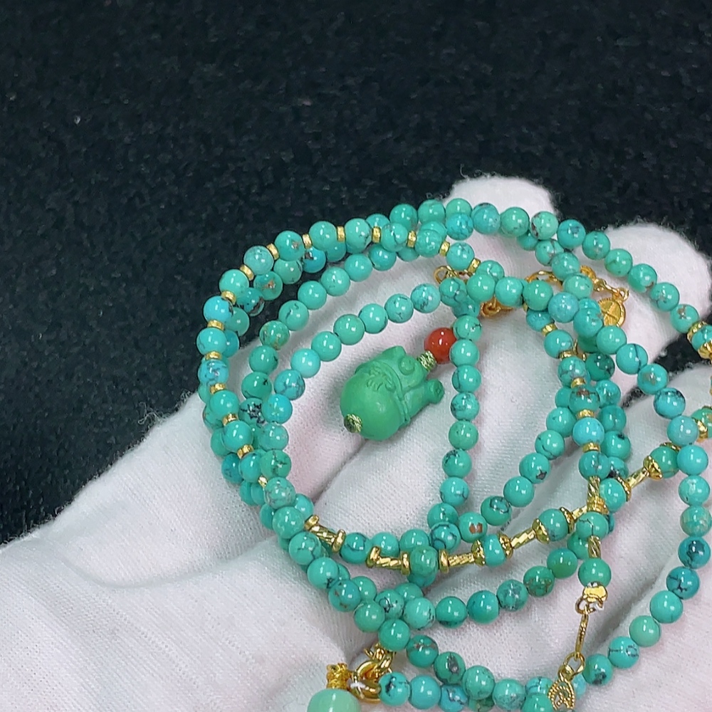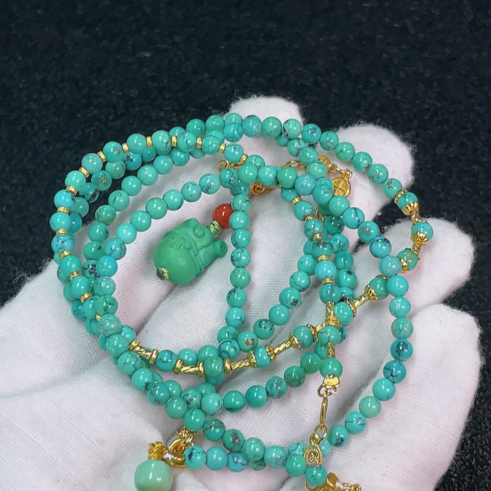 Turquoise Bead Necklace Non-Gold, Stones May Be Non-Natural, Total Weight Approx. 25.07g, Size About 3.6mm