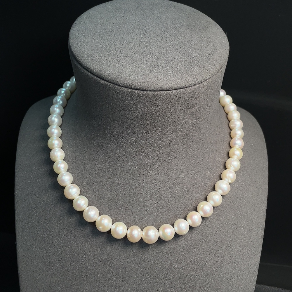 Trezaar - Pearl bead strand, marked red parts non-gold, other surfaces tested as 33% Au, clasp interior untestable, string untestable, total weight approx. 45.89g, size 8.5-9.2mm