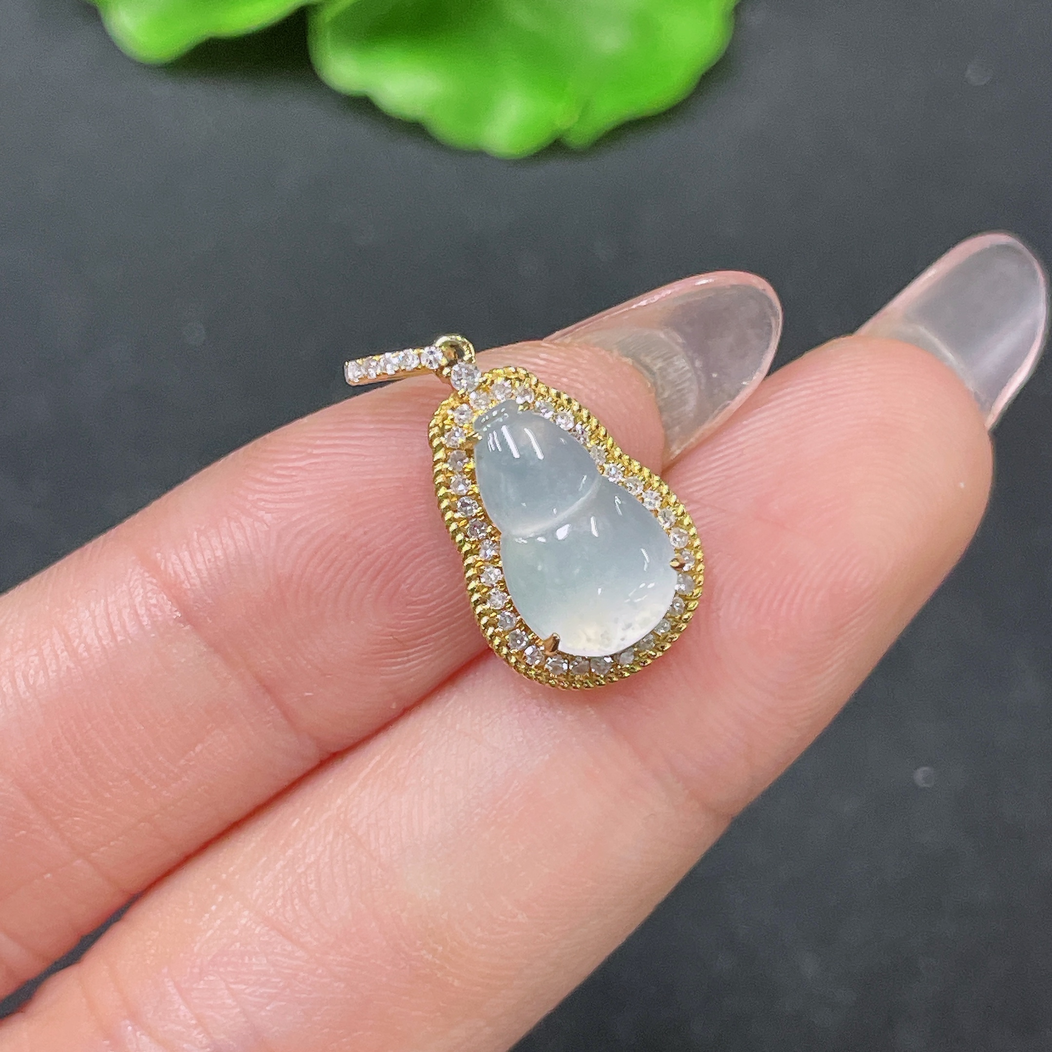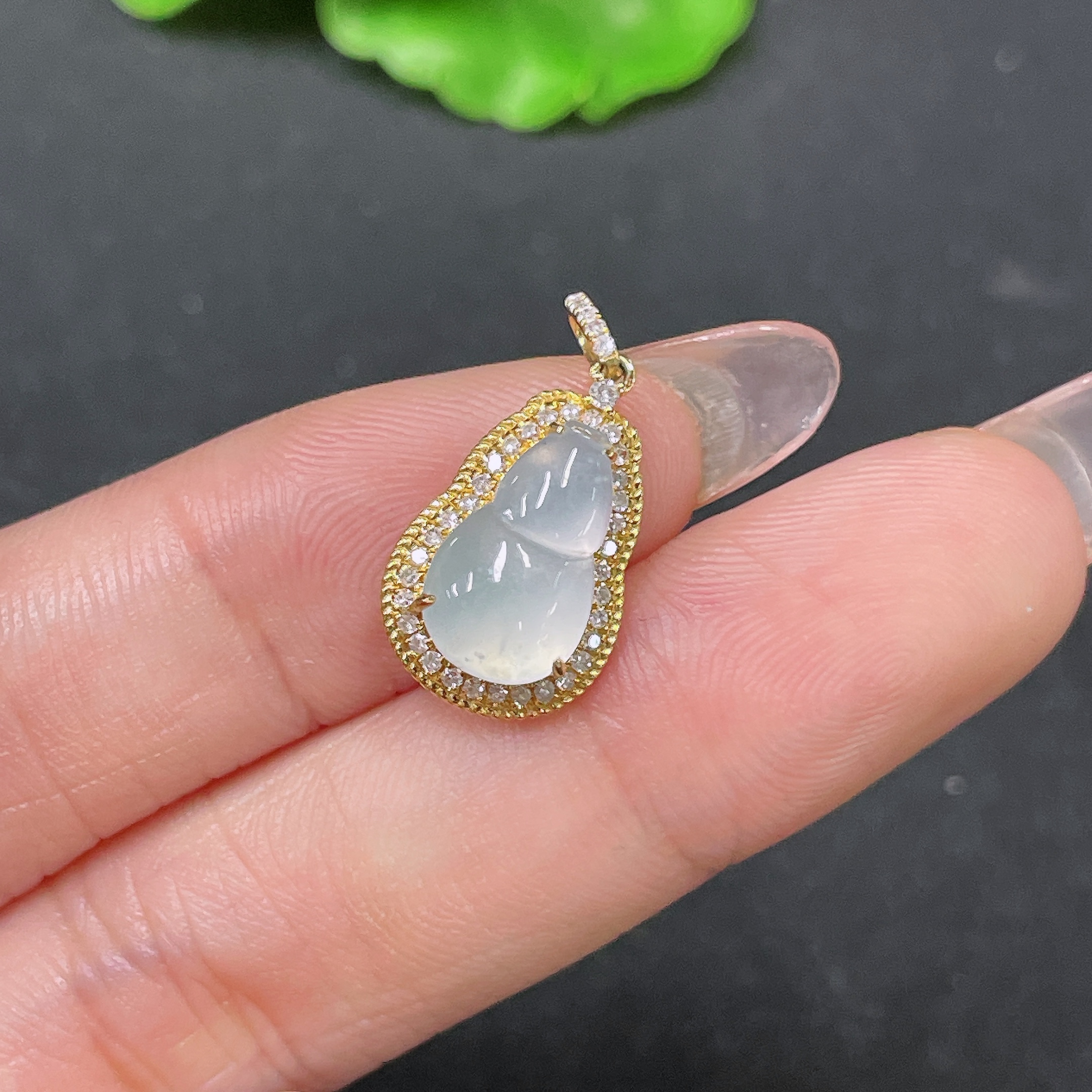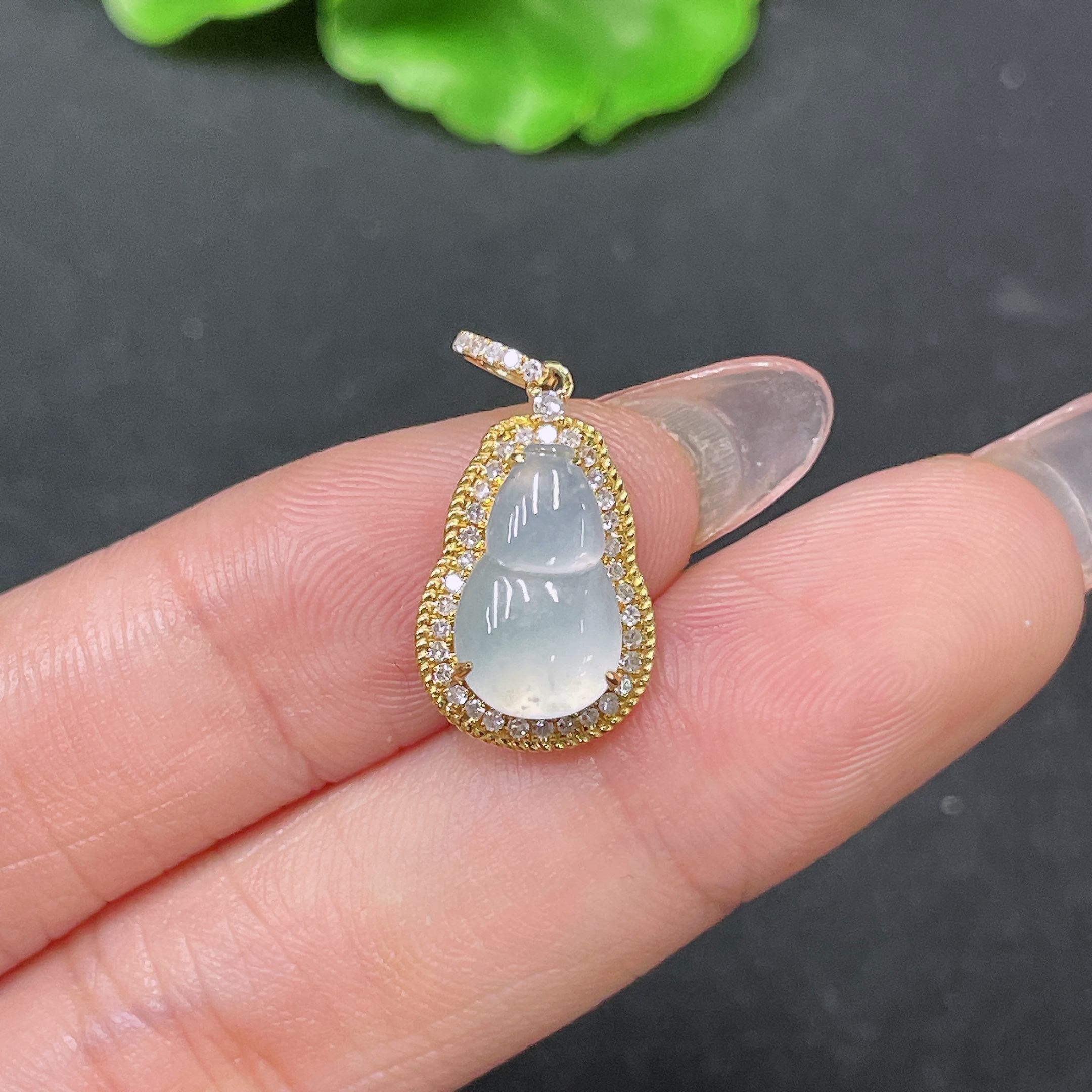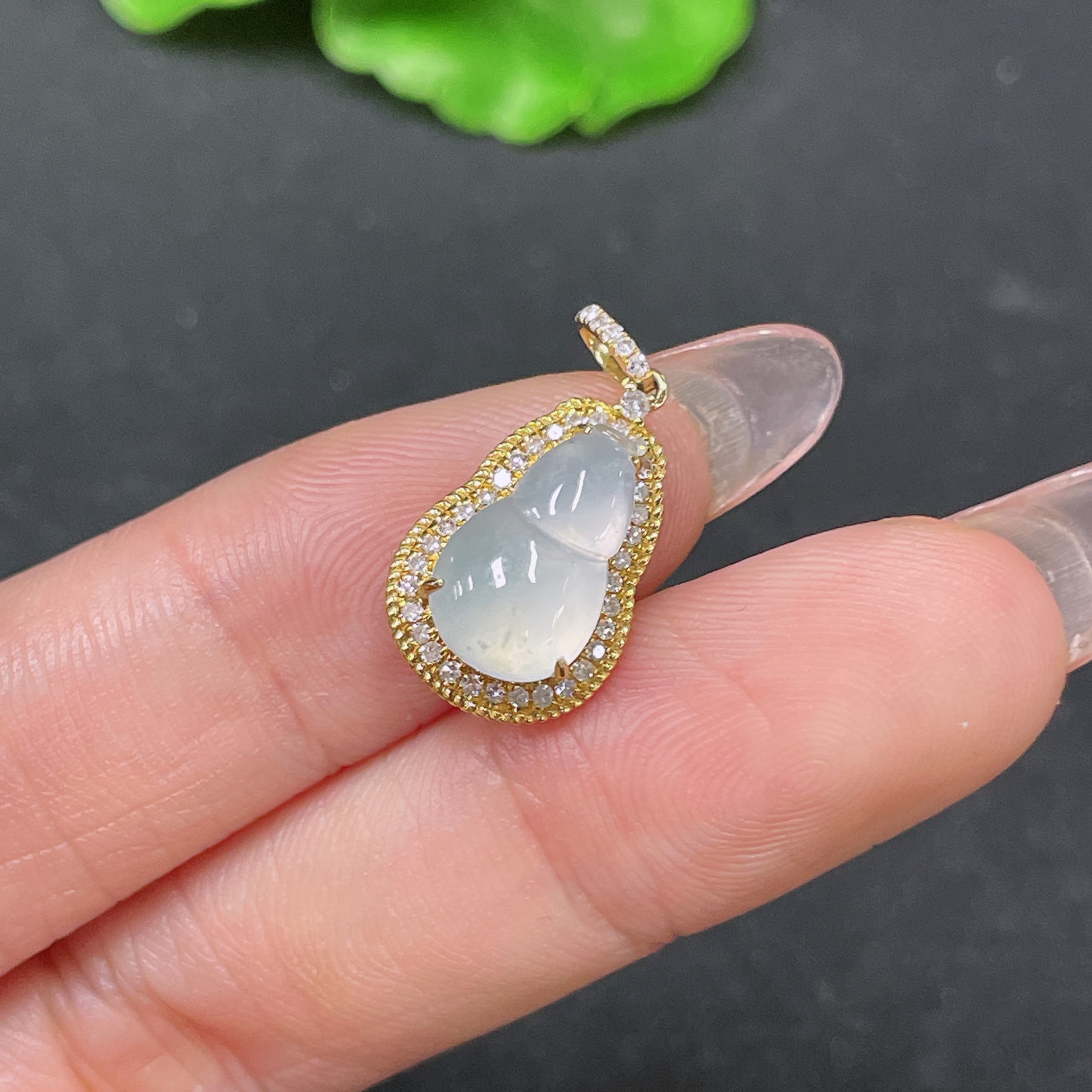 Jadeite inlaid with 18k gold and diamonds, total weight approximately 1.62g