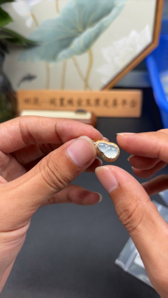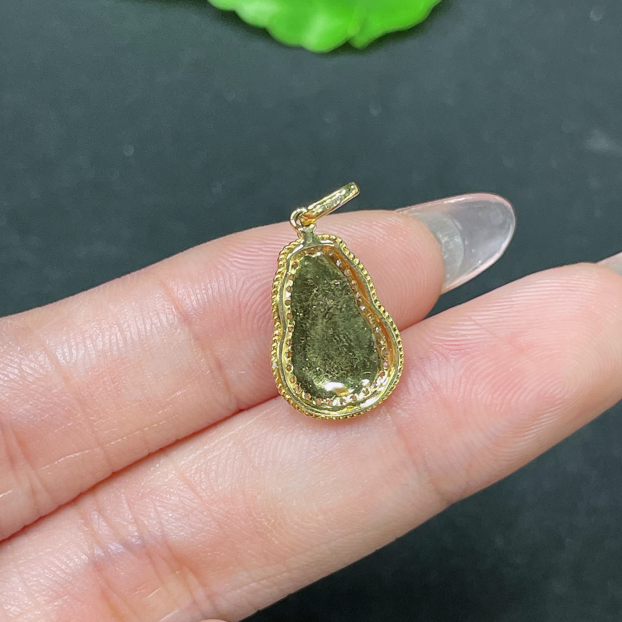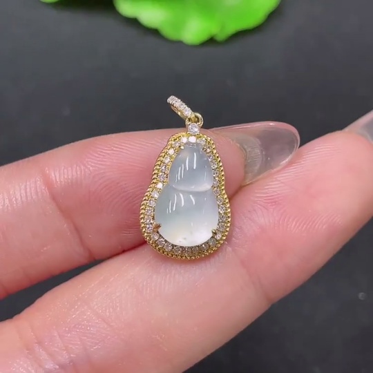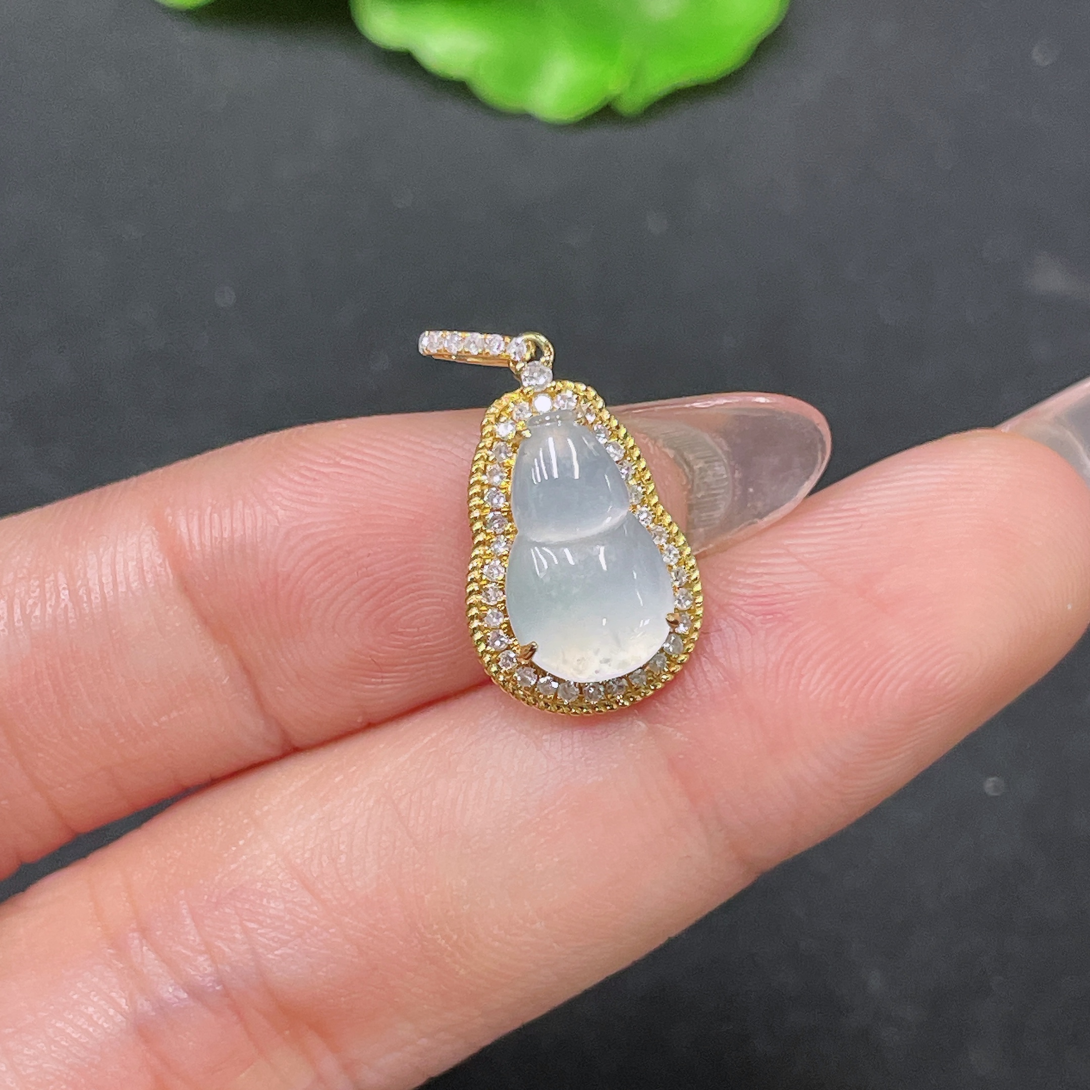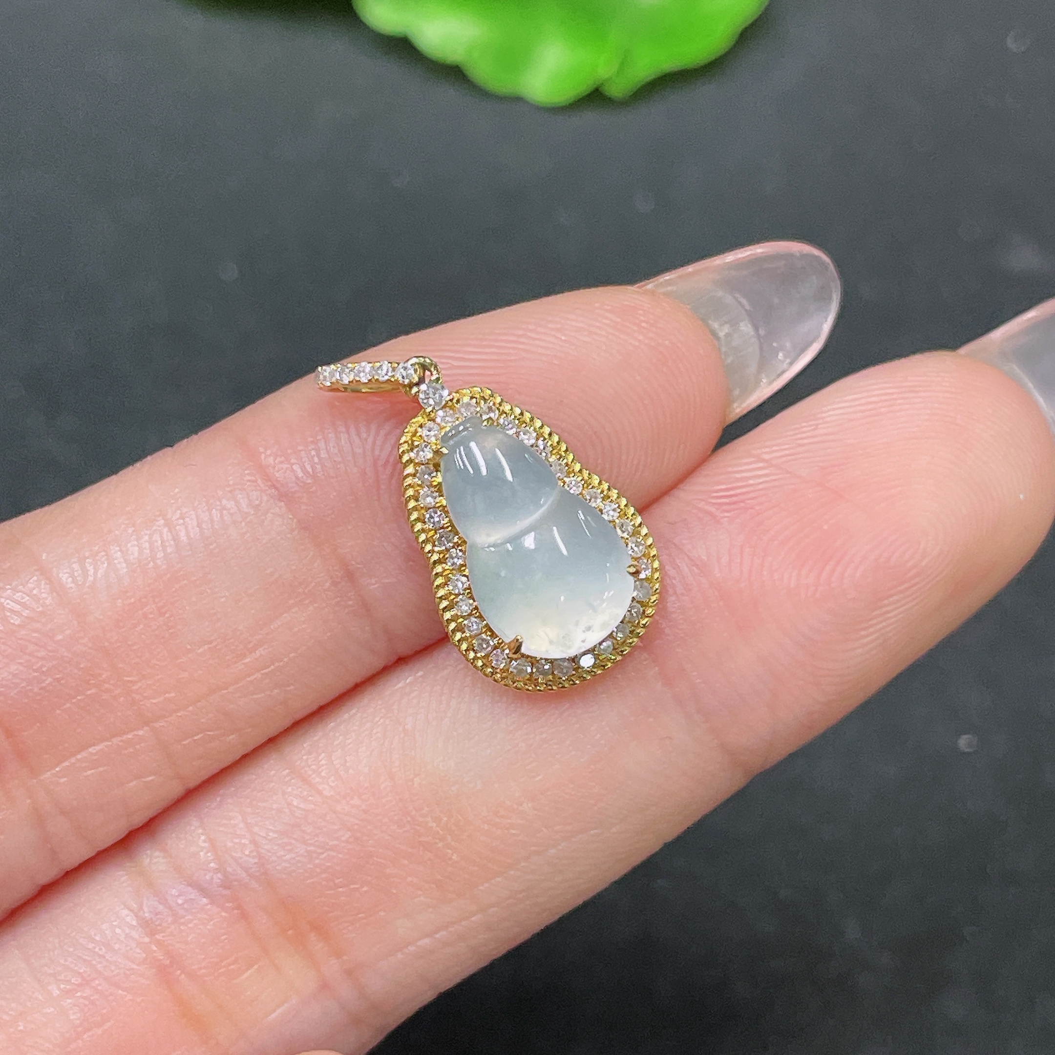 Jadeite inlaid with 18k gold and diamonds, total weight approximately 1.62g