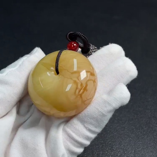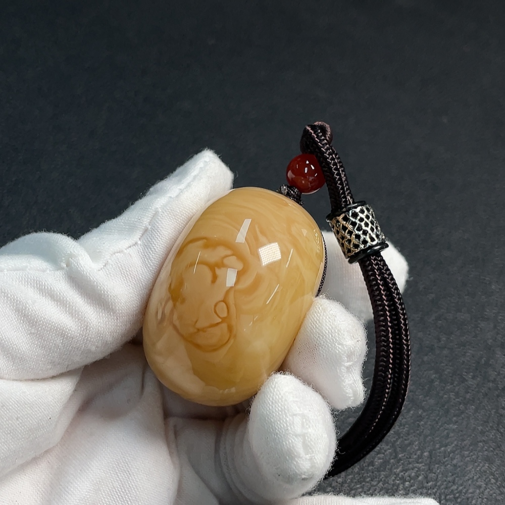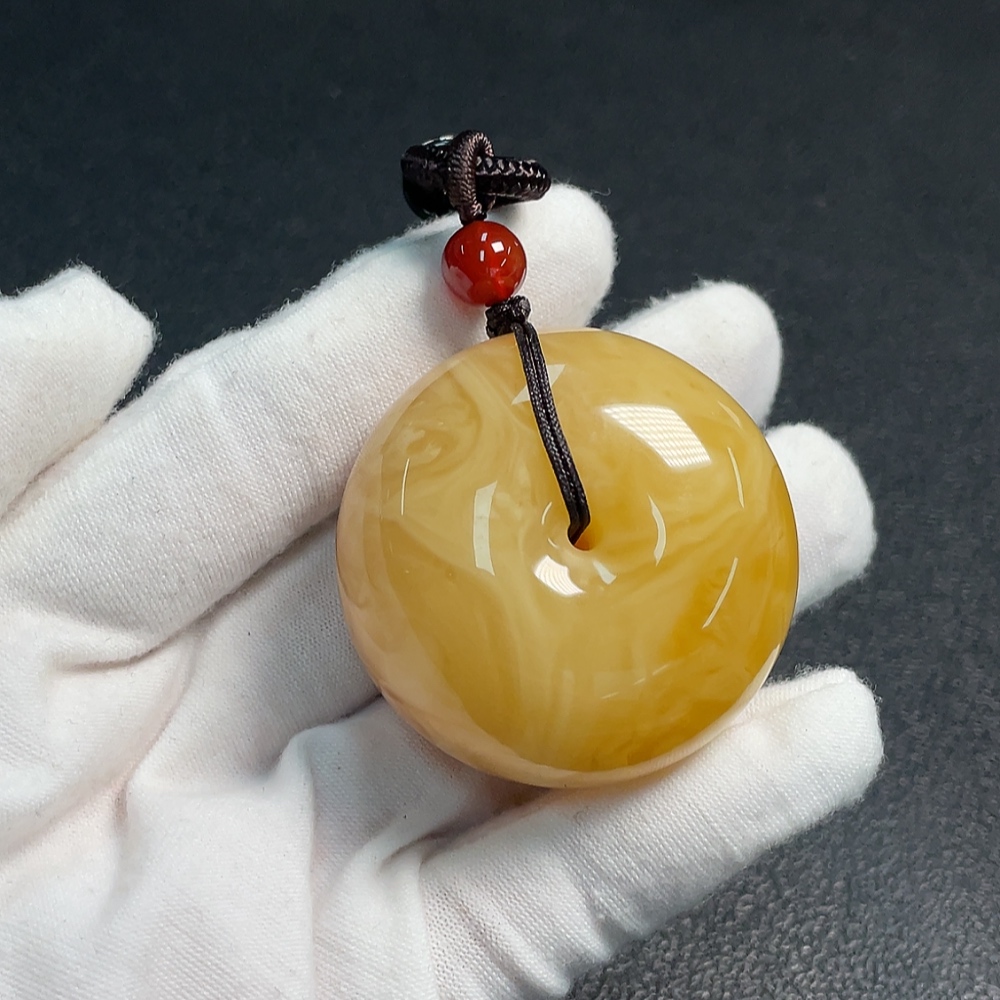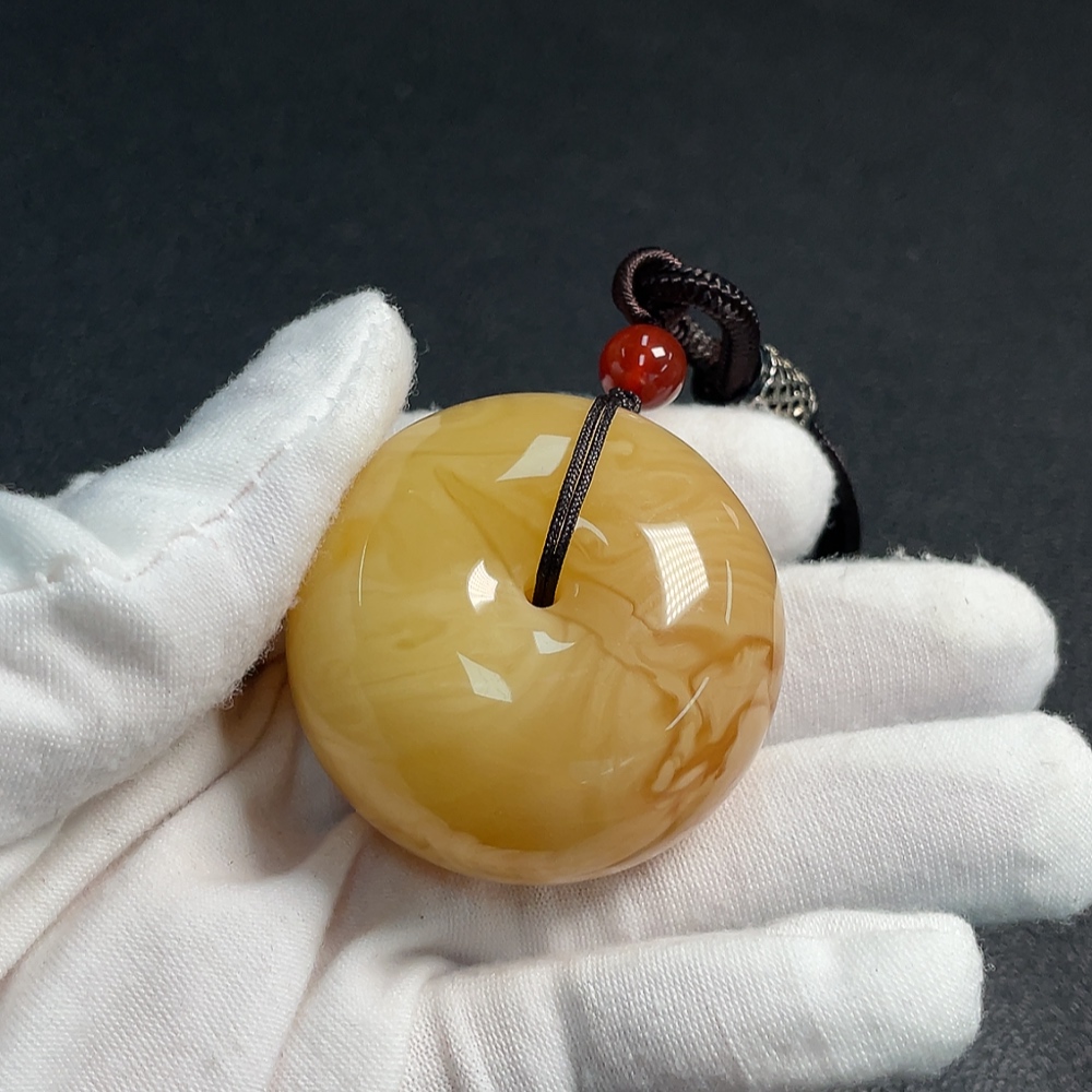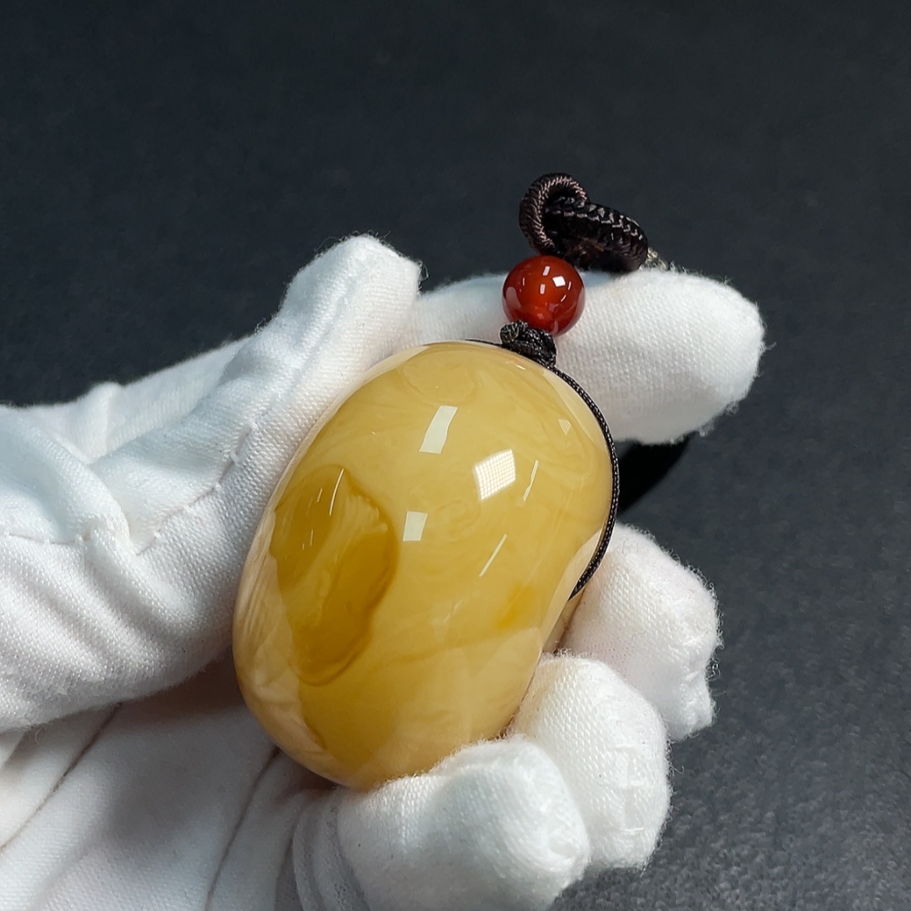 Amber Beeswax Pendant with Non-Natural Accent Stones, Total Weight Approx. 38.59g, Including Cord, Non-Gold