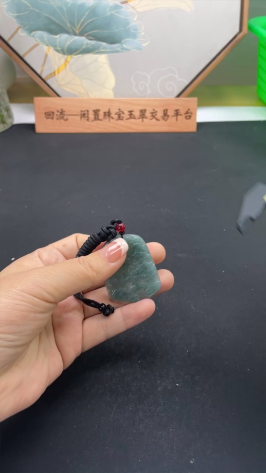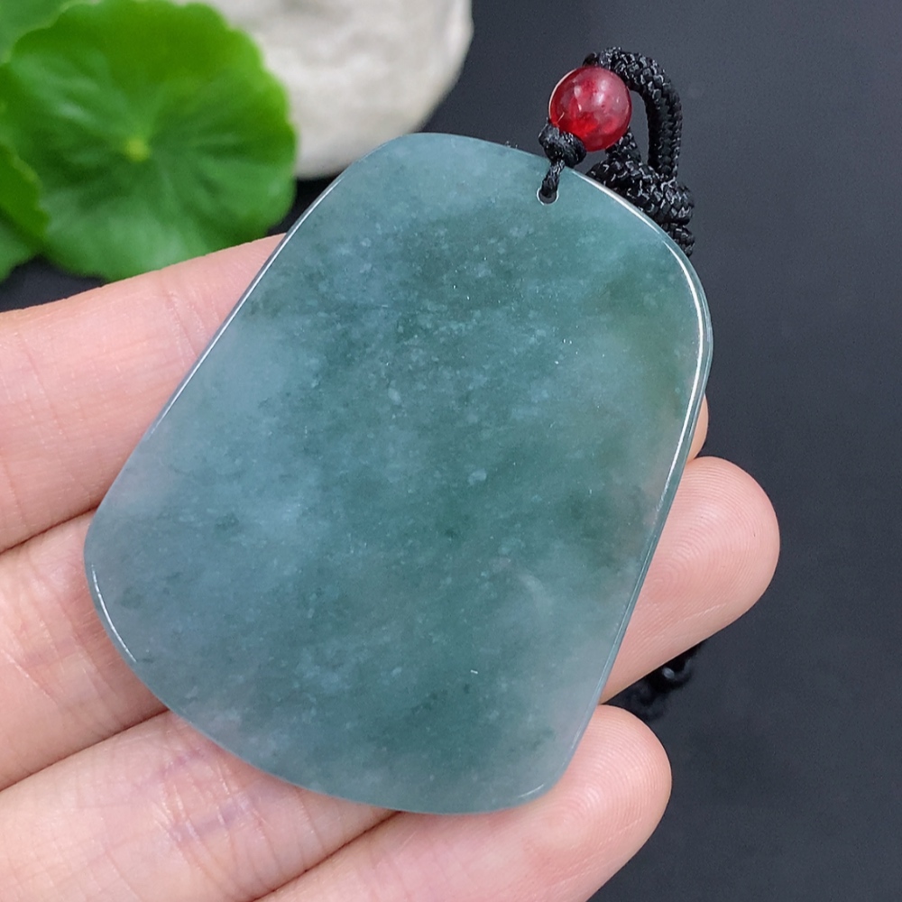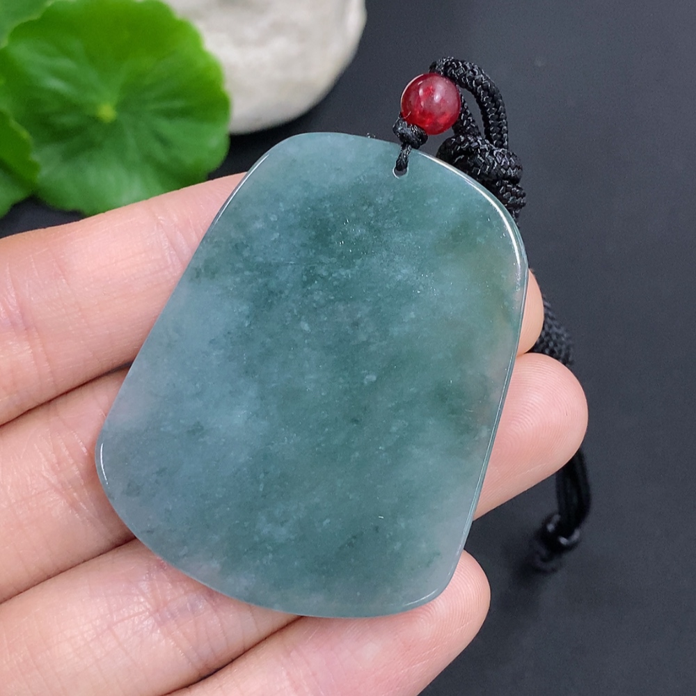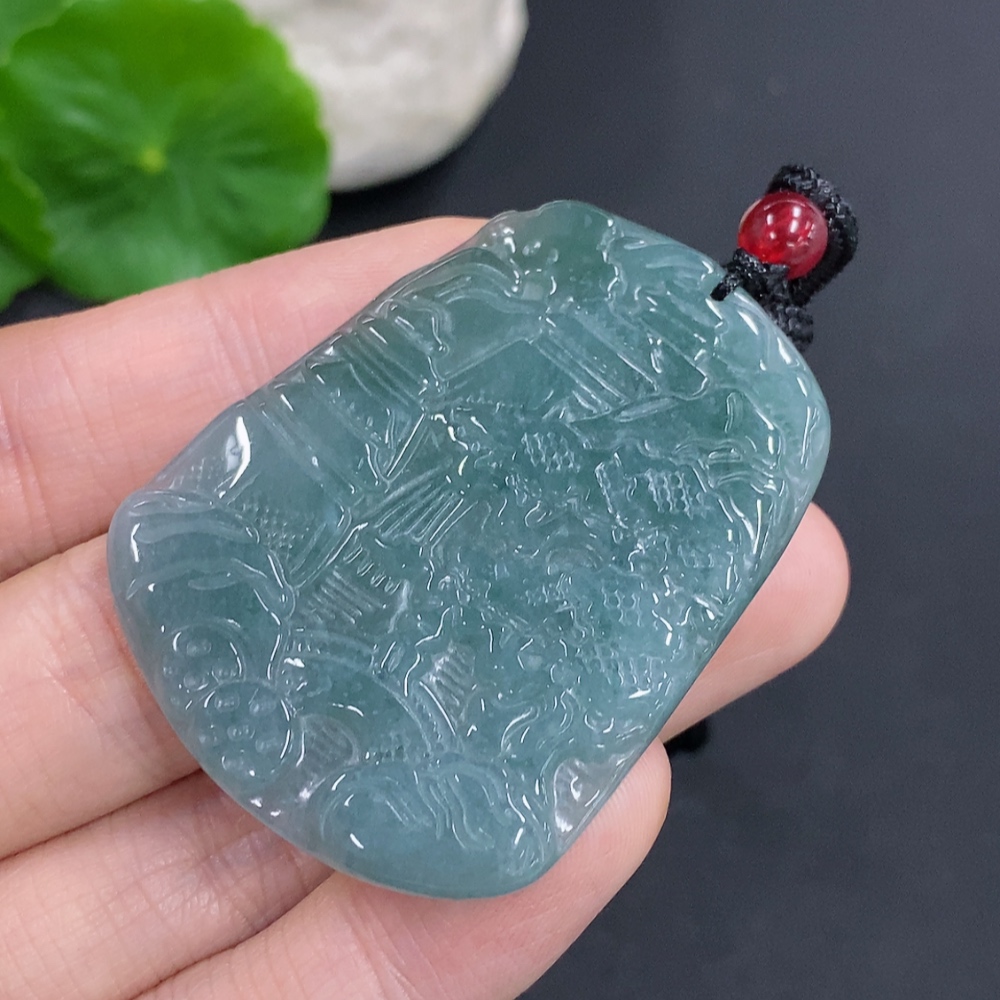 Jadeite landscape pendant with cord, total weight approximately 18.3g (matching beads non-A)