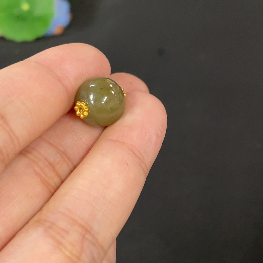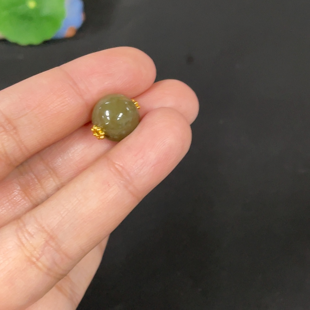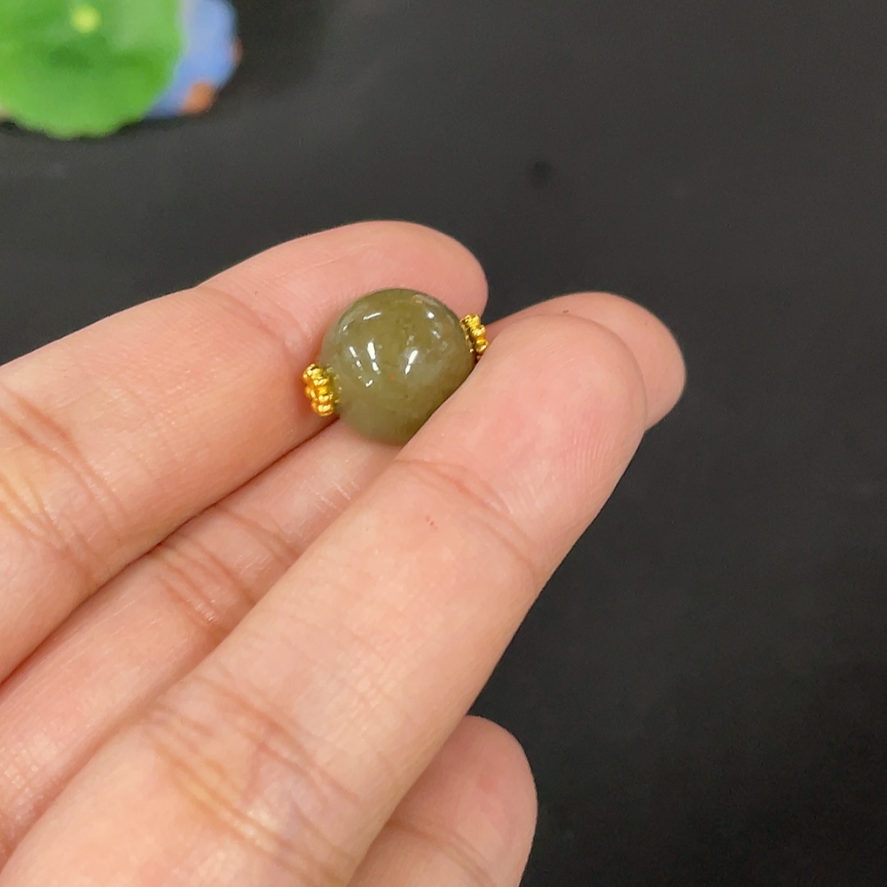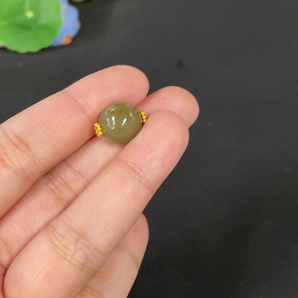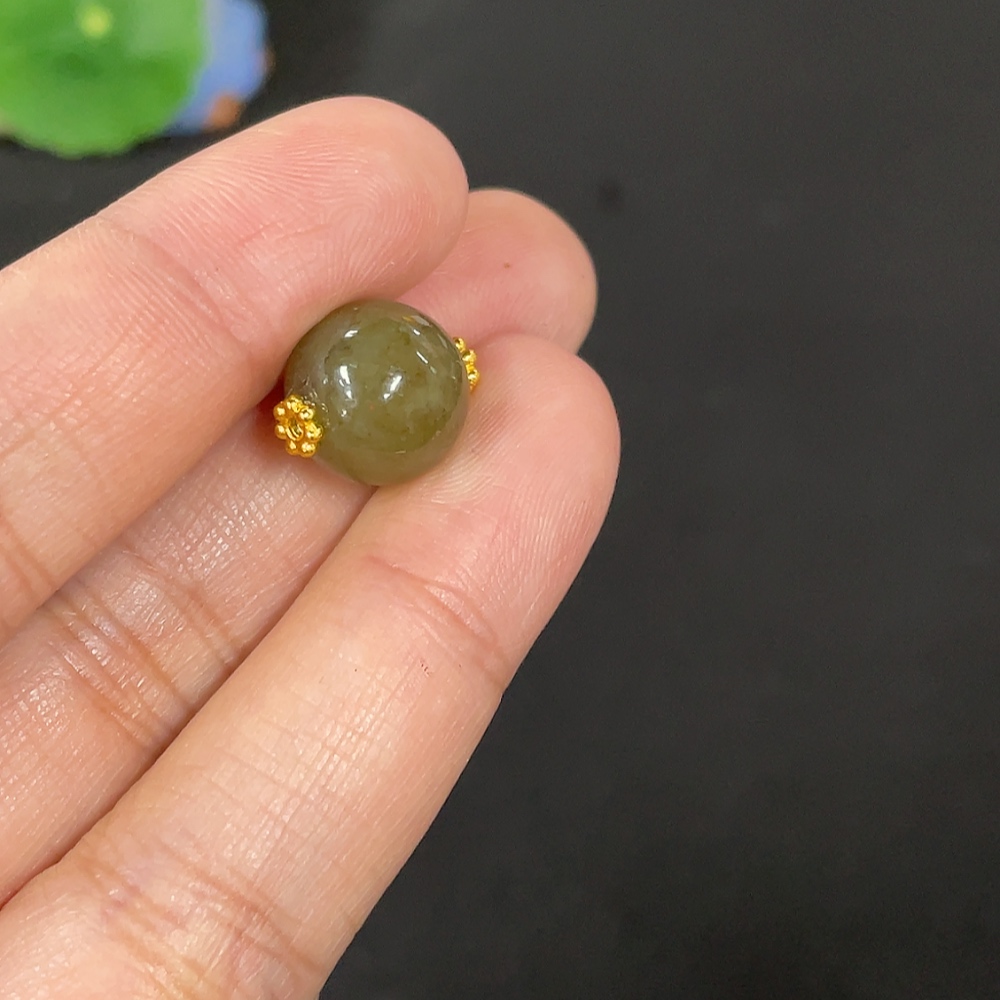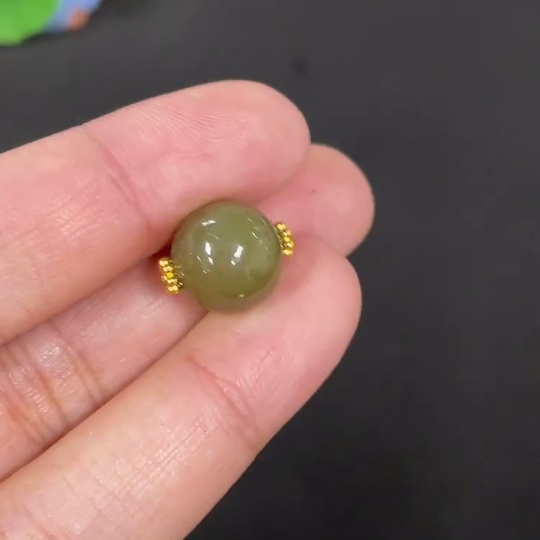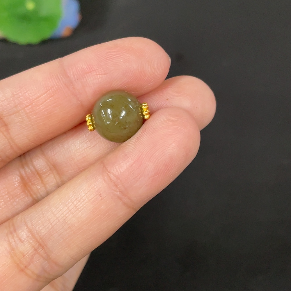 Hetian Jade Inlaid Single Bead Approx. 11.8mm Total Weight Approx. 2.7g Non-Gold