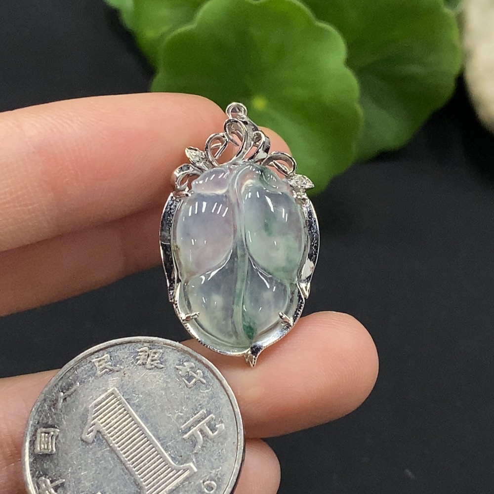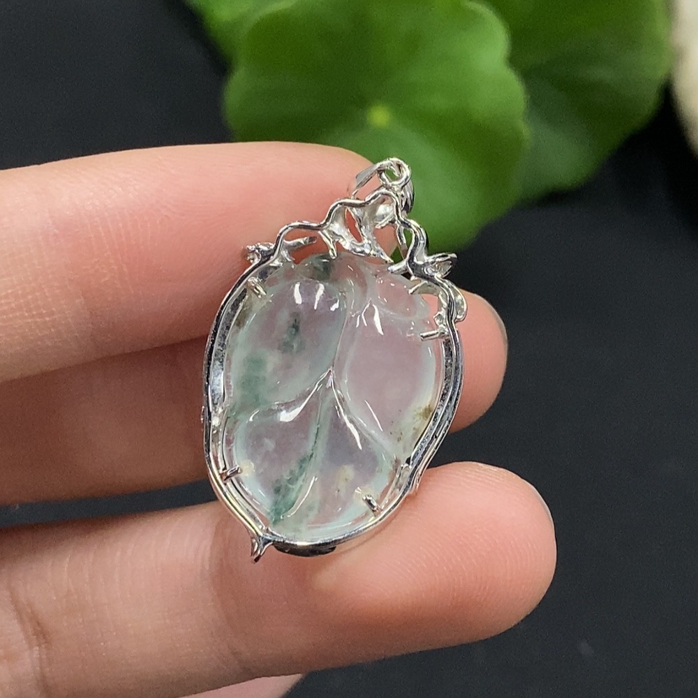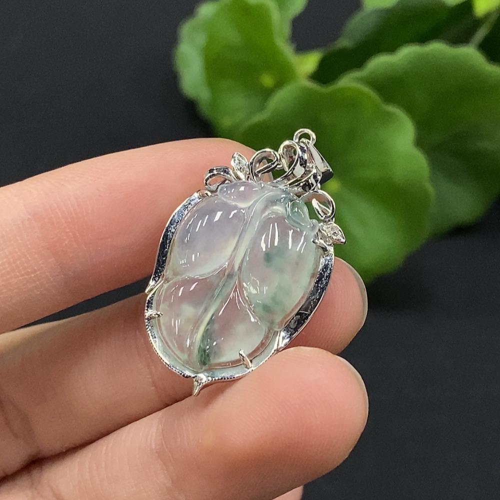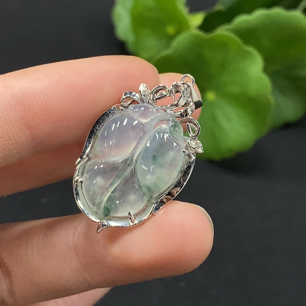 Jadeite Leaf Inlaid Pendant 18K Gold Total Weight Approx. 3.34g