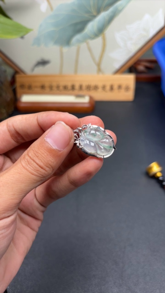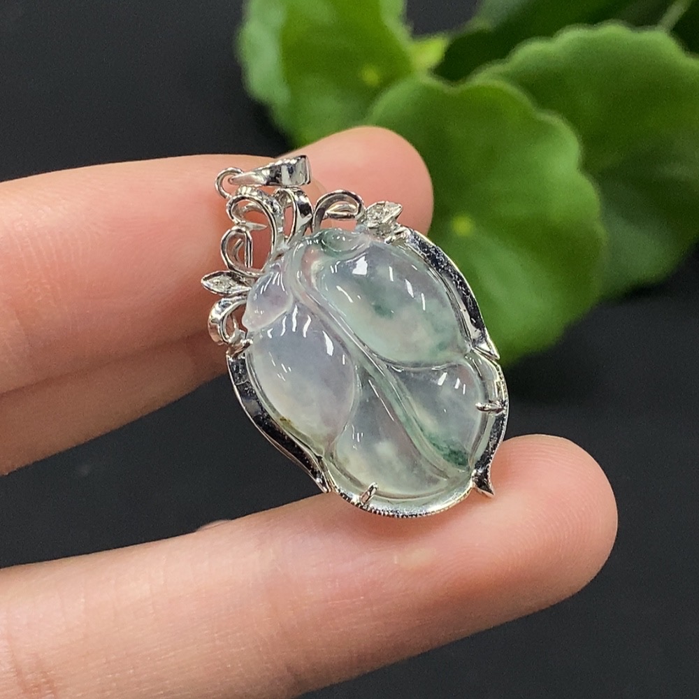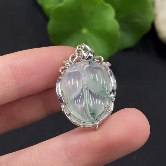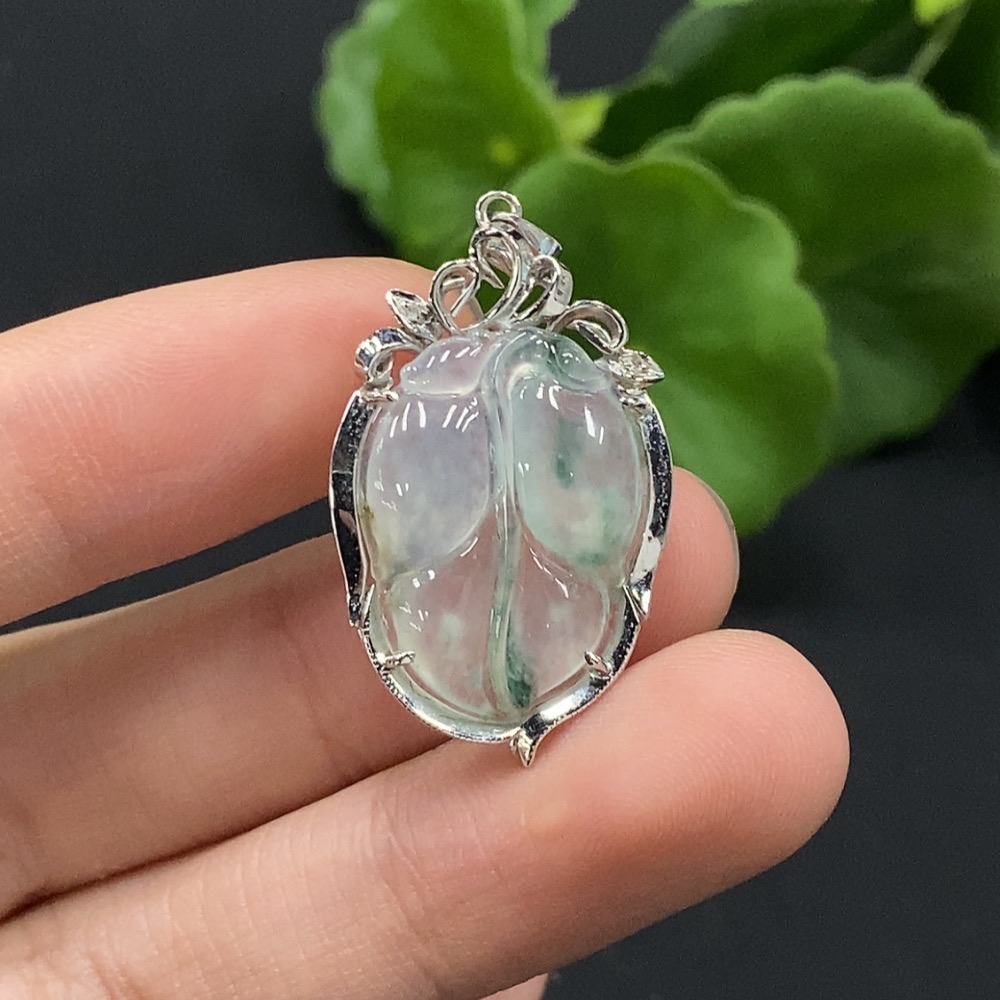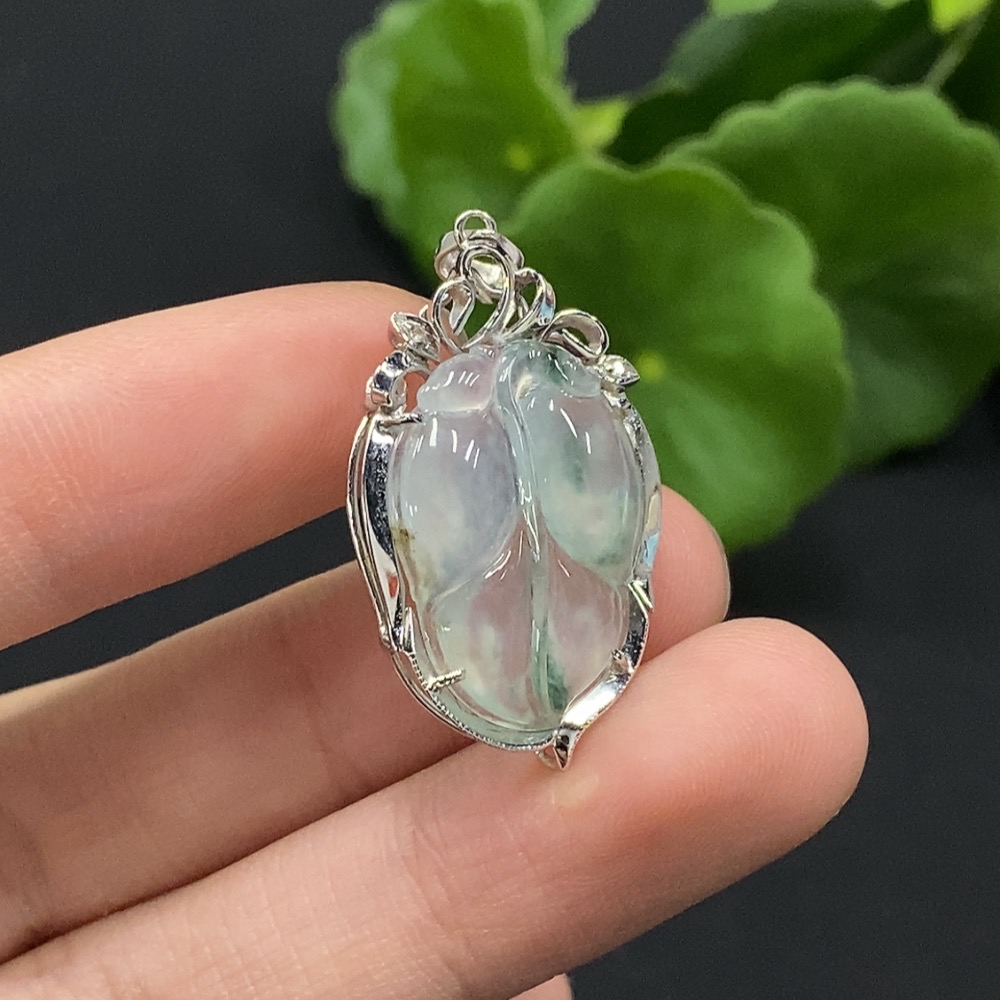 Jadeite Leaf Inlaid Pendant 18K Gold Total Weight Approx. 3.34g