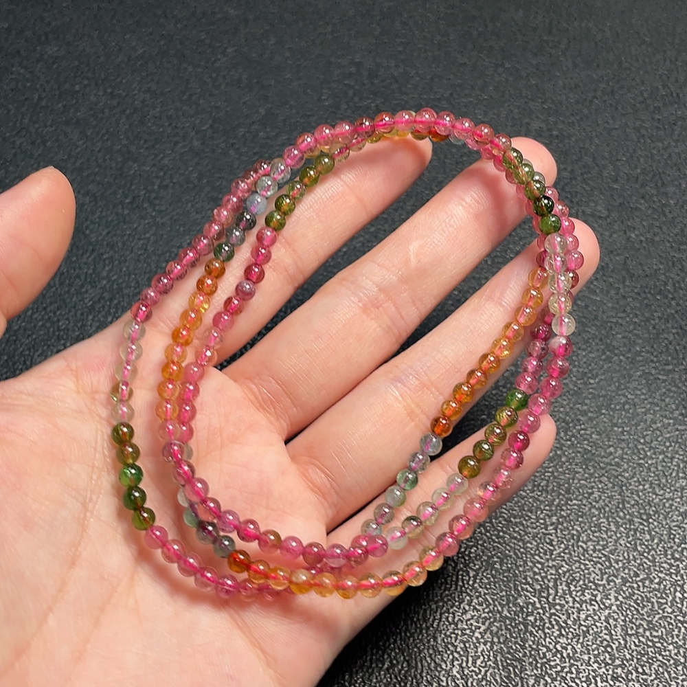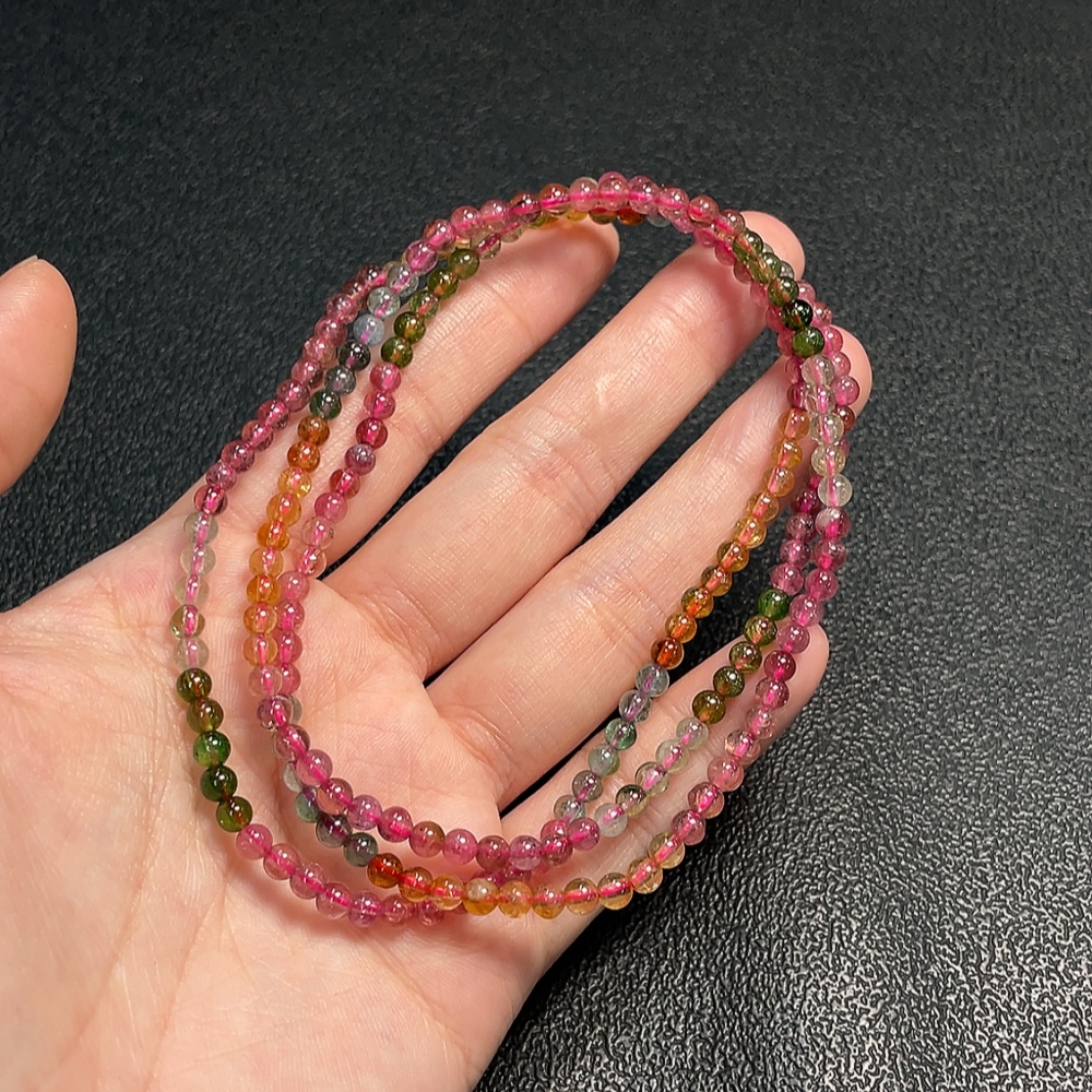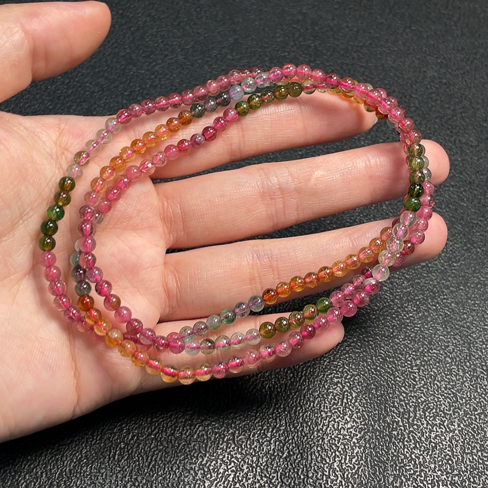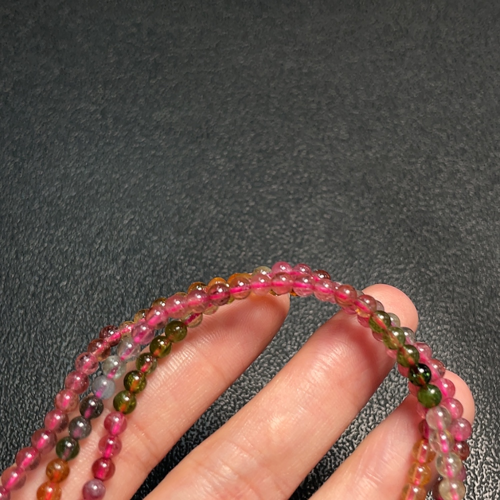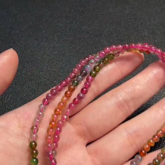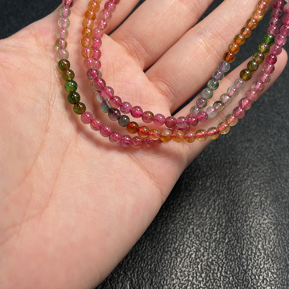 Tourmaline bead strand with visible organic matter, total weight approx. 16.81g, size ~3.8mm