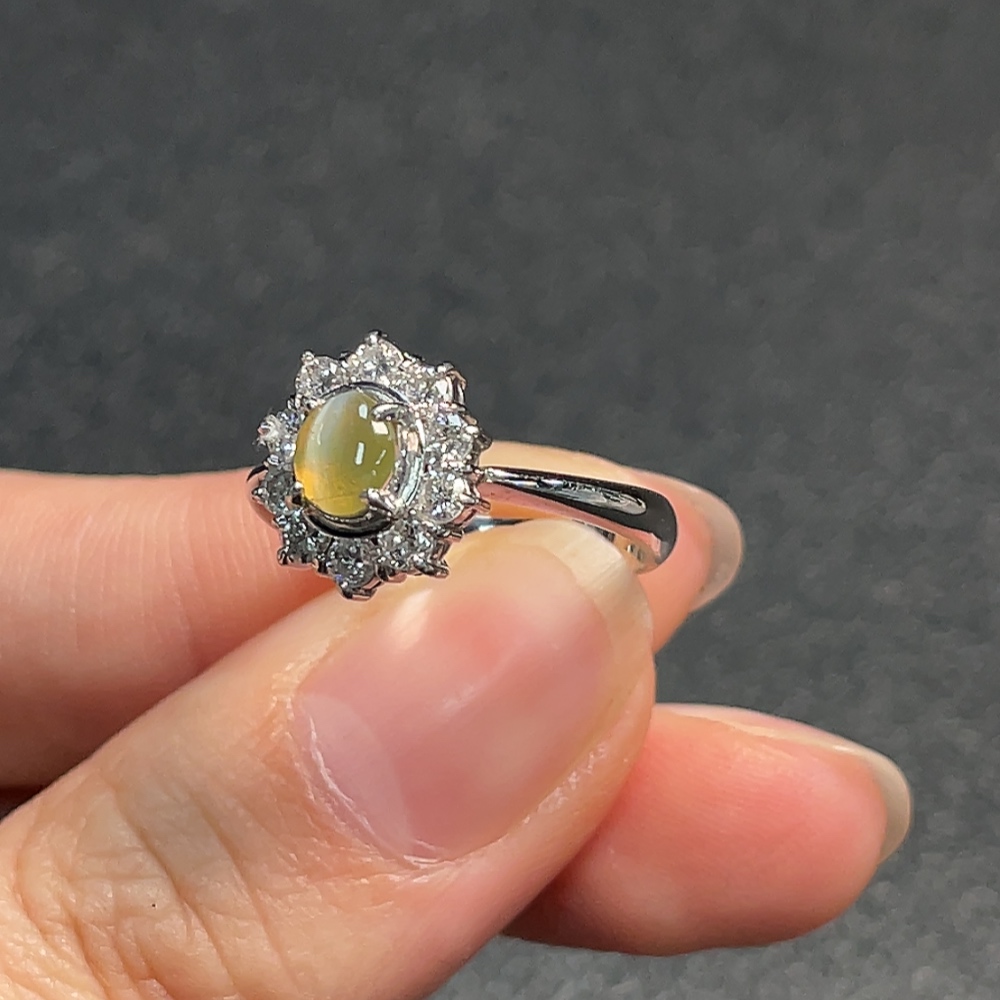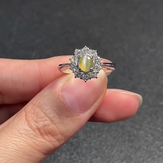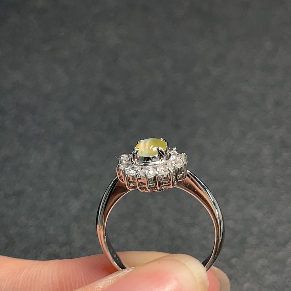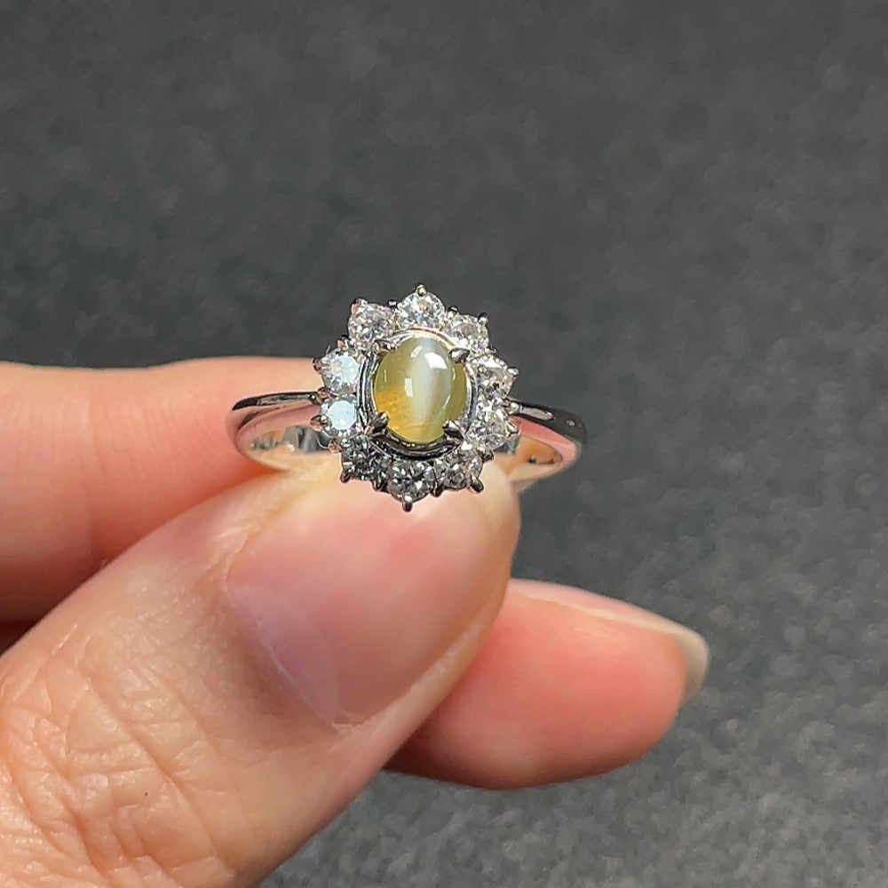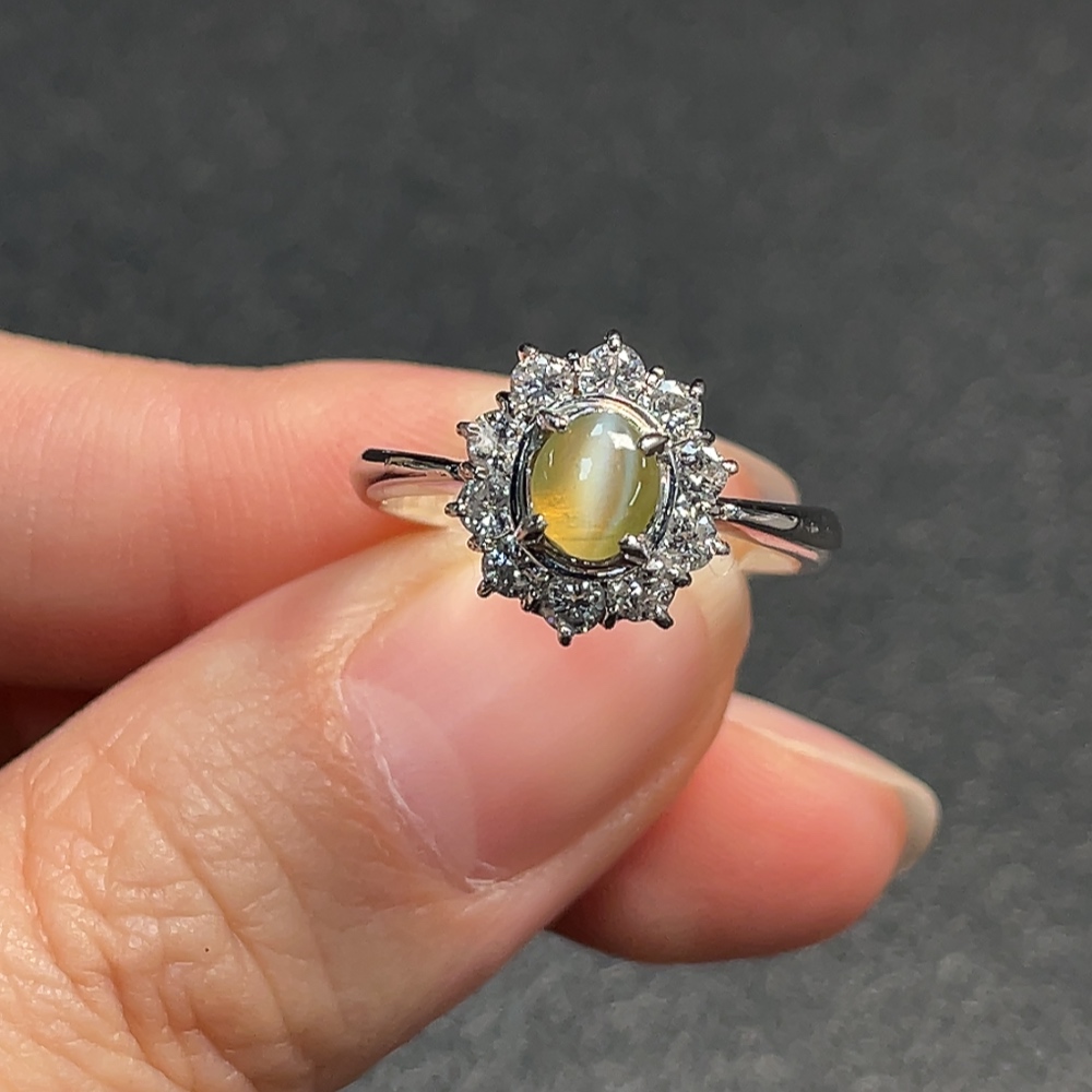 Chrysoberyl Ring with Diamond Accent, Pt90%, Total Weight Approx. 5.42g, Size 13