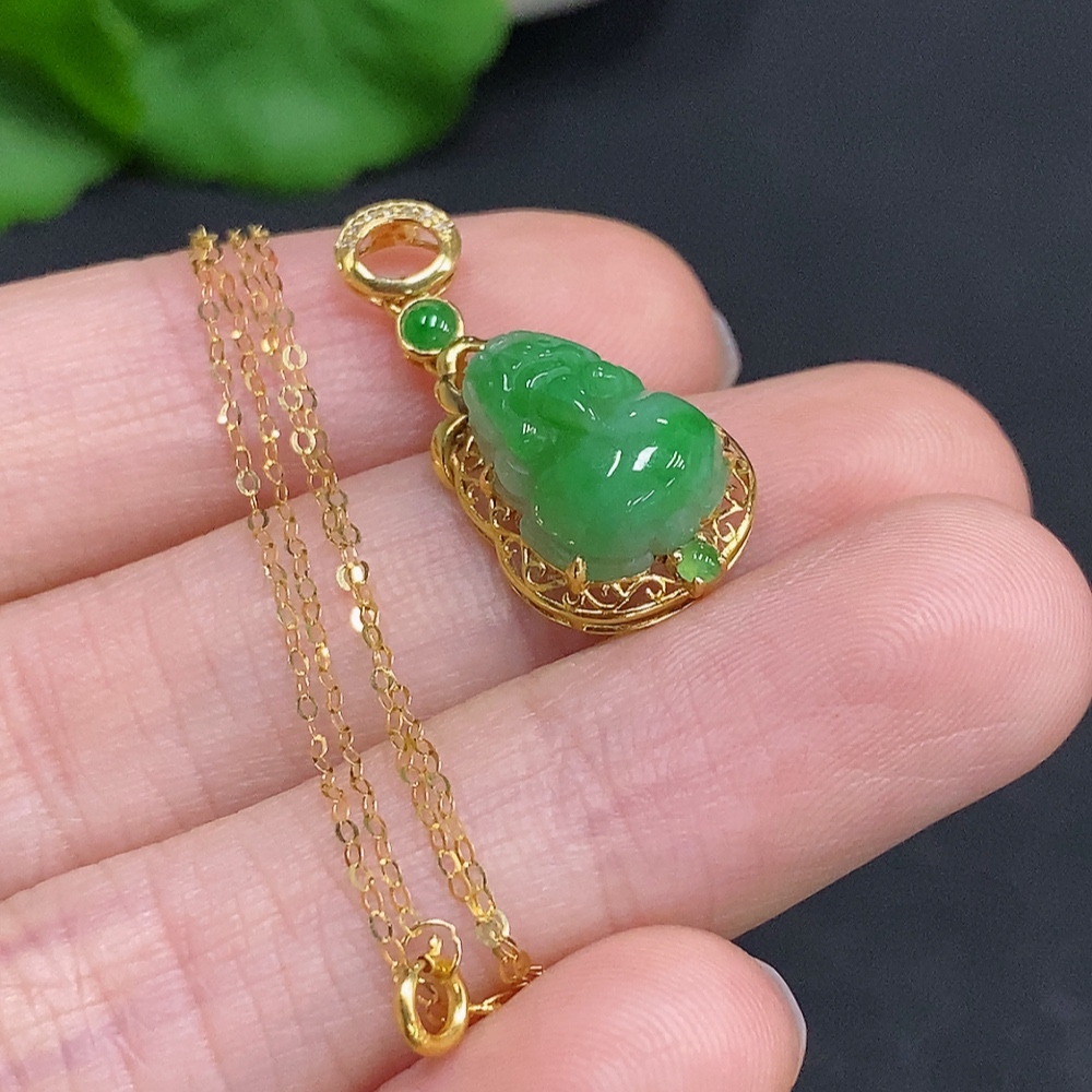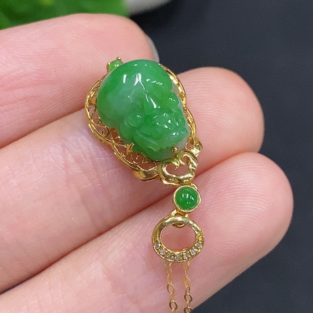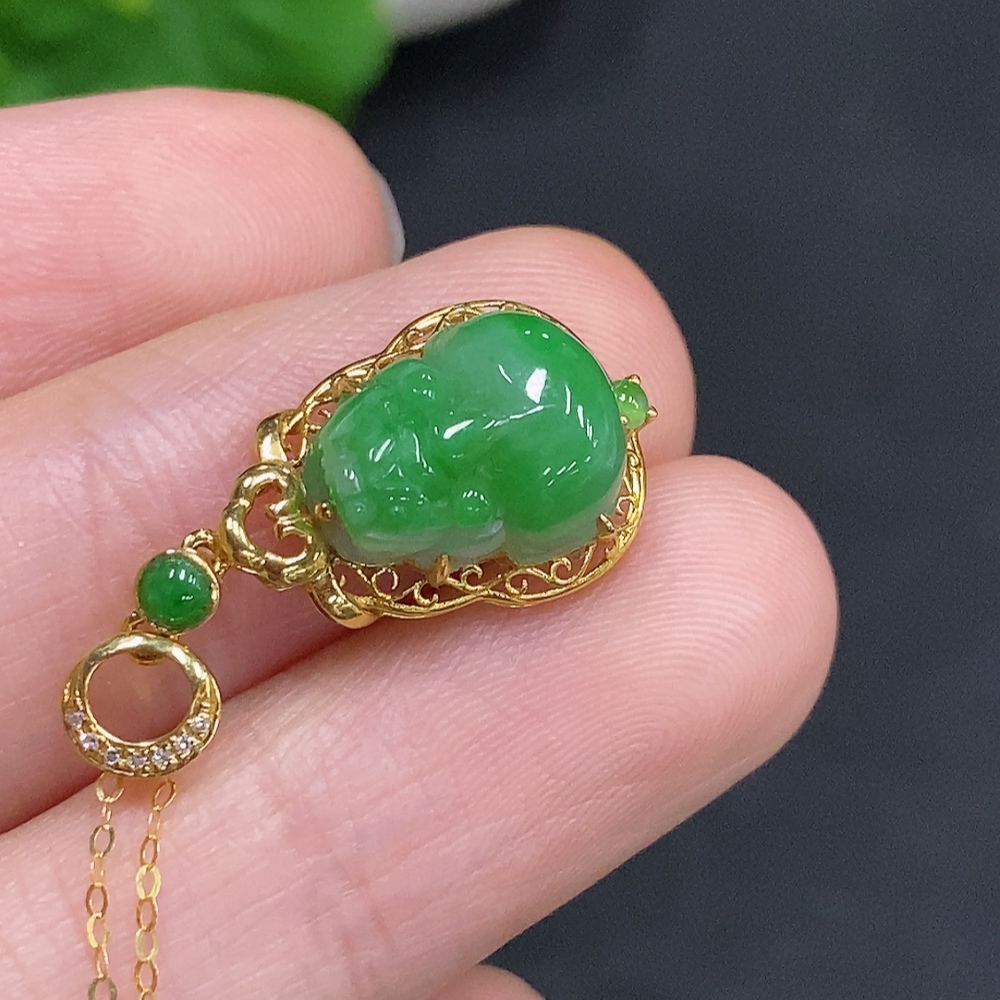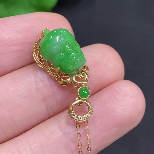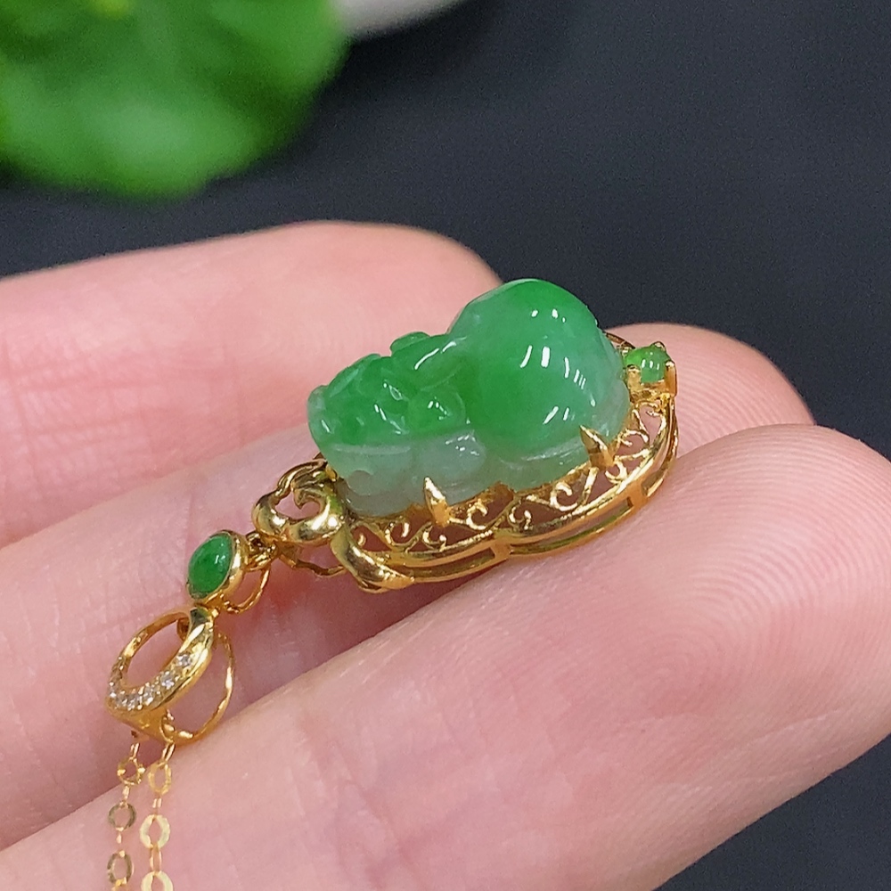 Jadeite Pi Xiu Inlaid Pendant 18K Gold Total Weight Approx. 1.9g Including Chain