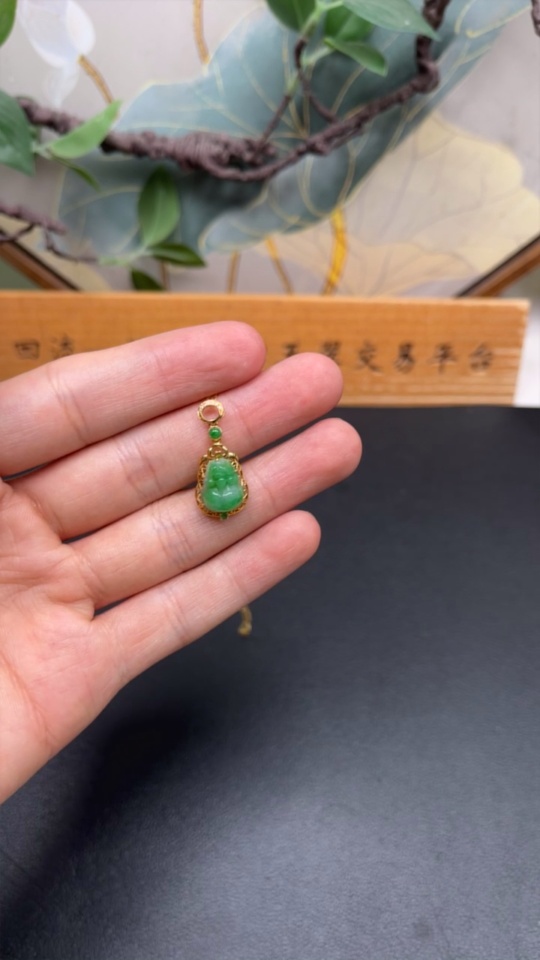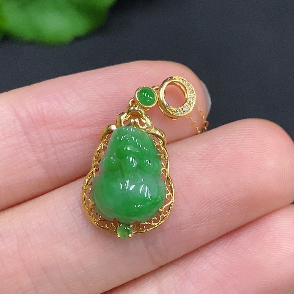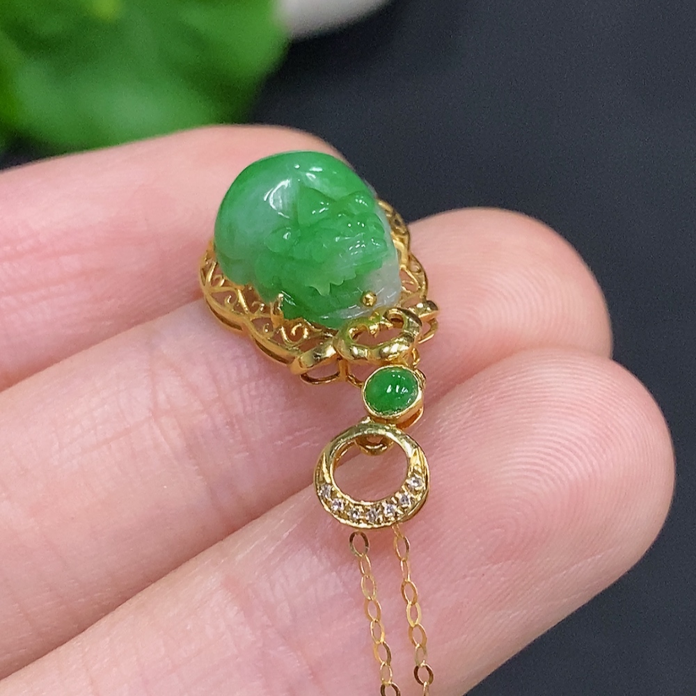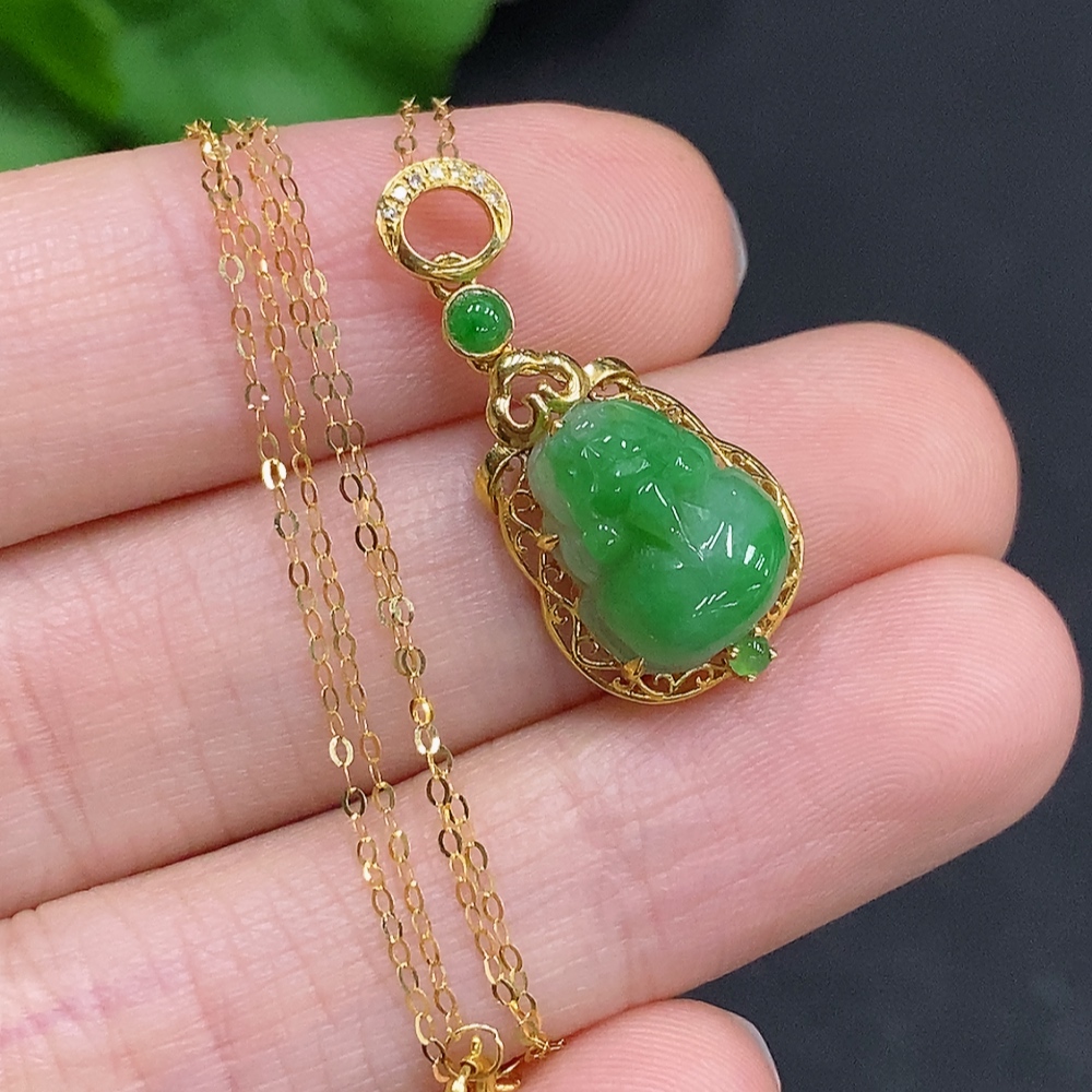 Jadeite Pi Xiu Inlaid Pendant 18K Gold Total Weight Approx. 1.9g Including Chain