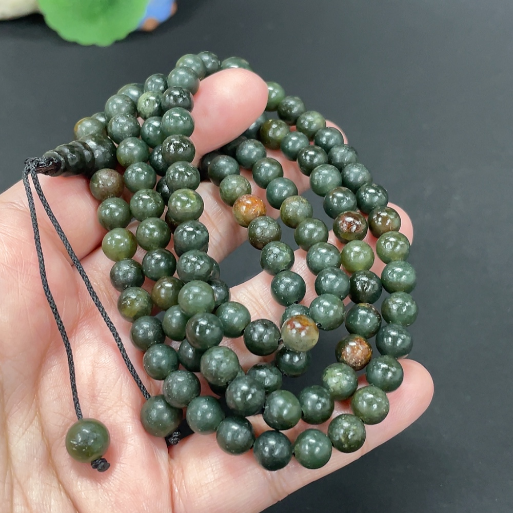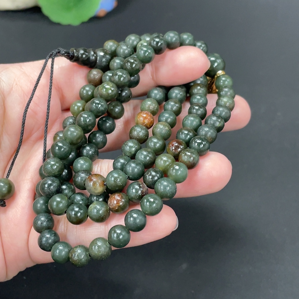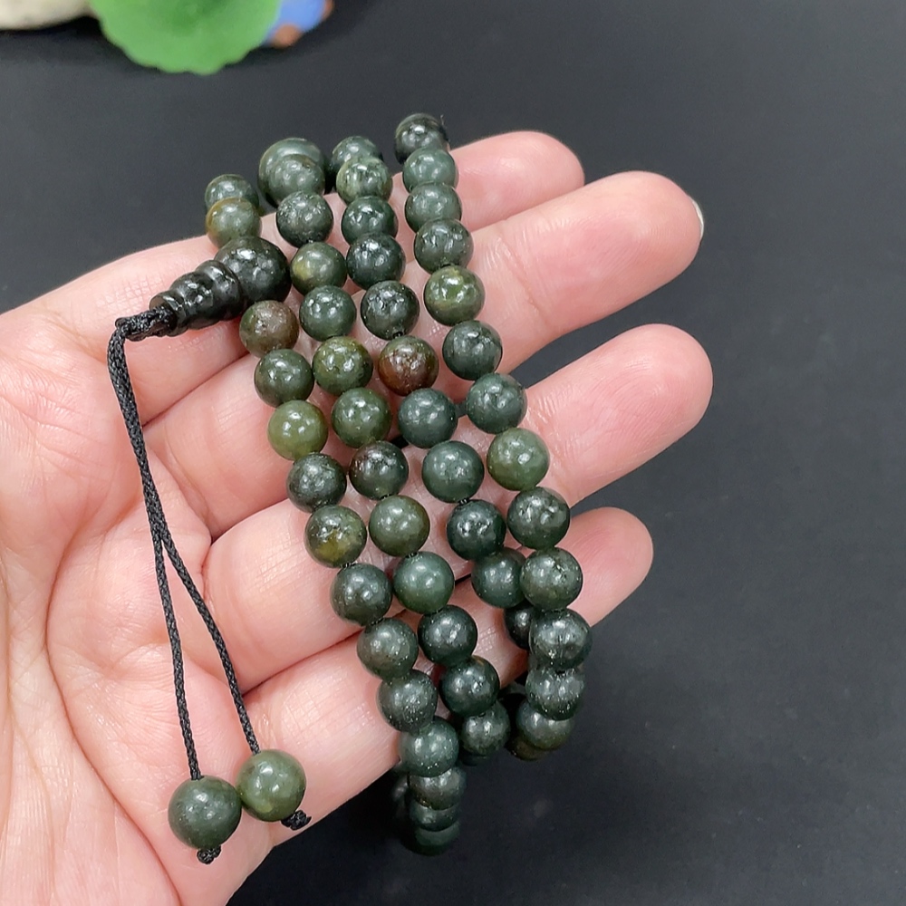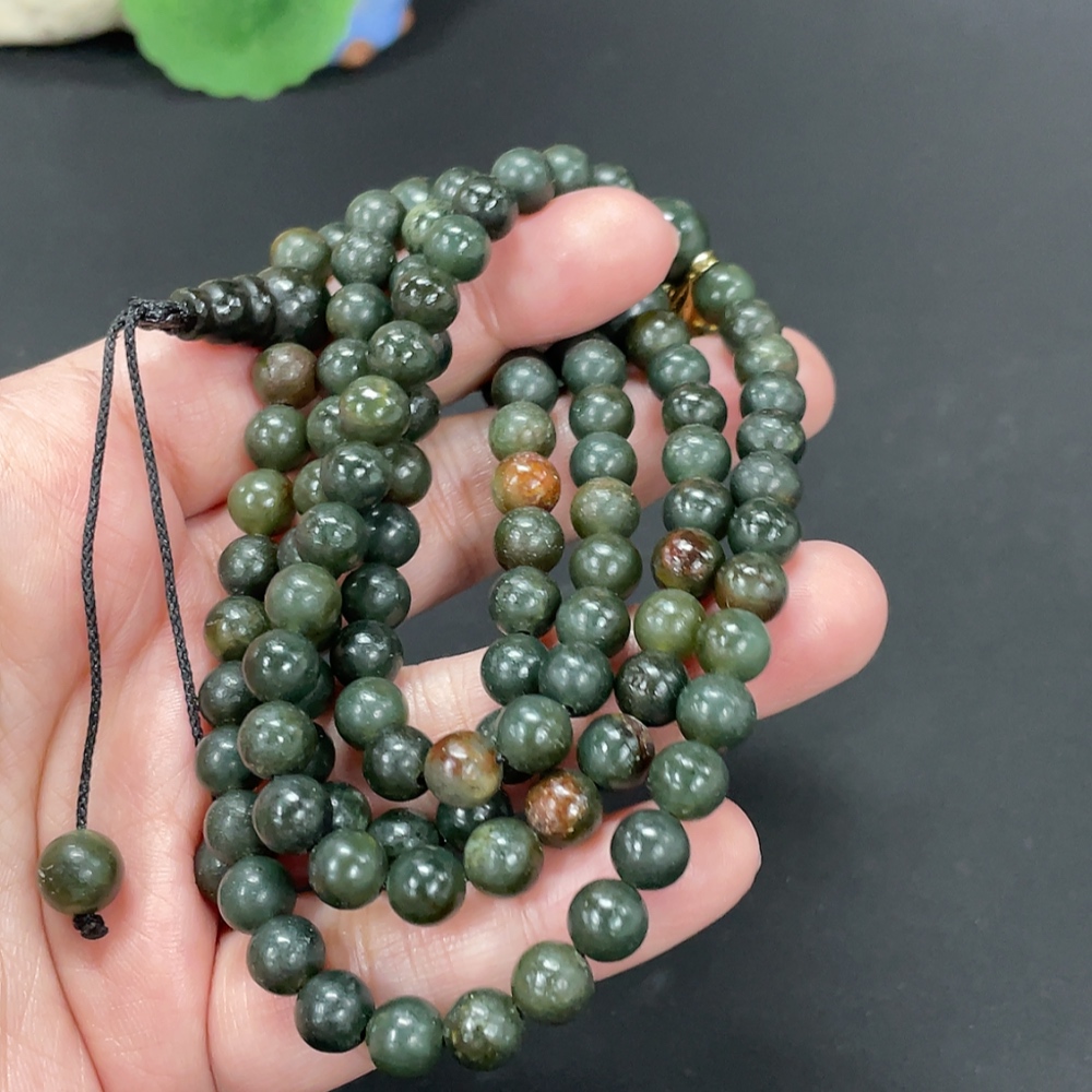 Hetian Jade Bead Necklace Approx. 6.9mm Total Weight About 76.6g Non-Gold