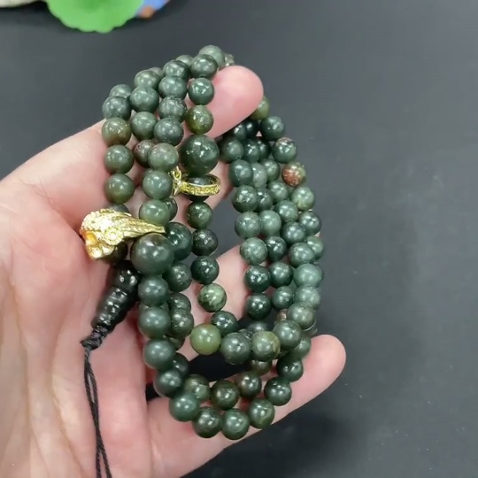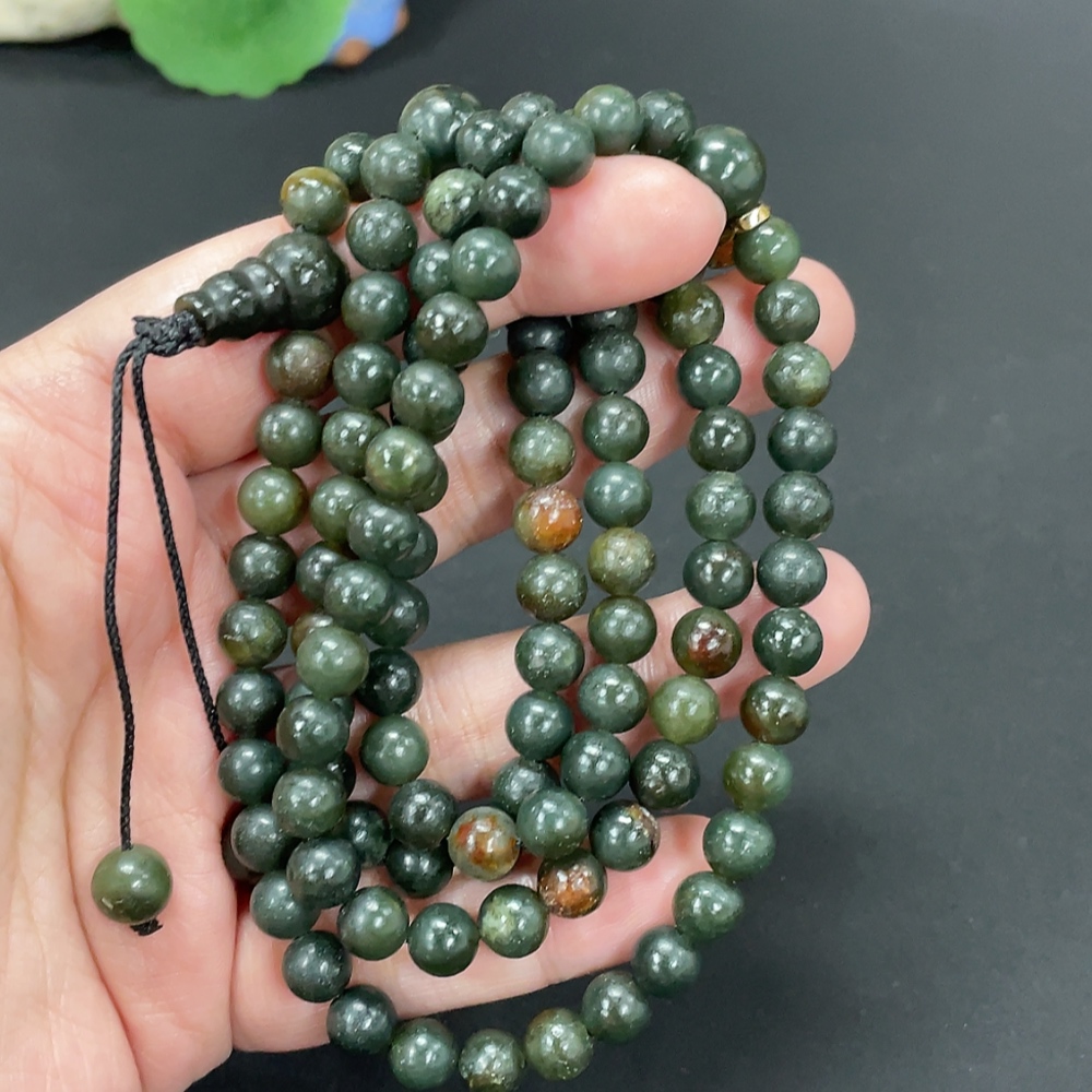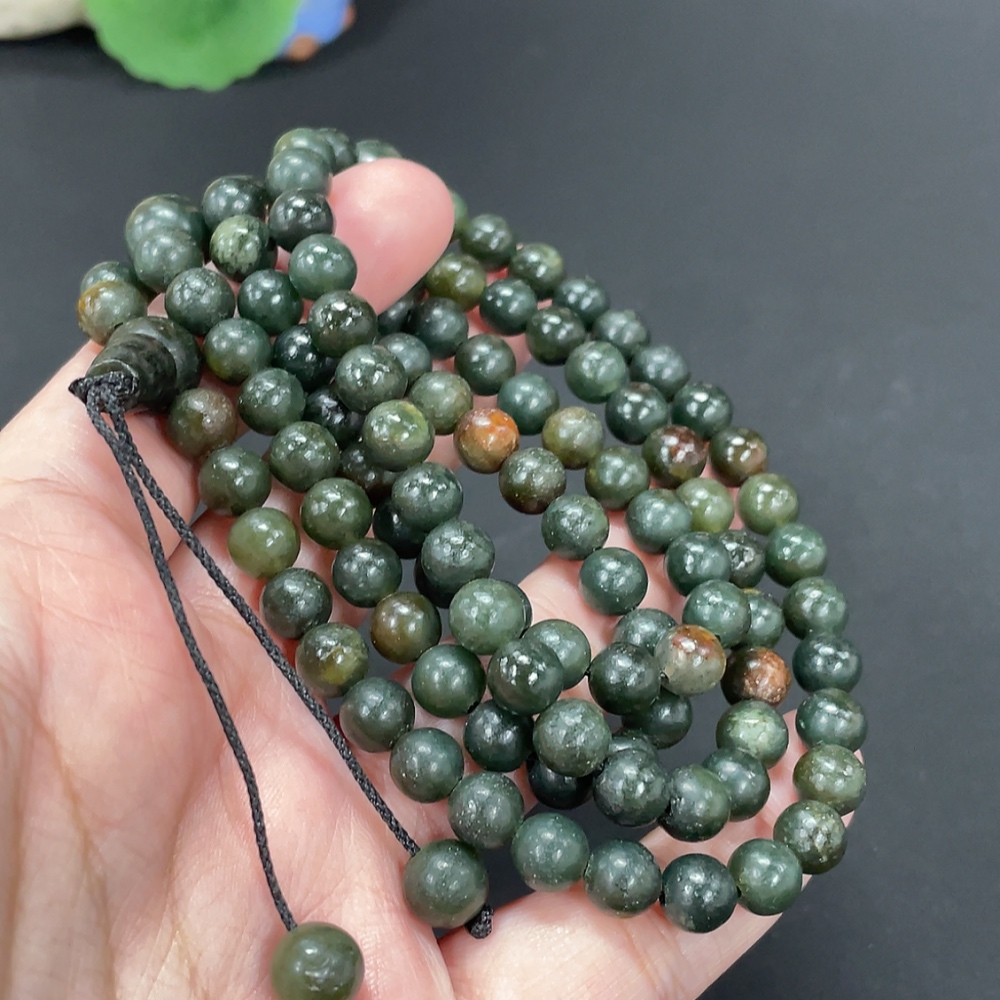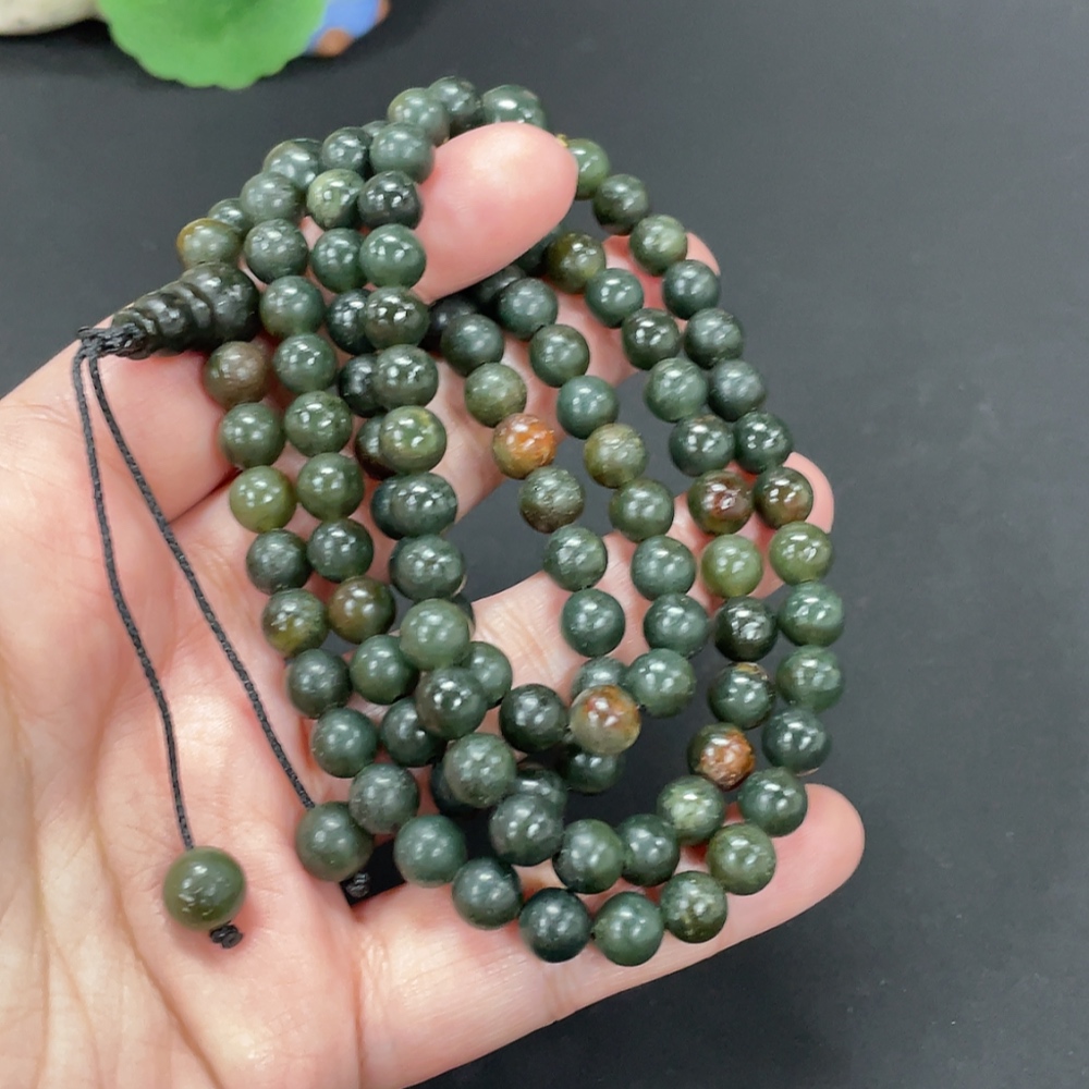 Hetian Jade Bead Necklace Approx. 6.9mm Total Weight About 76.6g Non-Gold