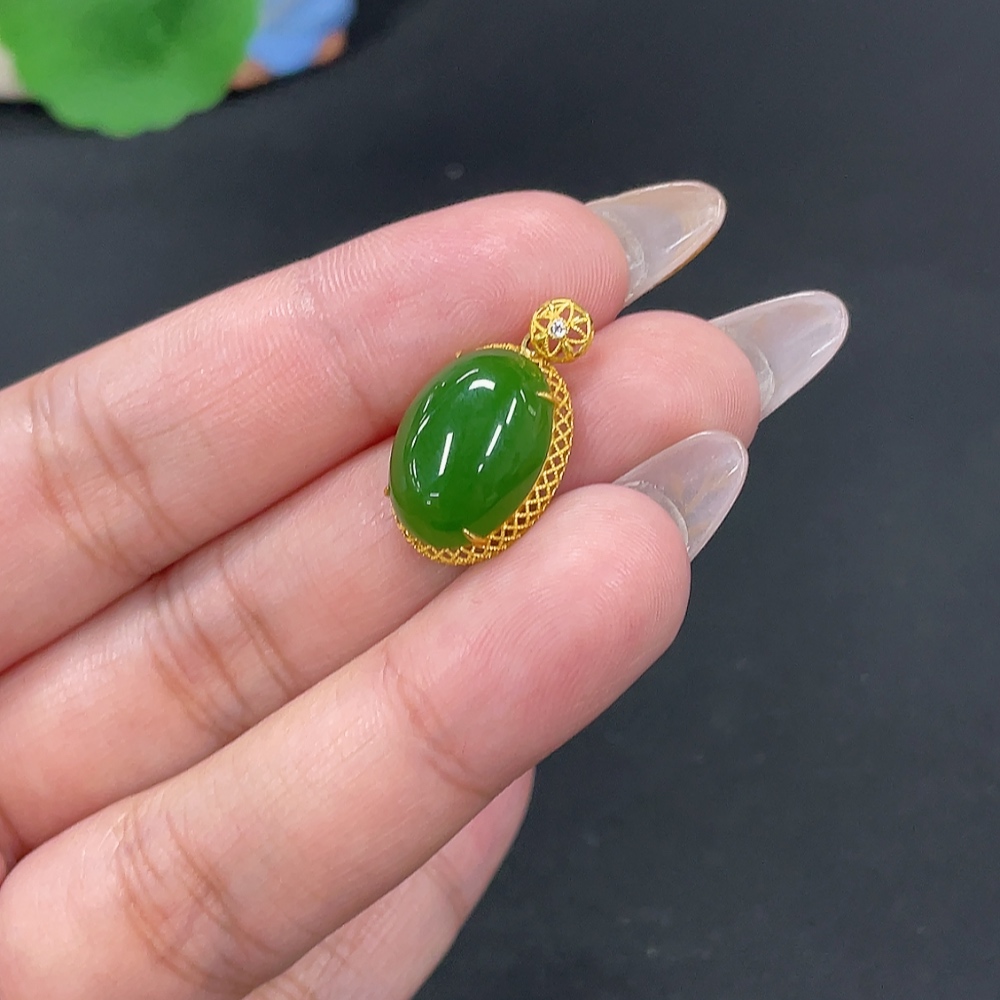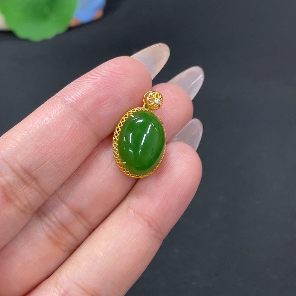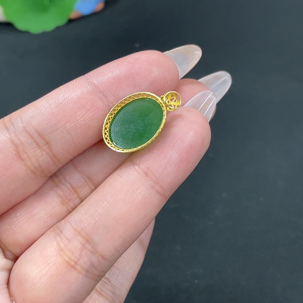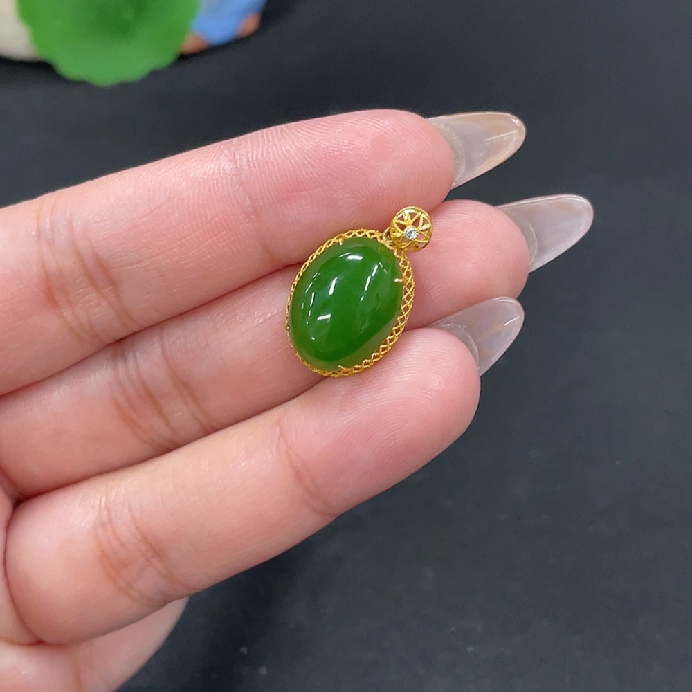 Hetian Jade Jasper Inlaid Pendant Non-Diamond 18K Gold Total Weight Approx.1.8g