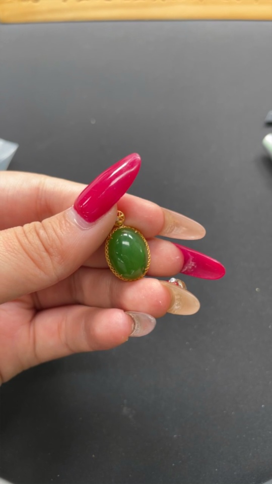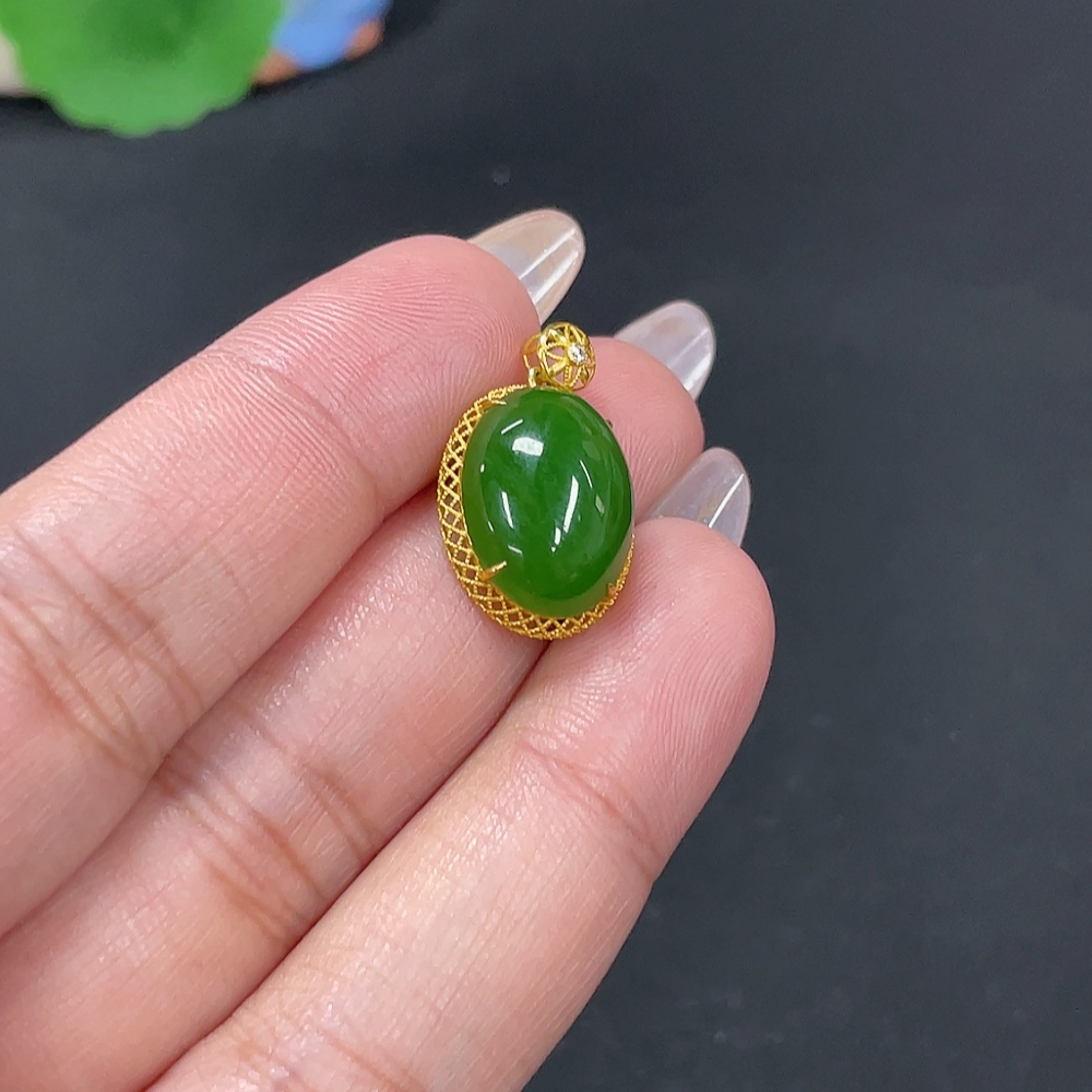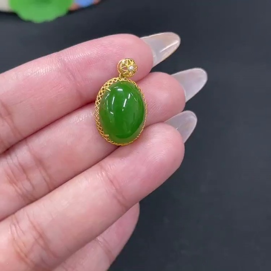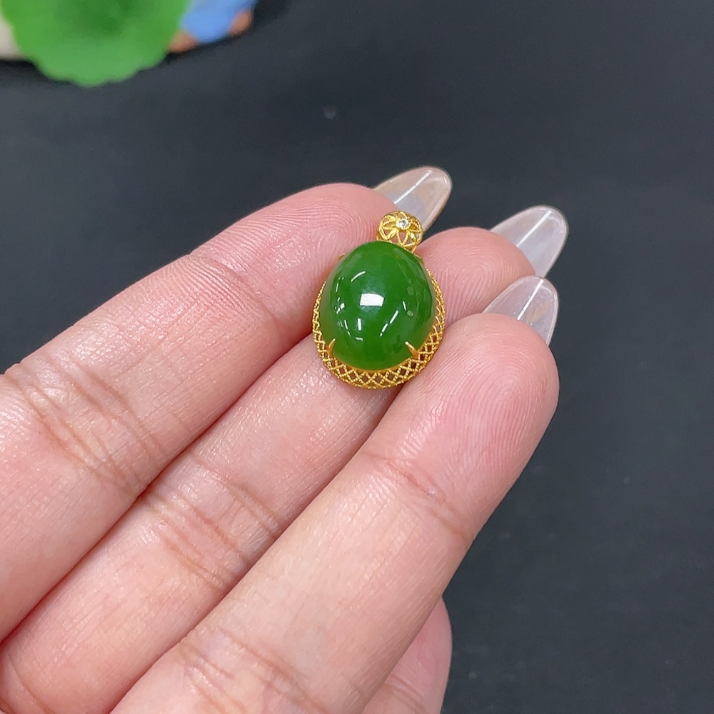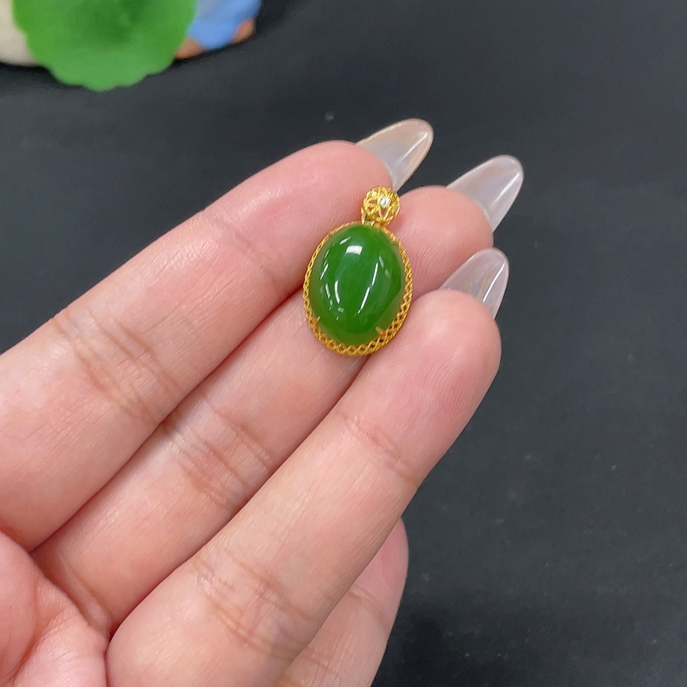 Hetian Jade Jasper Inlaid Pendant Non-Diamond 18K Gold Total Weight Approx.1.8g