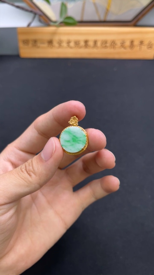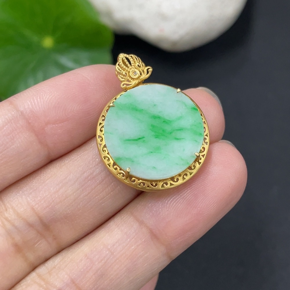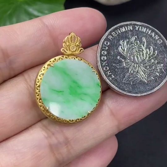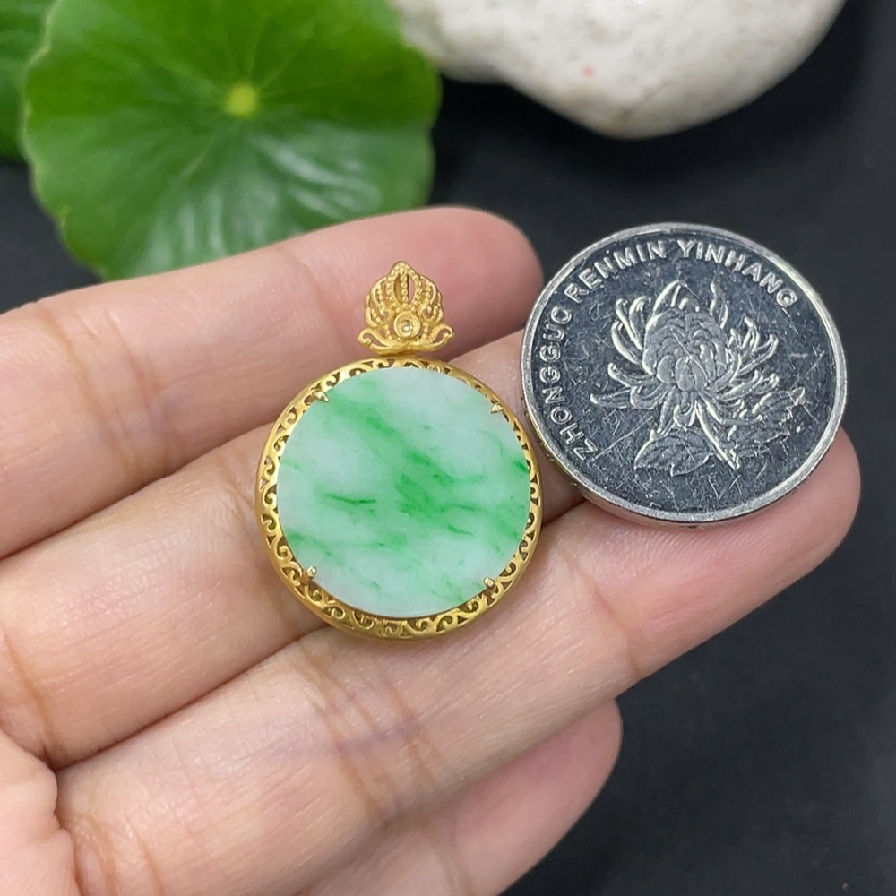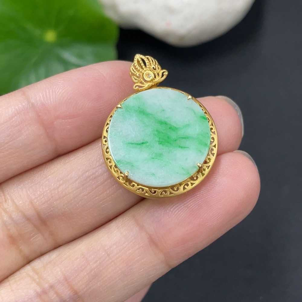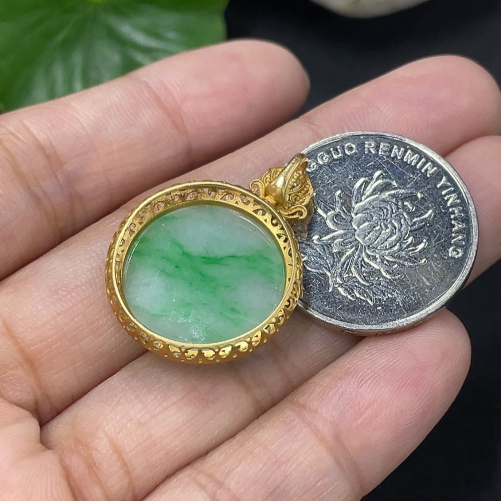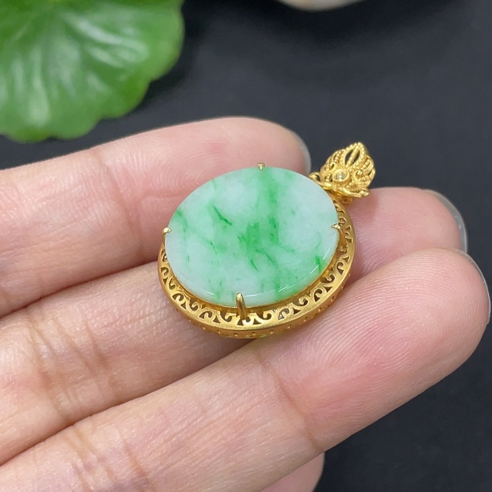 Jadeite Plain Pendant Necklace with 18K Gold and Diamond Accents, Total Weight Approx. 2.13g