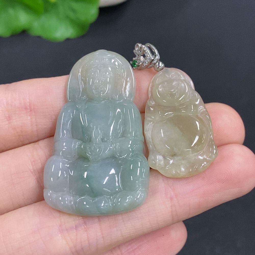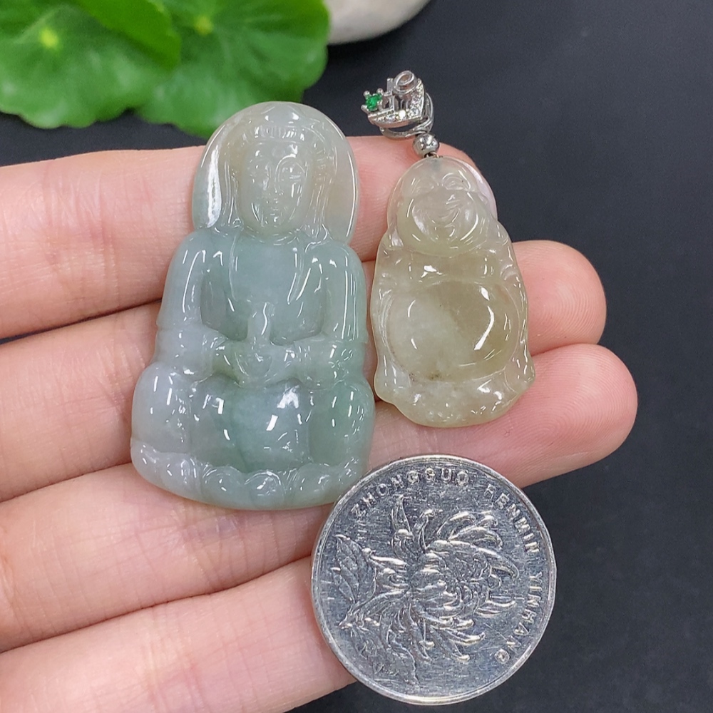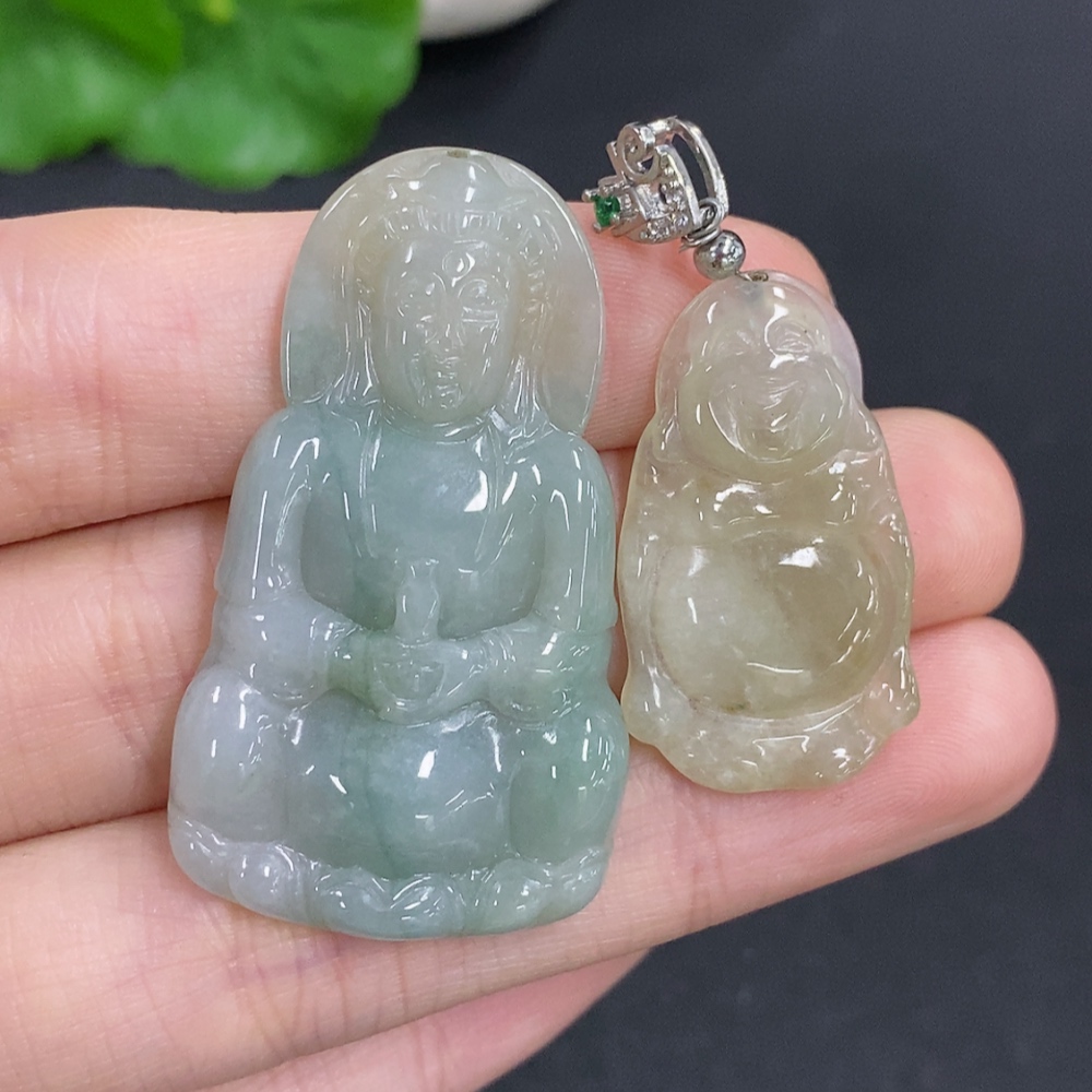 Jadeite Pendants Sell as a Lot Non-Gold Inlaid