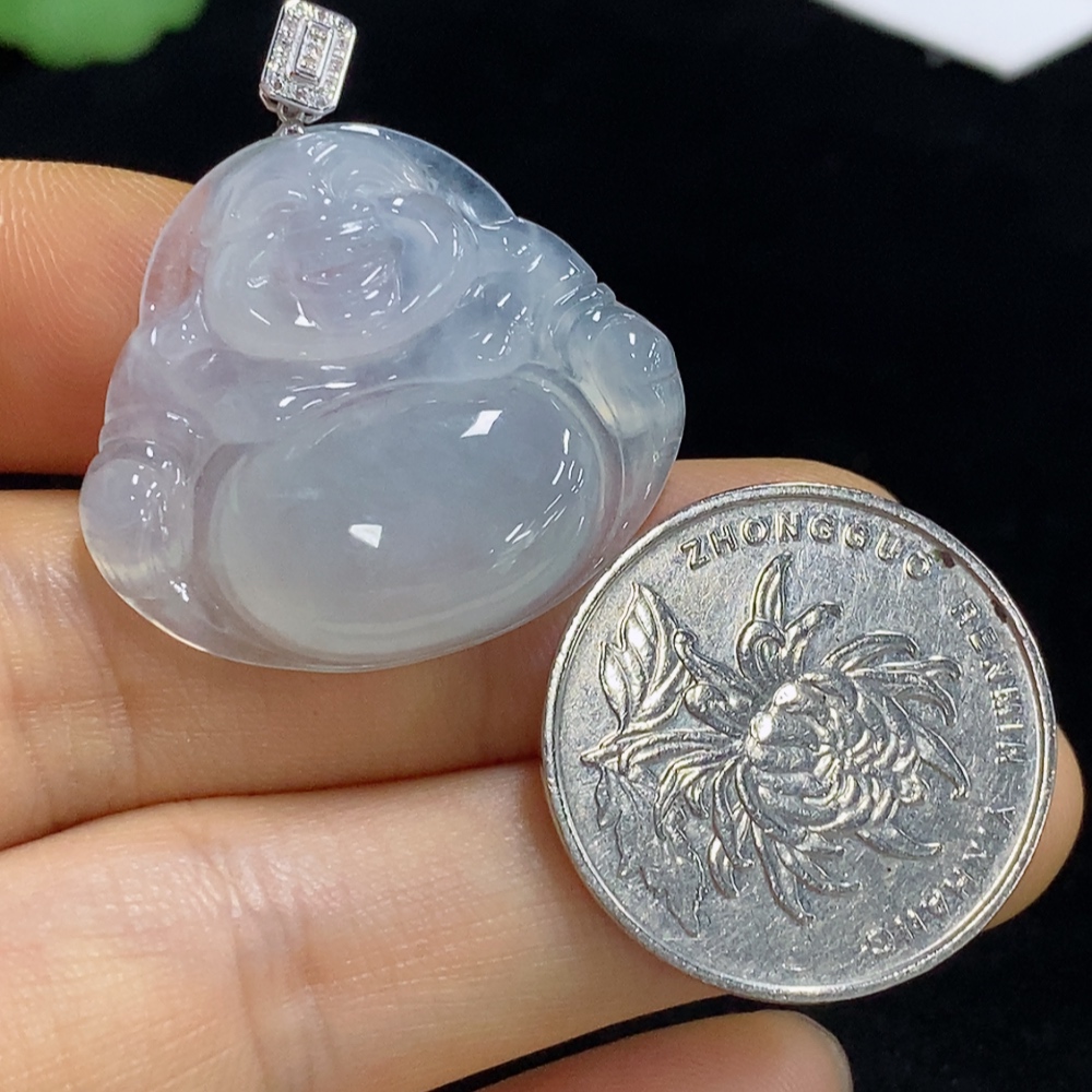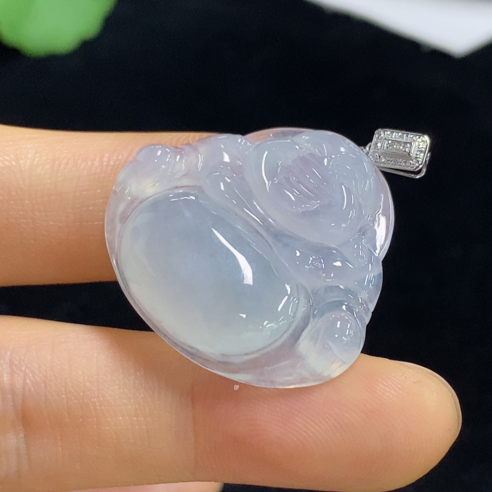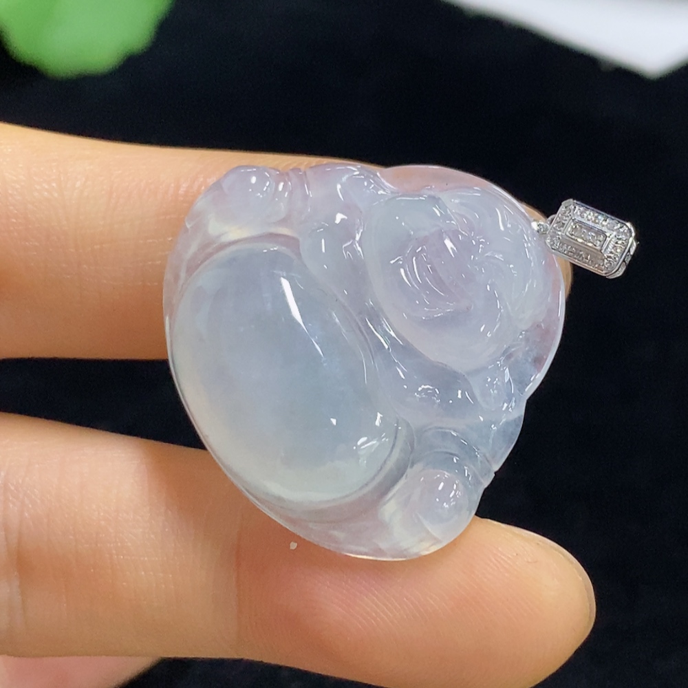 Jadeite Pendant Buddha 18k with Diamond Accent Total Weight Approx. 6.6g