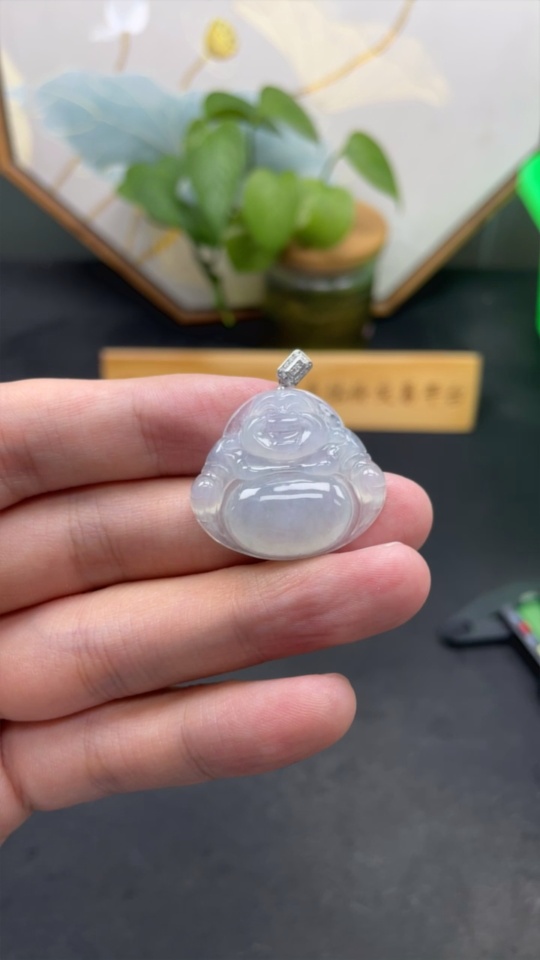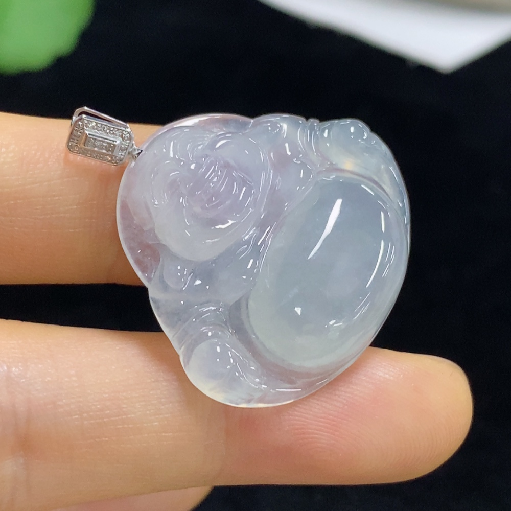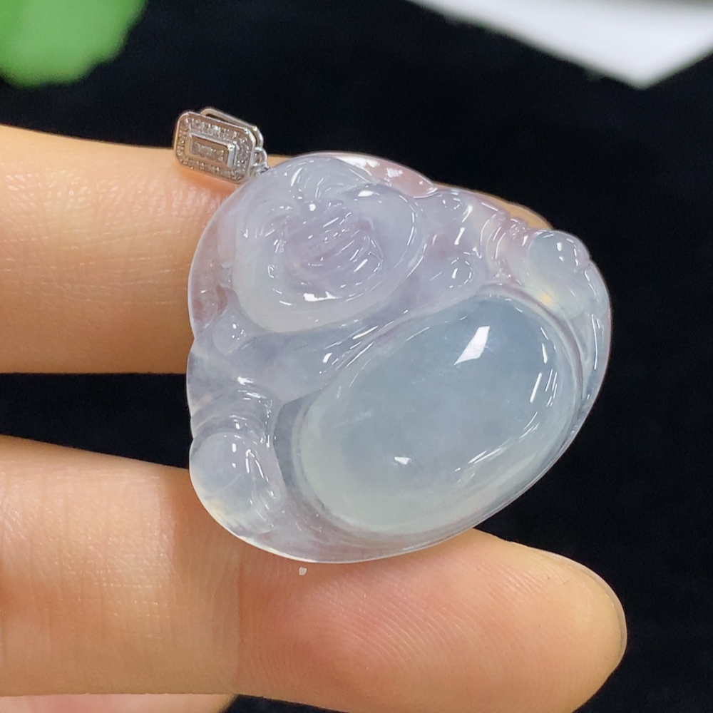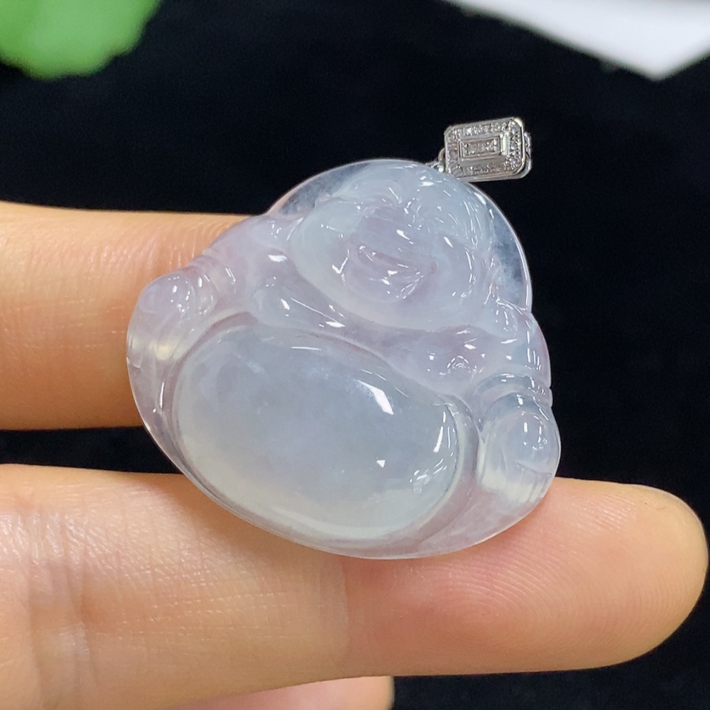 Jadeite Pendant Buddha 18k with Diamond Accent Total Weight Approx. 6.6g