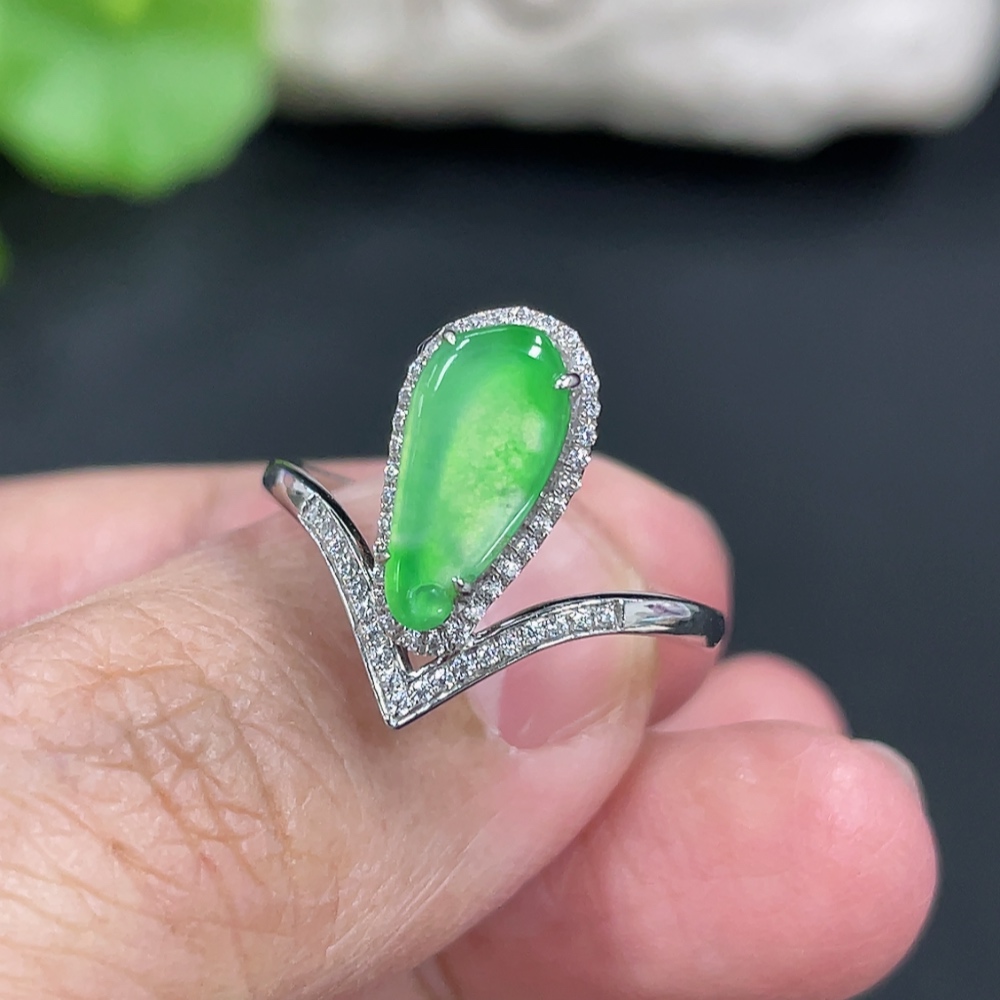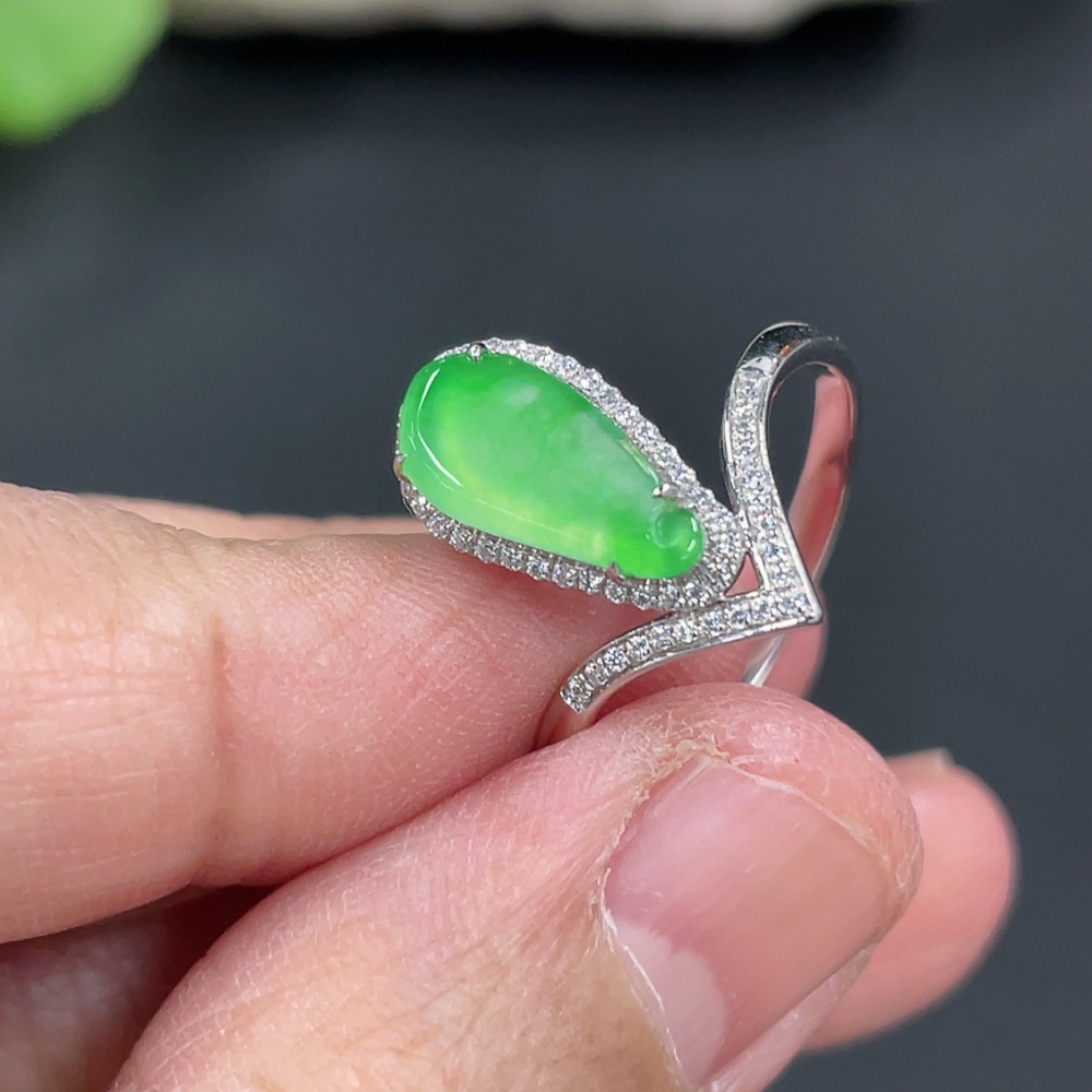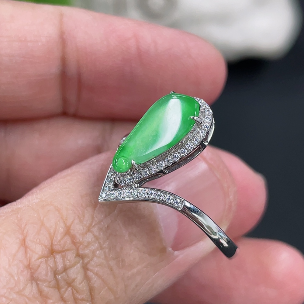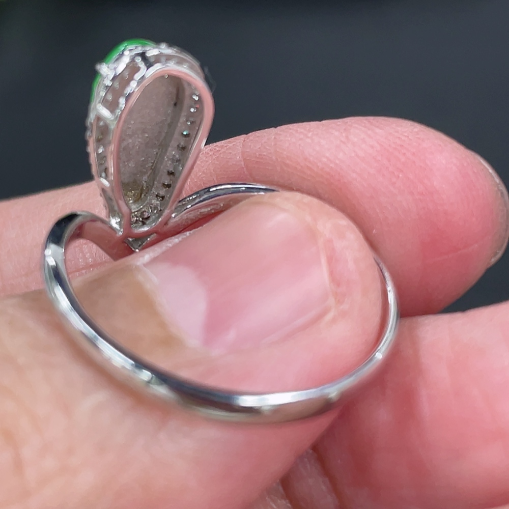 Jadeite Auspicious Gourd Inlaid Ring with Approximately 36% Au Content, Non-Diamond, Size 18, Total Weight Approximately 2.29g