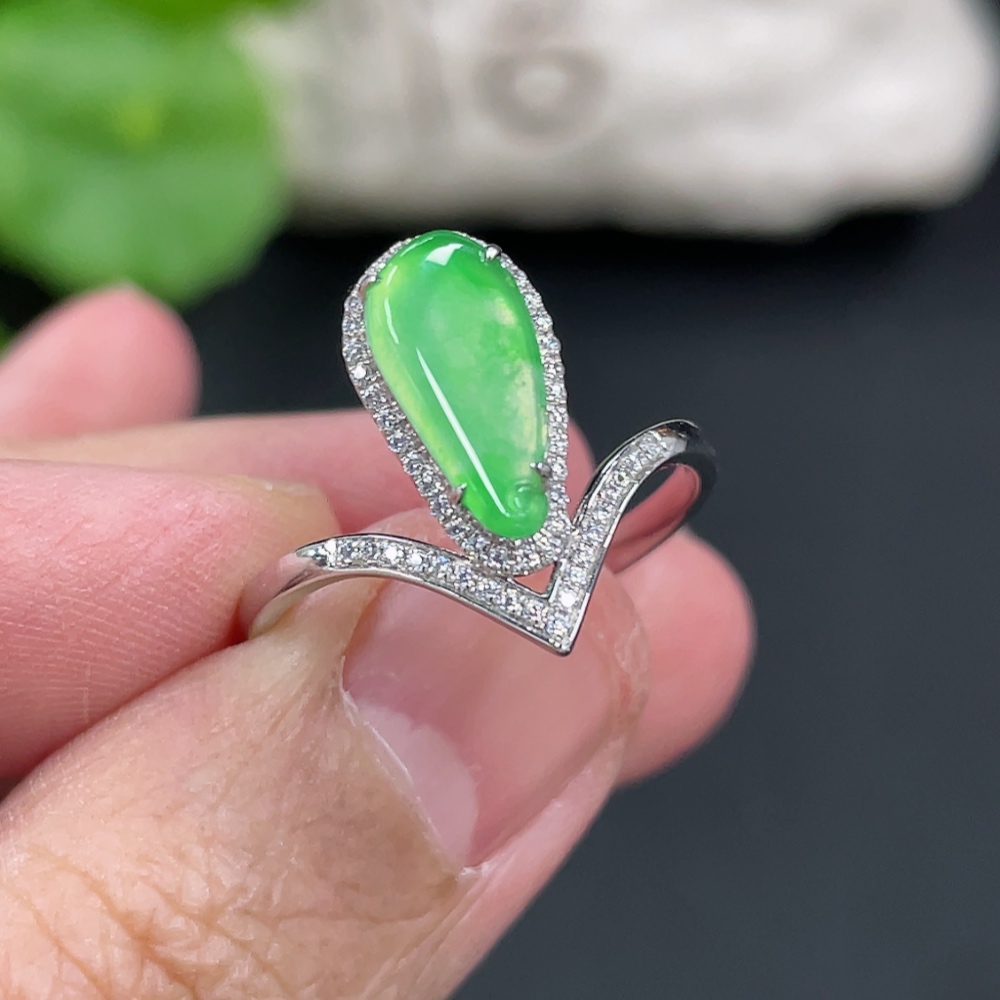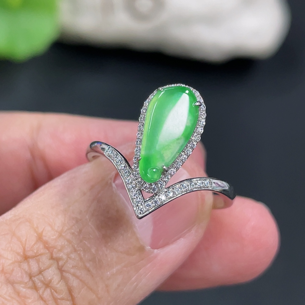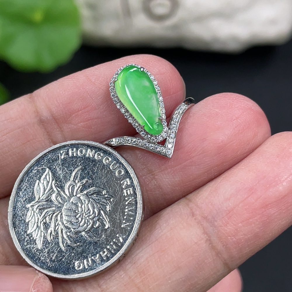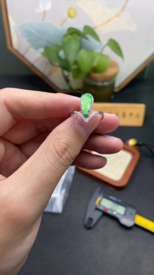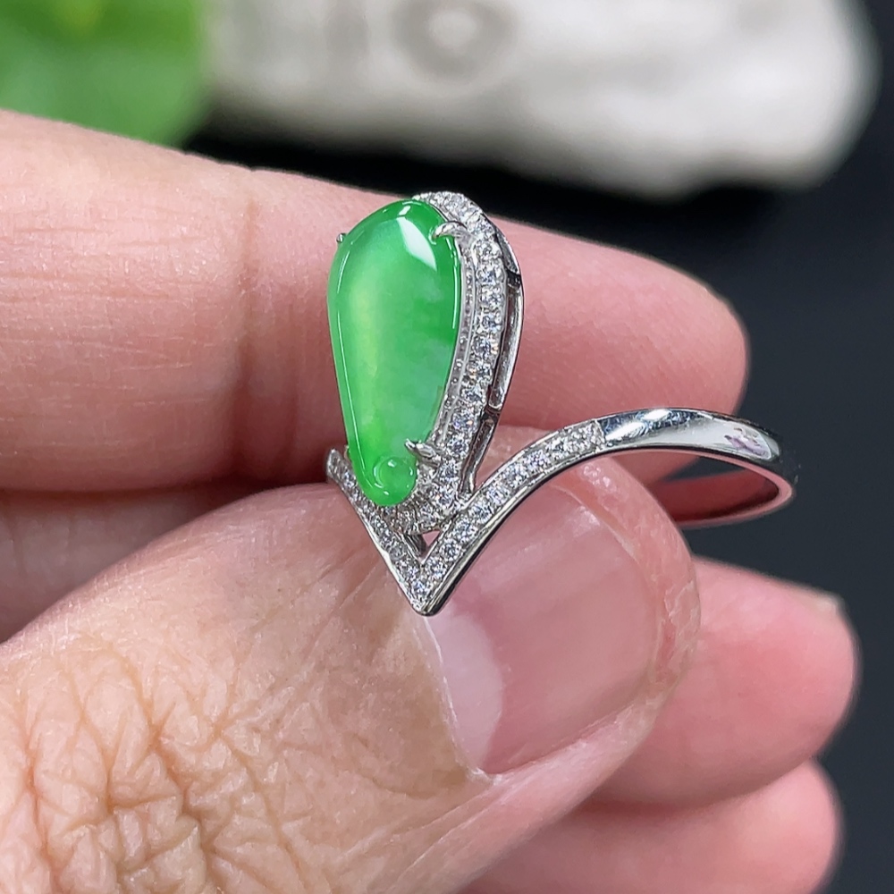 Jadeite Auspicious Gourd Inlaid Ring with Approximately 36% Au Content, Non-Diamond, Size 18, Total Weight Approximately 2.29g