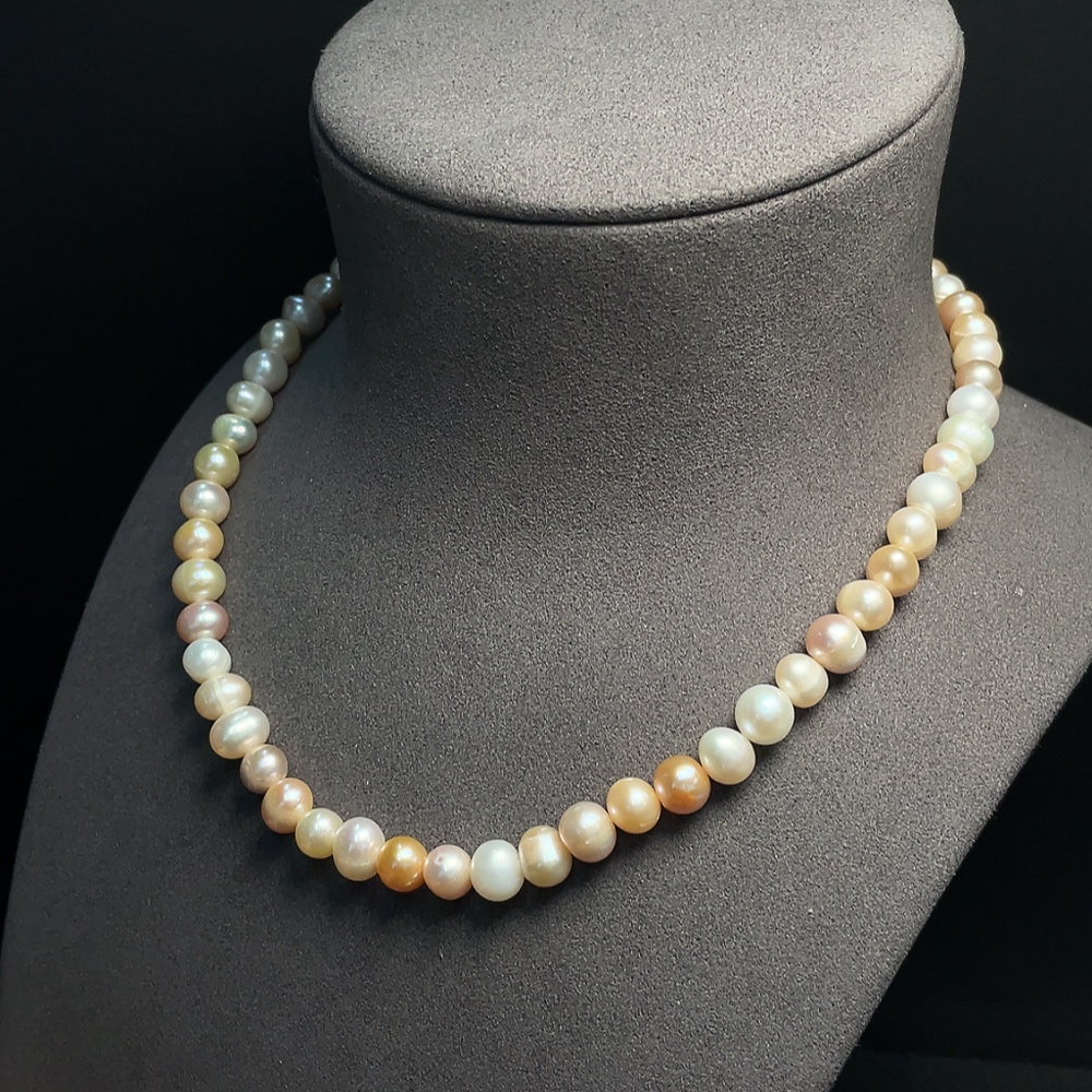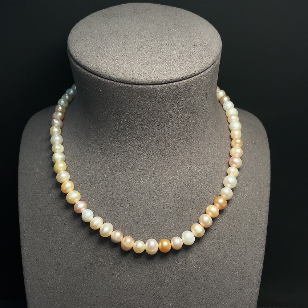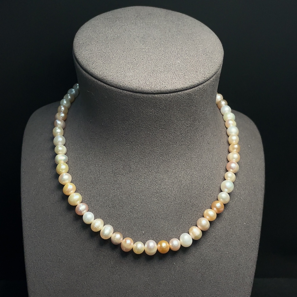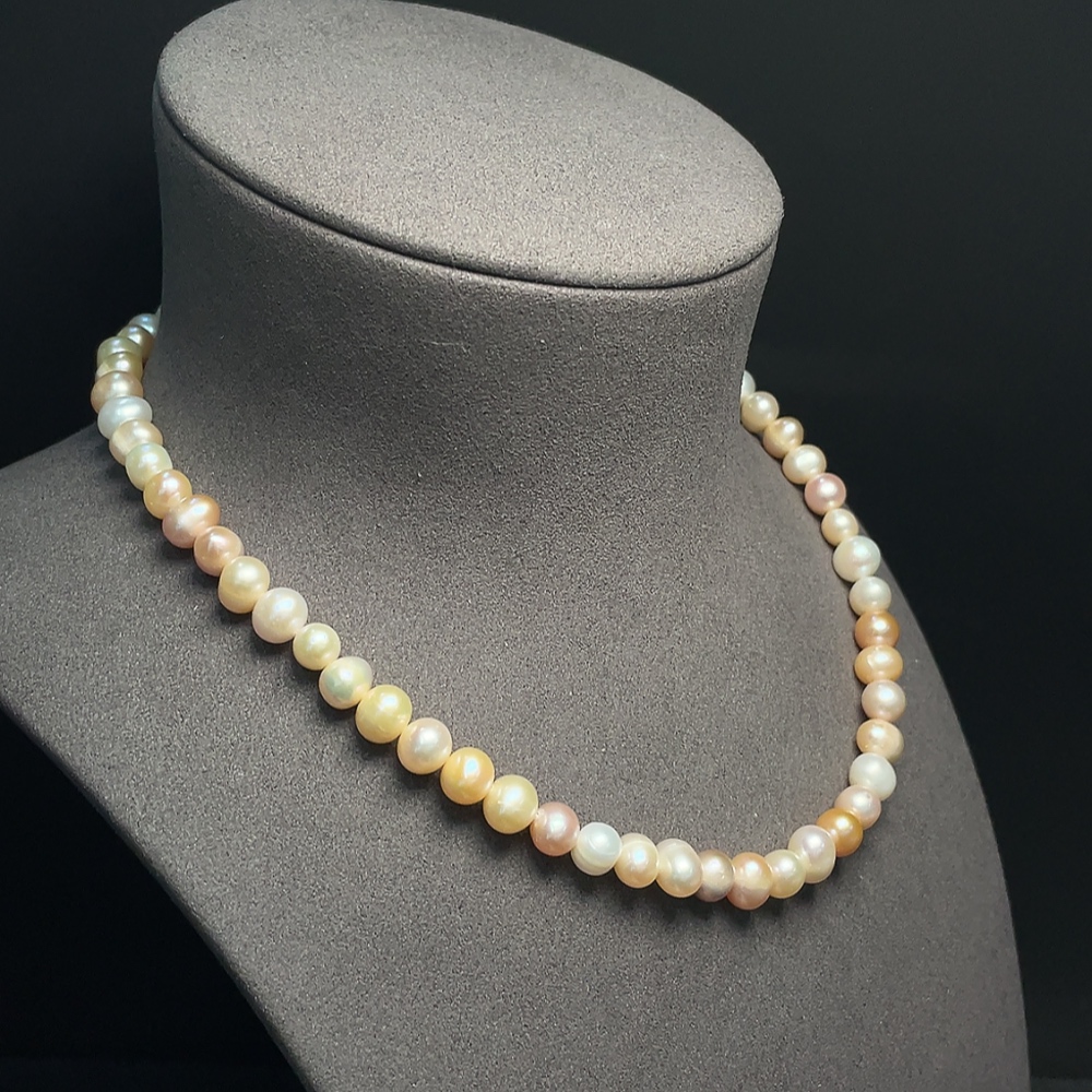 Pearl bead necklace, non-gold, total weight approx. 39.18g, size 7.6-9.4mm