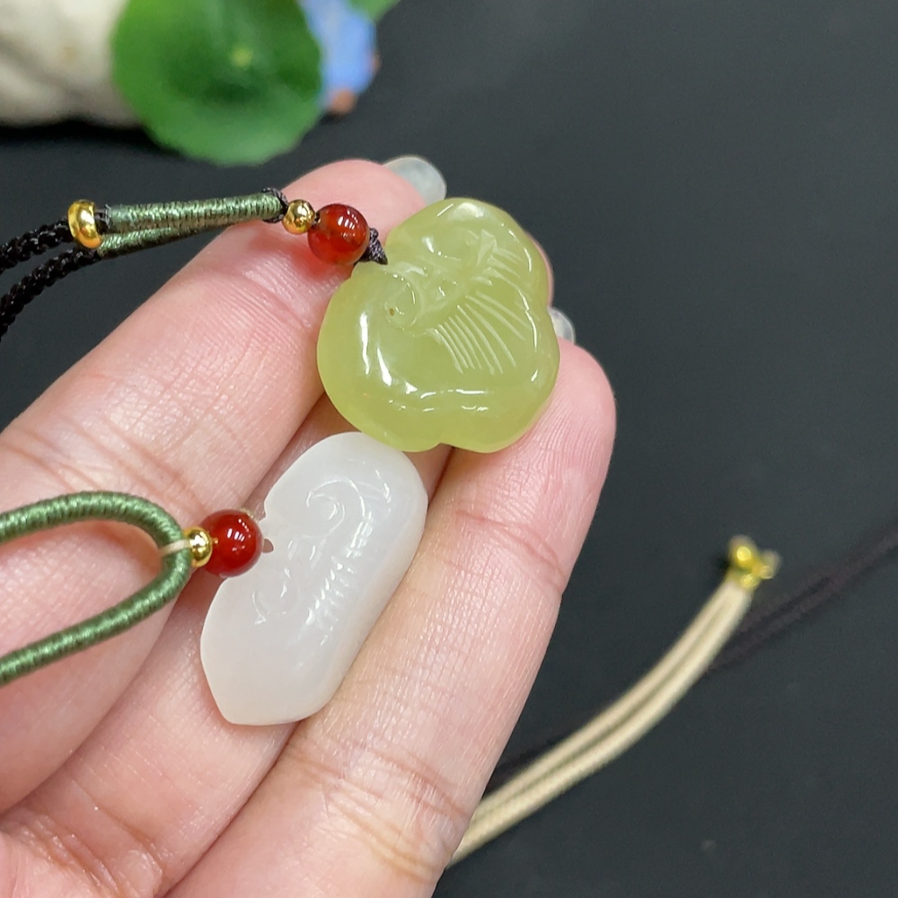 Hetian Jade Pendant Ruyi Total Weight Approx. [with rope] 14.6g