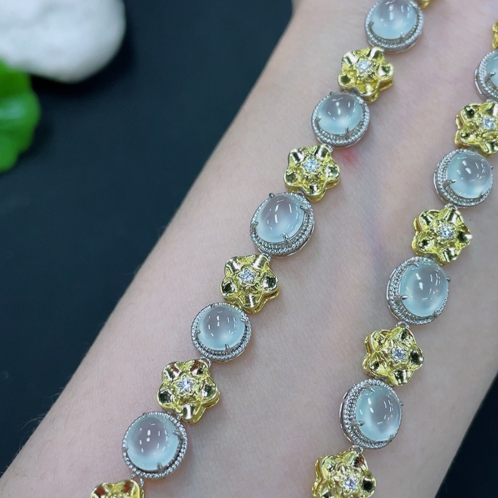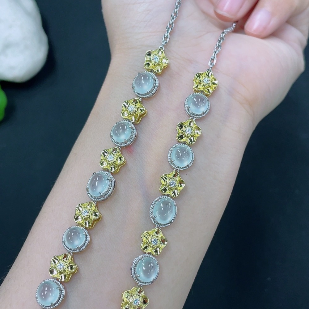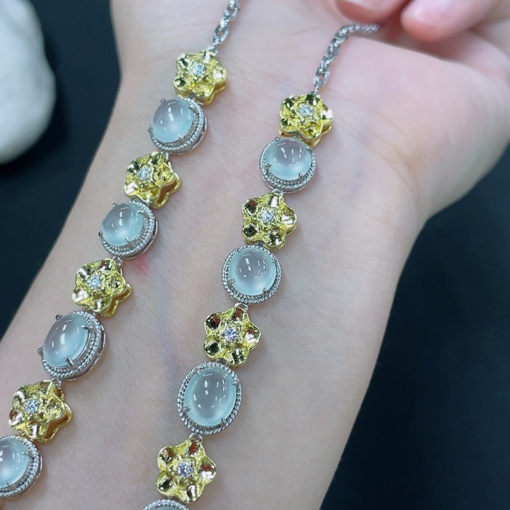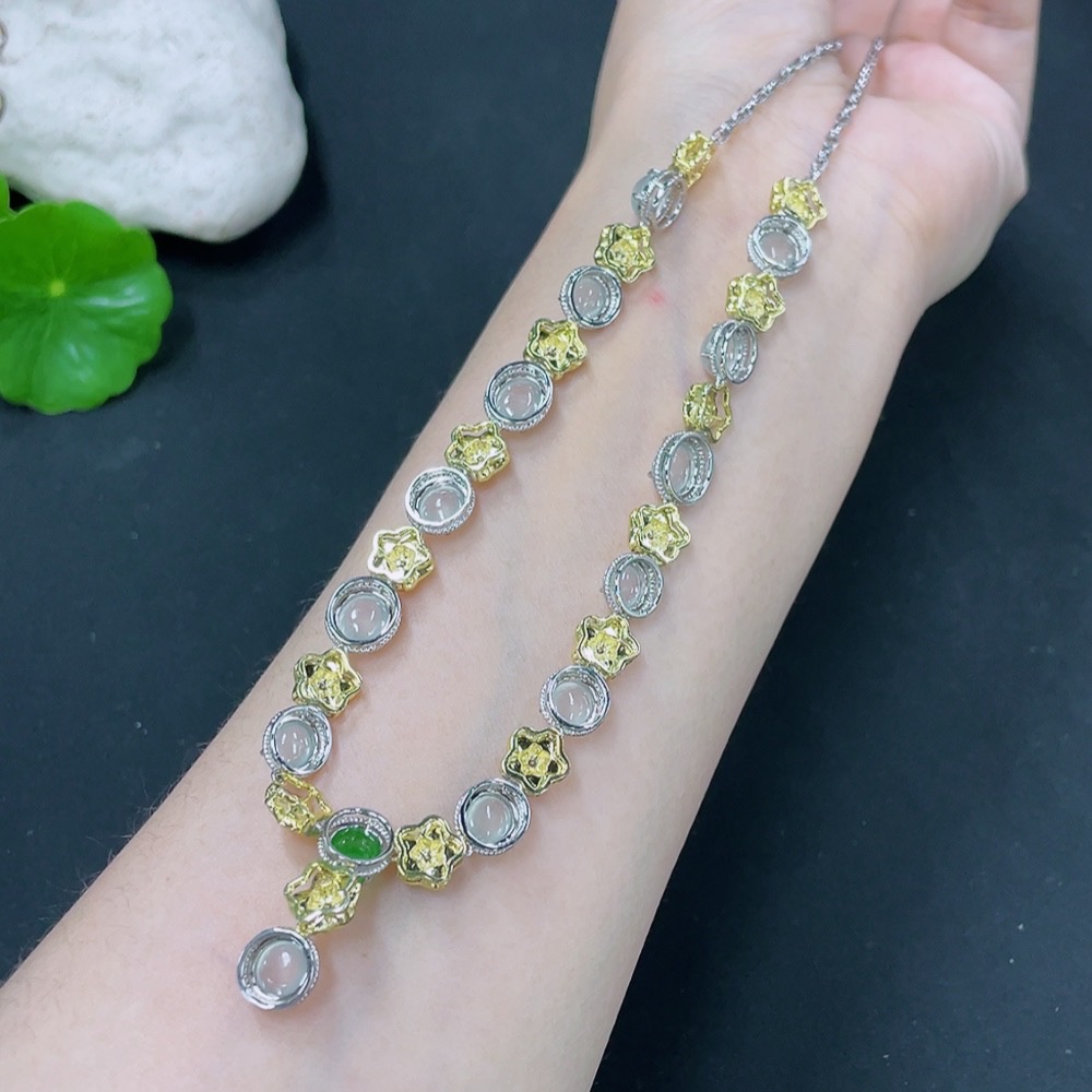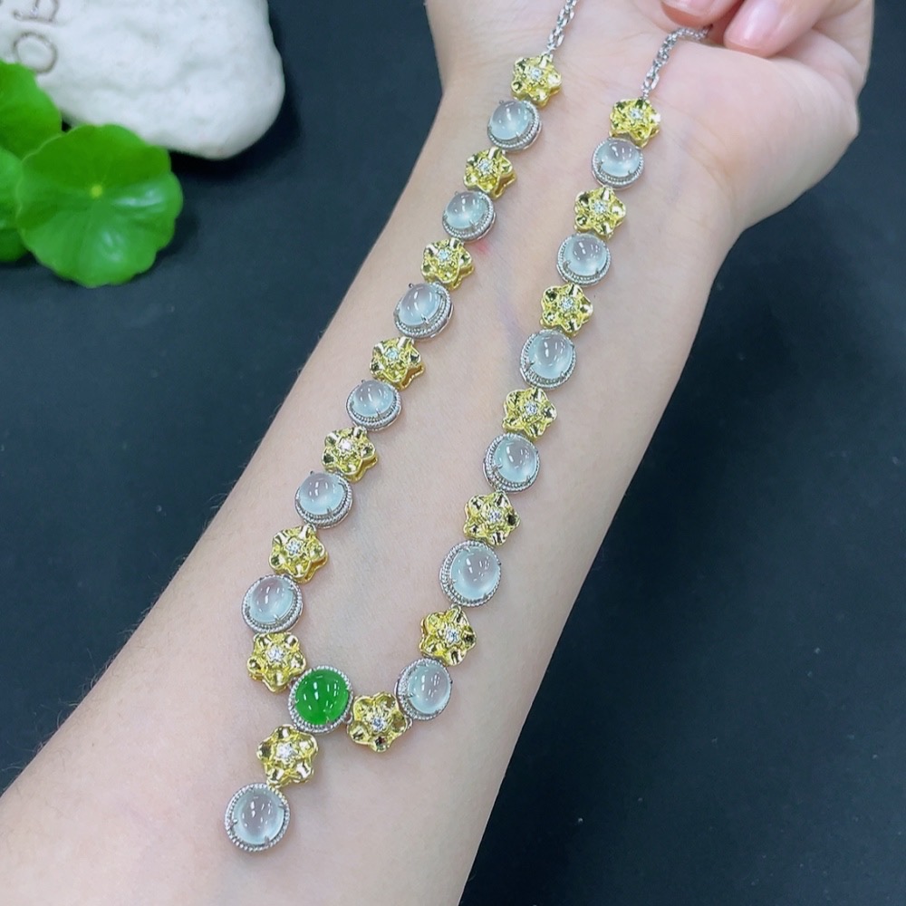 Jadeite Cabochon Inlaid Set Necklace, Non-Gold Inlaid, Total Weight Approx. 19.78g