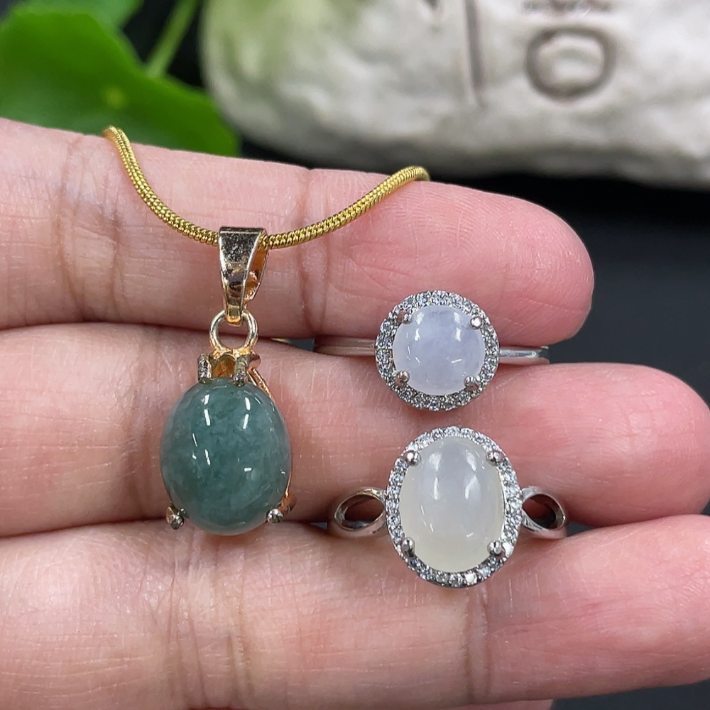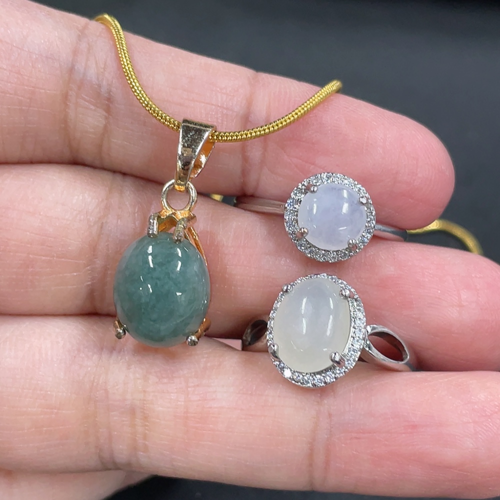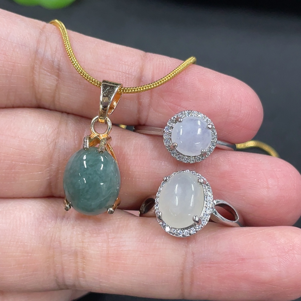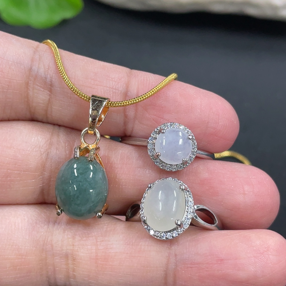 Jadeite Inlaid Ring + Pendant Non-Gold Inlaid Adjustable Size