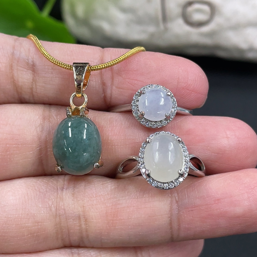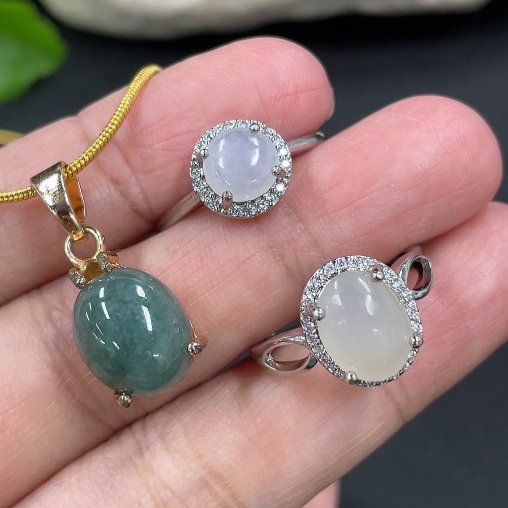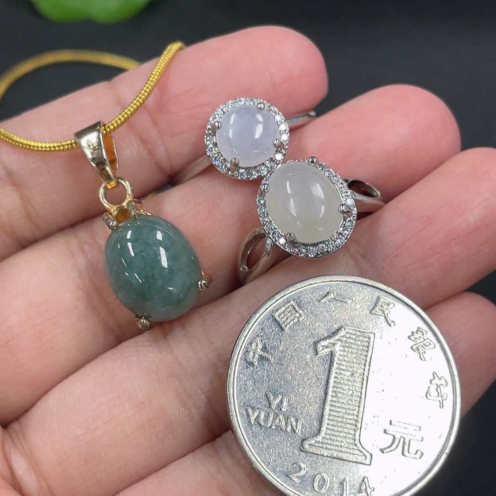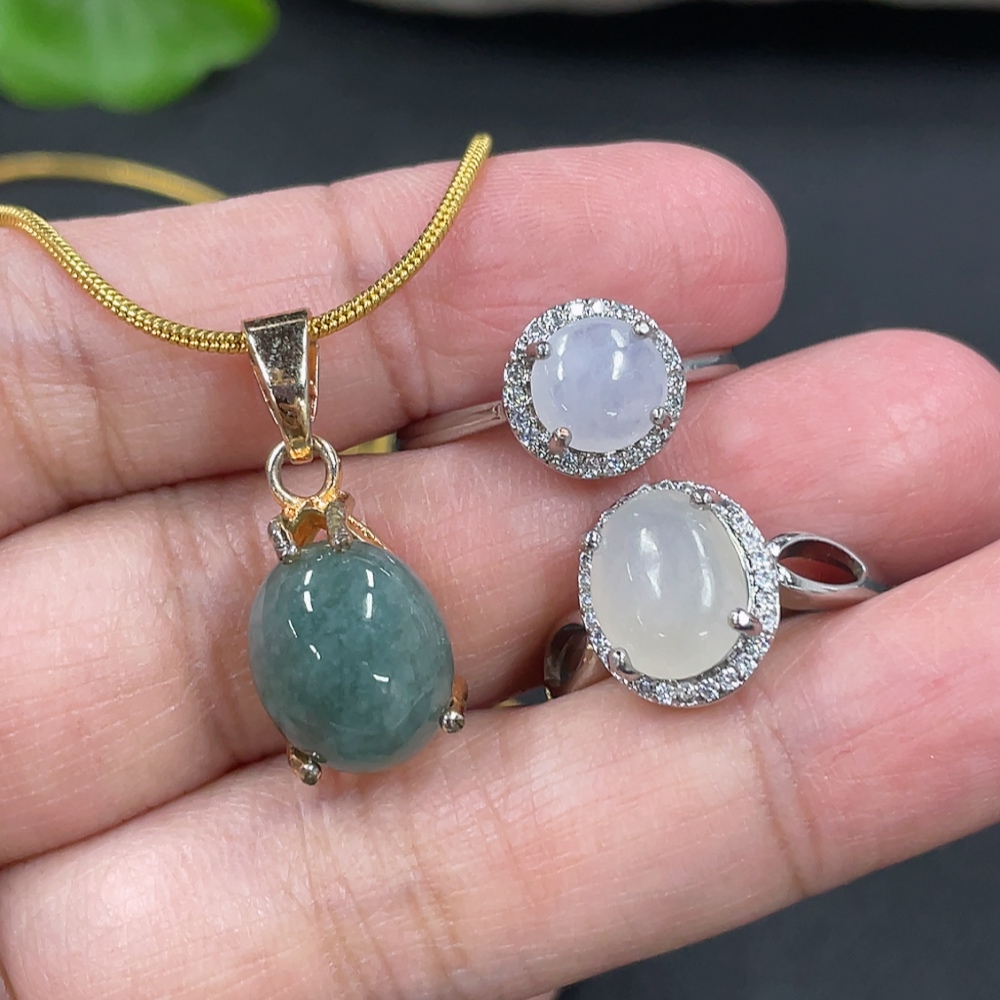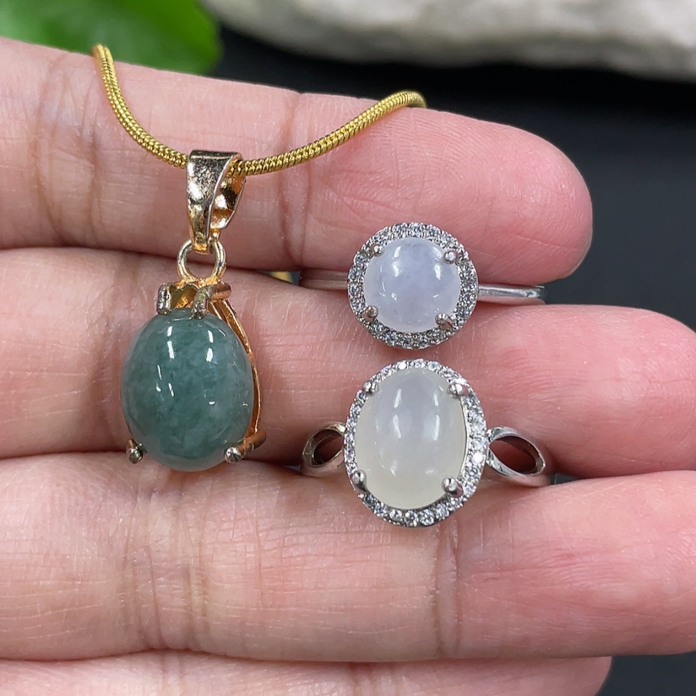 Jadeite Inlaid Ring + Pendant Non-Gold Inlaid Adjustable Size
