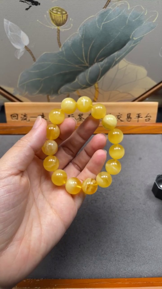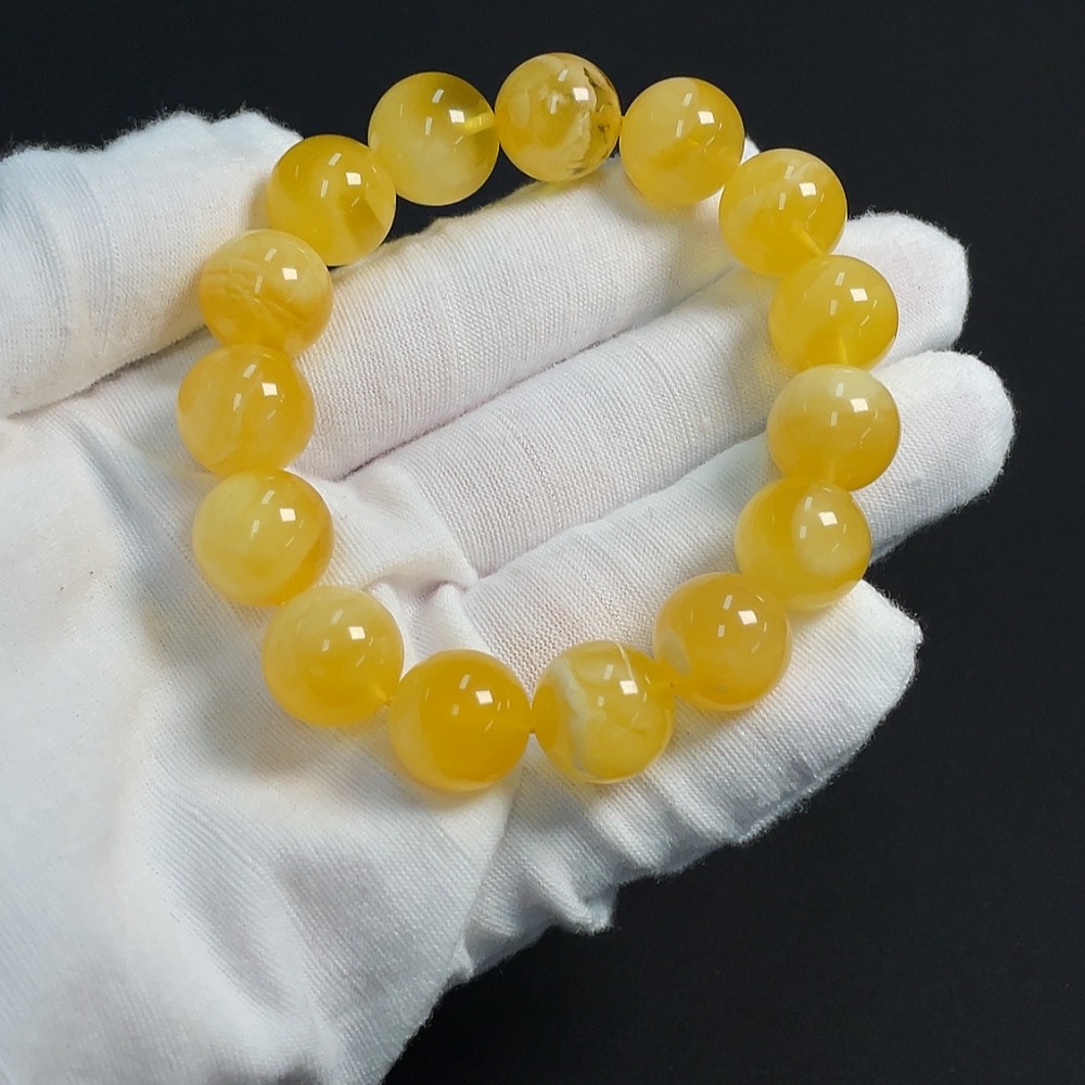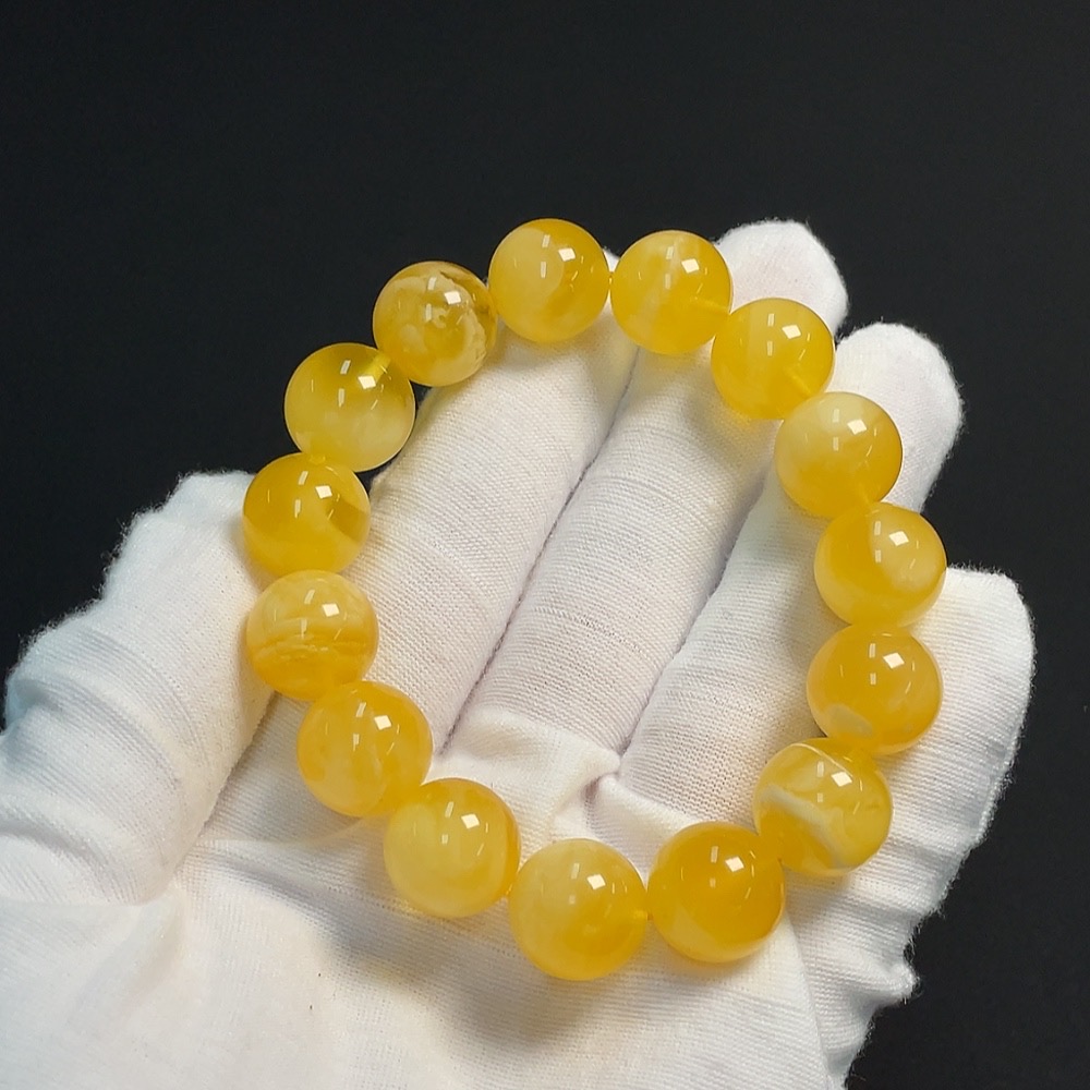 Amber Beeswax Beads Bracelet Approx.13.7mm Total Weight About 20.76g
