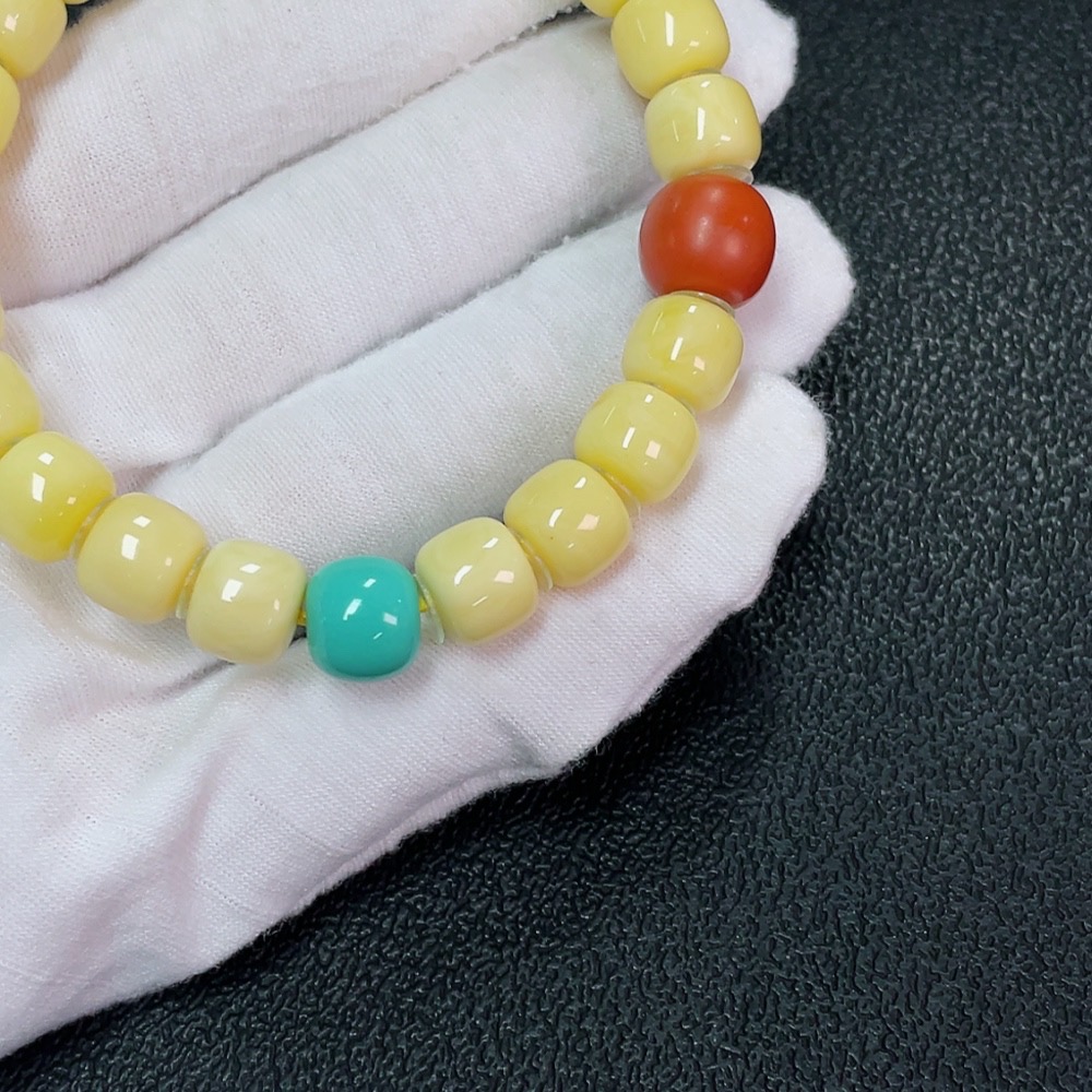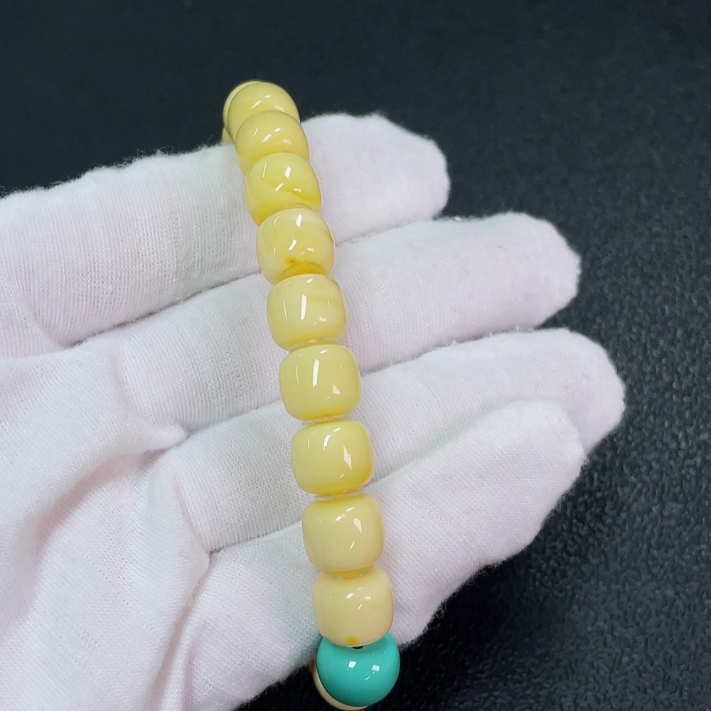 Amber Beeswax Bracelet, approx. 9.6mm, total weight approx. 16.72g, with southern red agate, non-natural stones considered