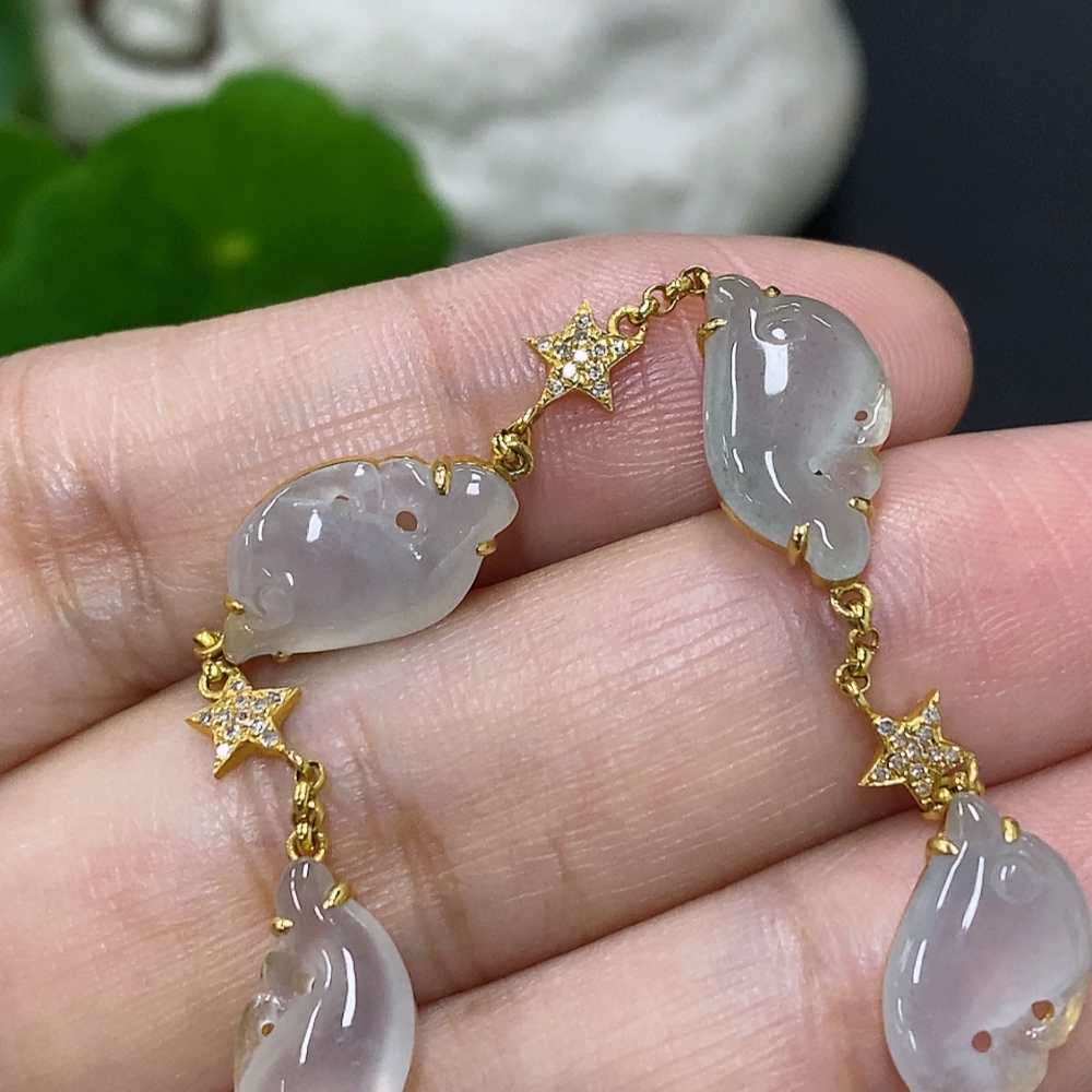 Jadeite inlaid bracelet 18K gold Total weight approx. 5.9g (with diamond accents)
