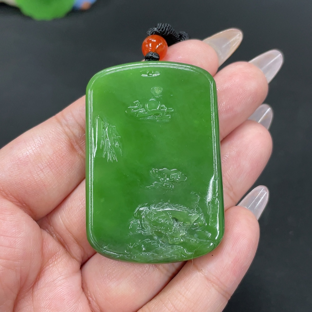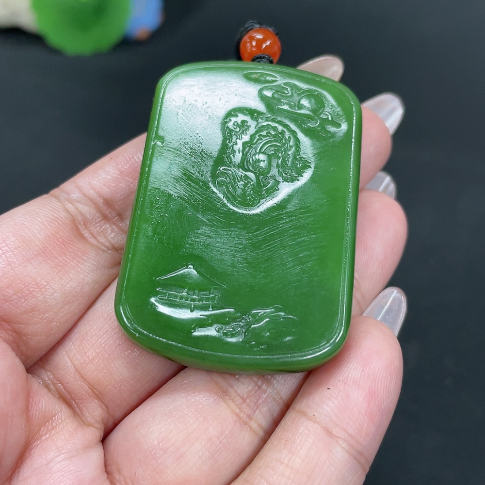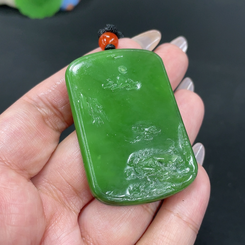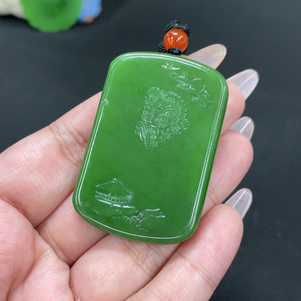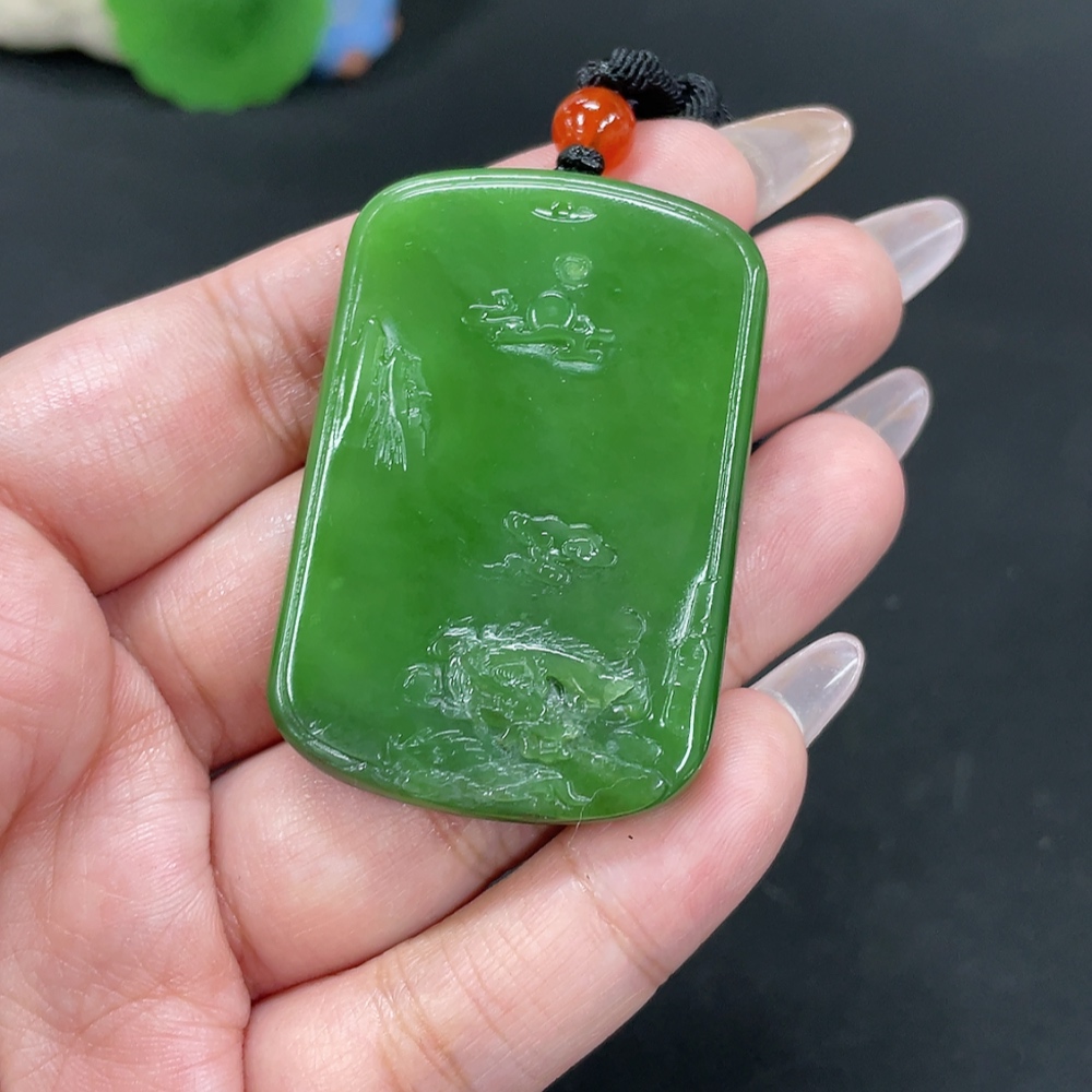 Hetian Jade Jasper Pendant Landscape Total weight approx. [including rope] 36.9g
