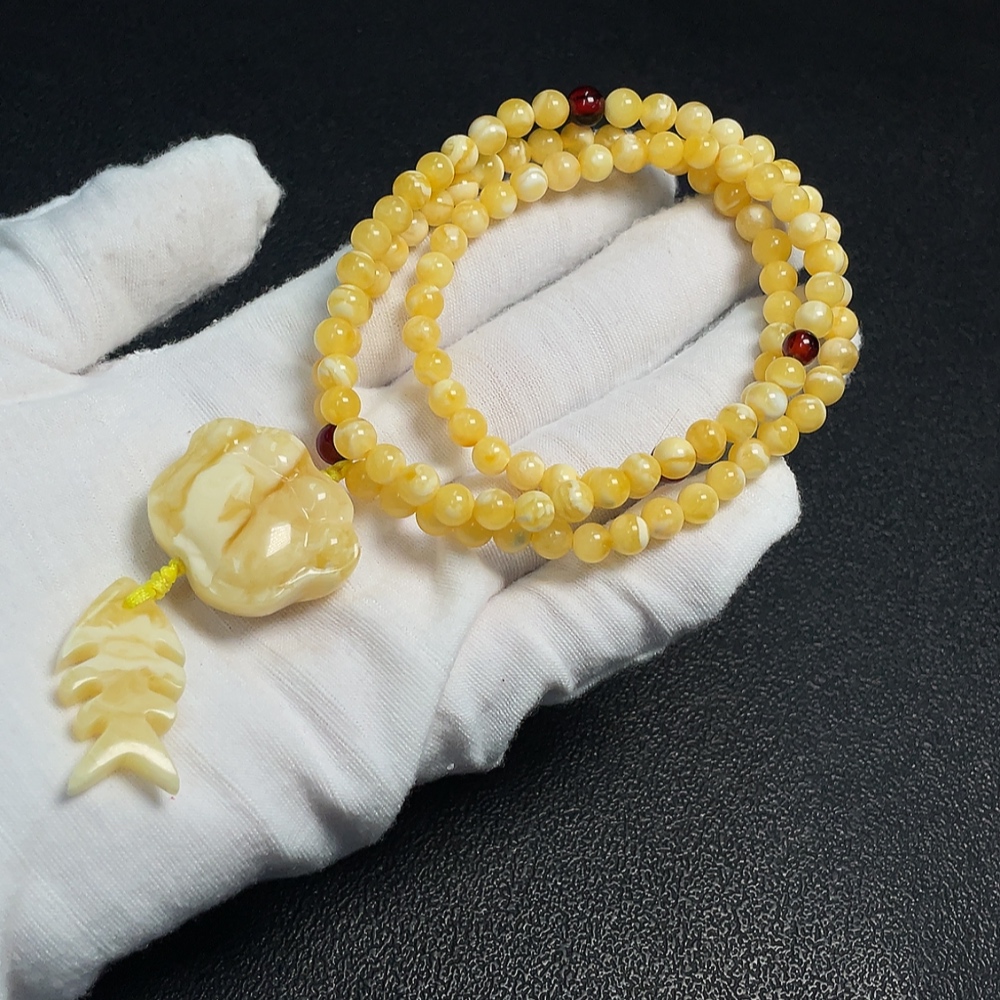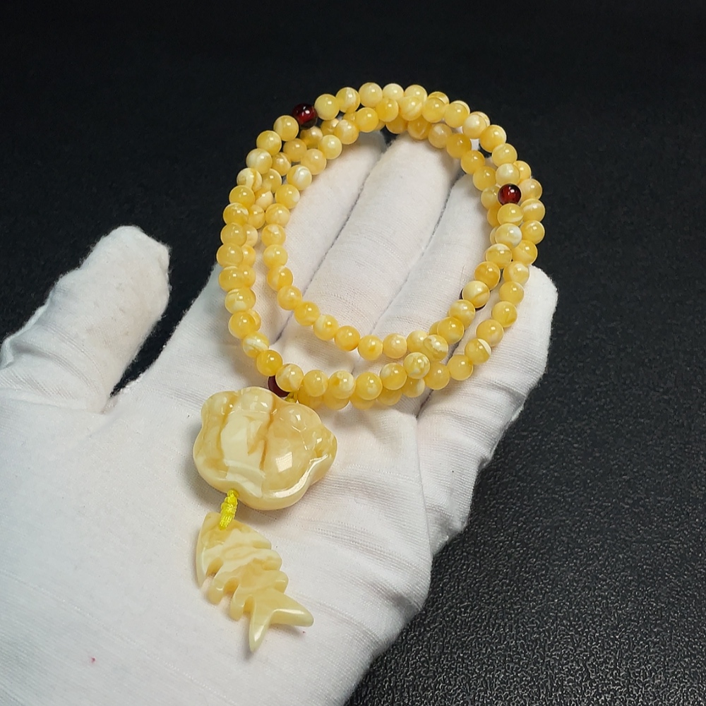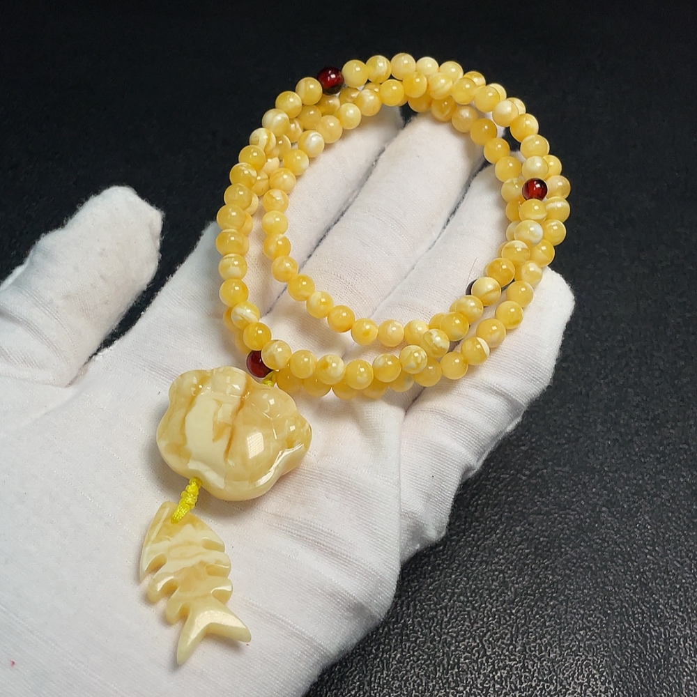 Amber Beeswax Beaded Necklace Total Weight Approx. 18.20g Size 5.6-28.3mm