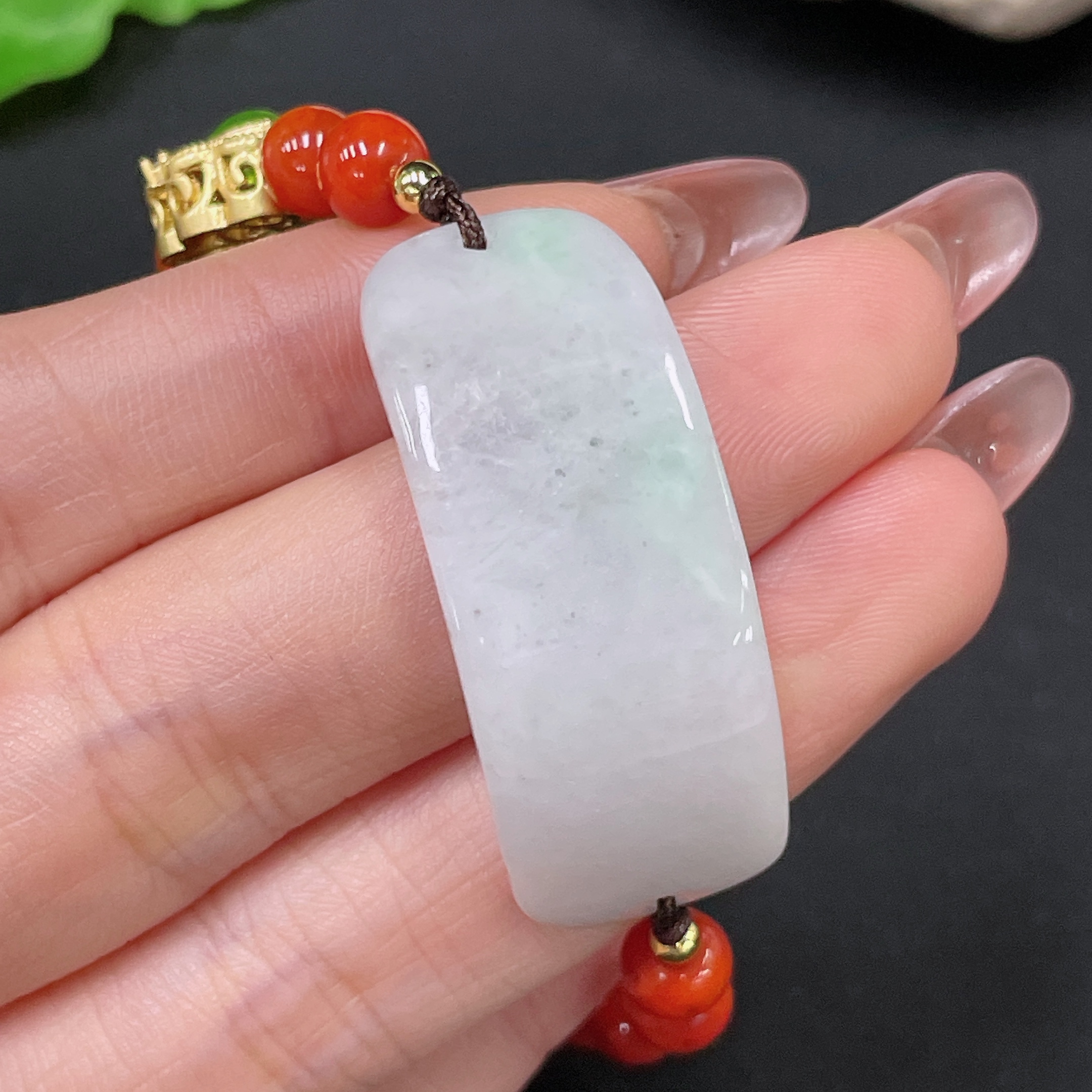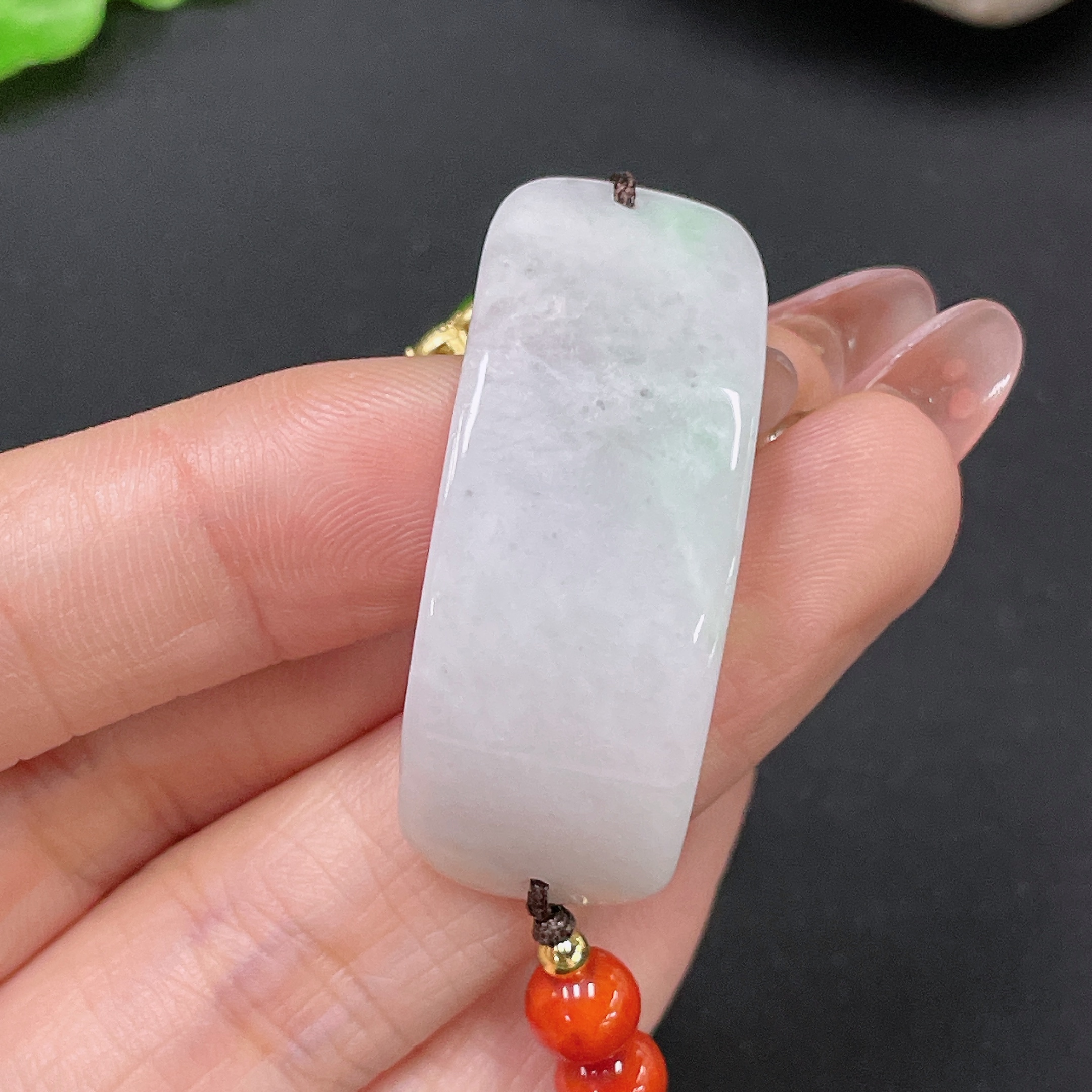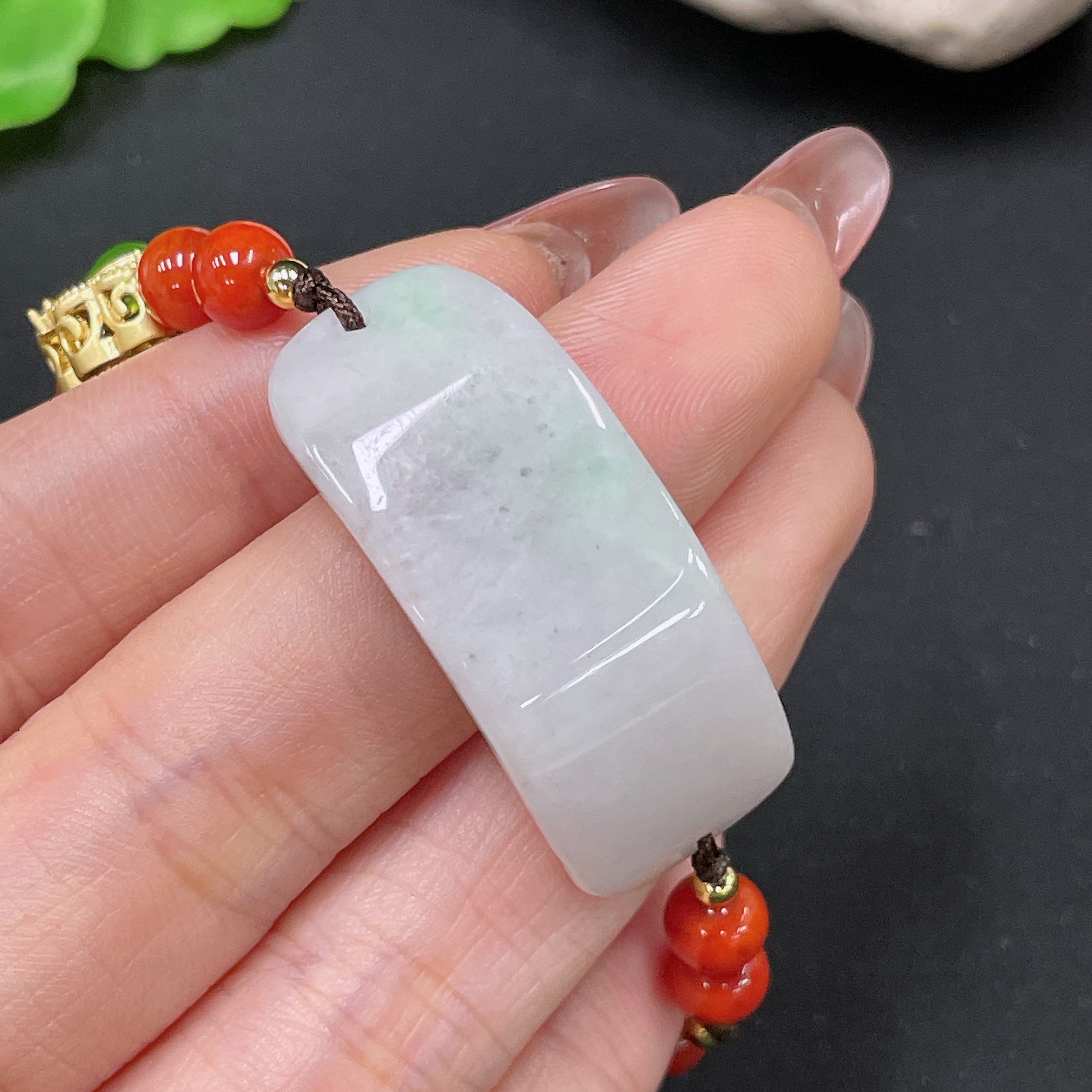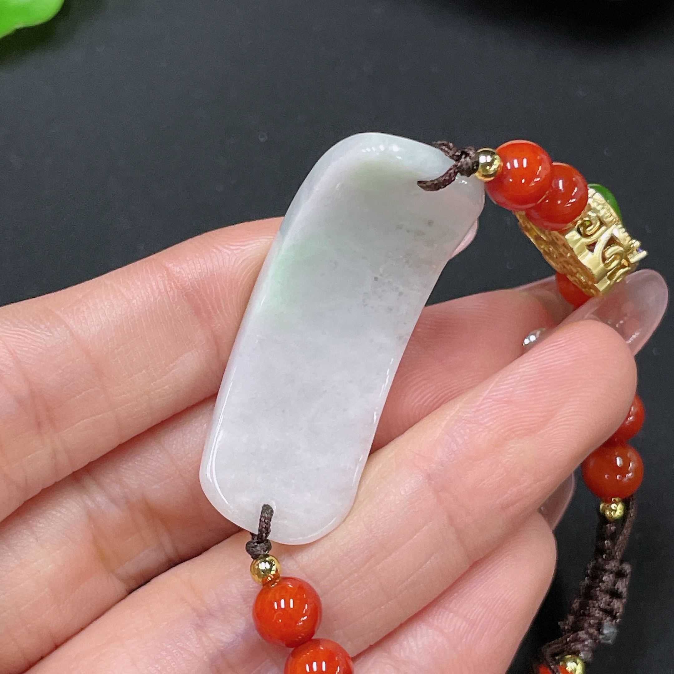 Jadeite hand plaque with non-A grade beads, total weight approximately 14.87g