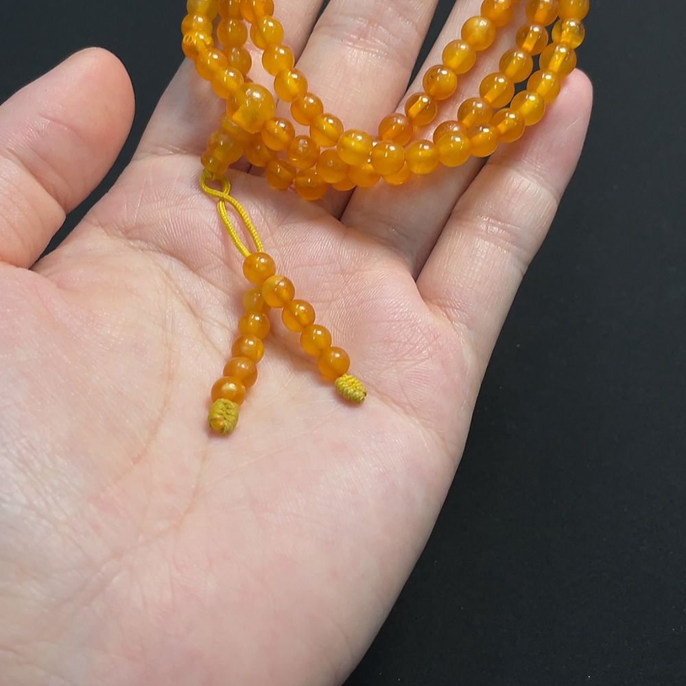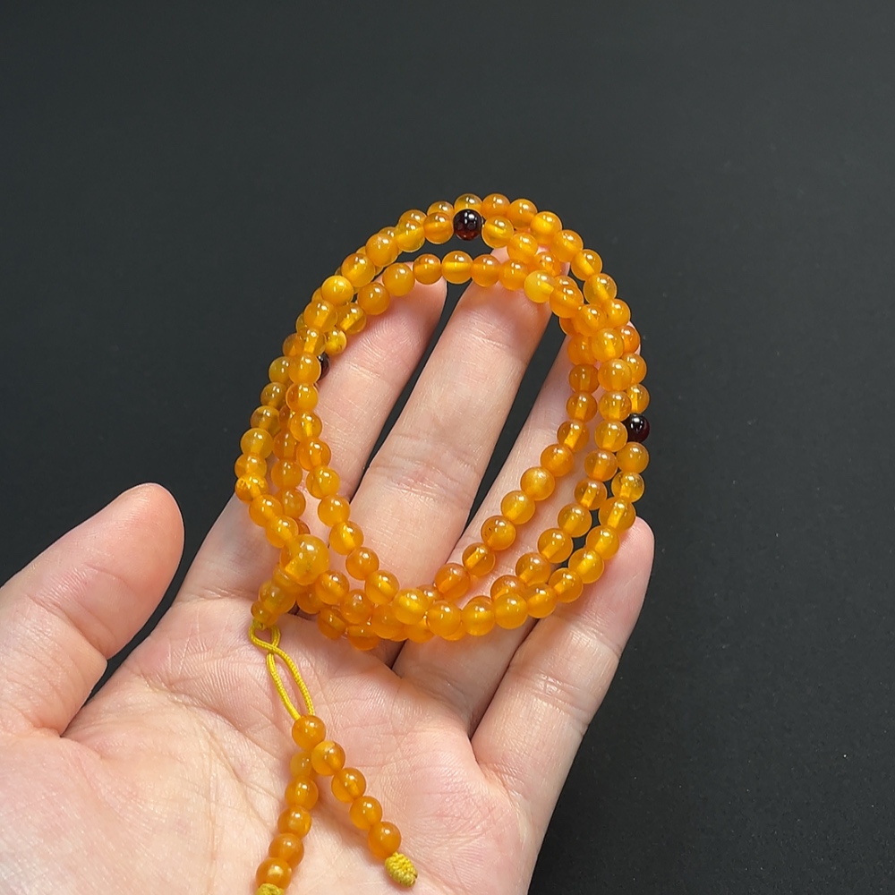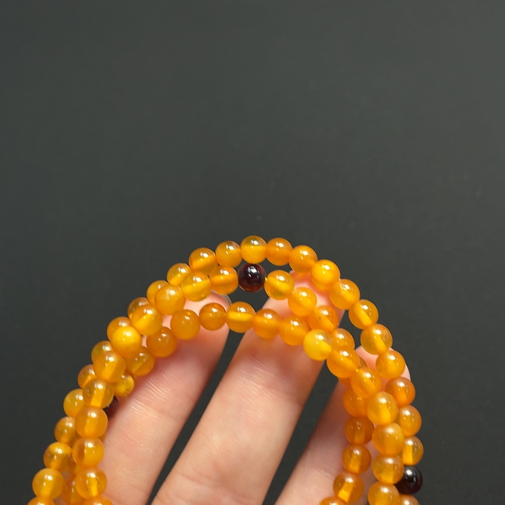 Amber Beeswax Bead Strand with Partial Visible Repairs, Colorless Coating, Non-Natural Gemstone Considerations, Total Weight Approximately 9.7g, Approximately 5.2mm in Size