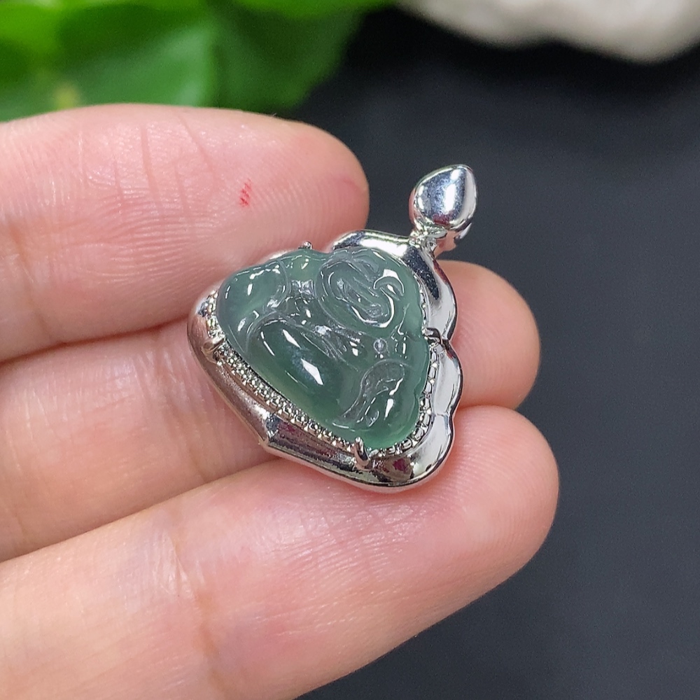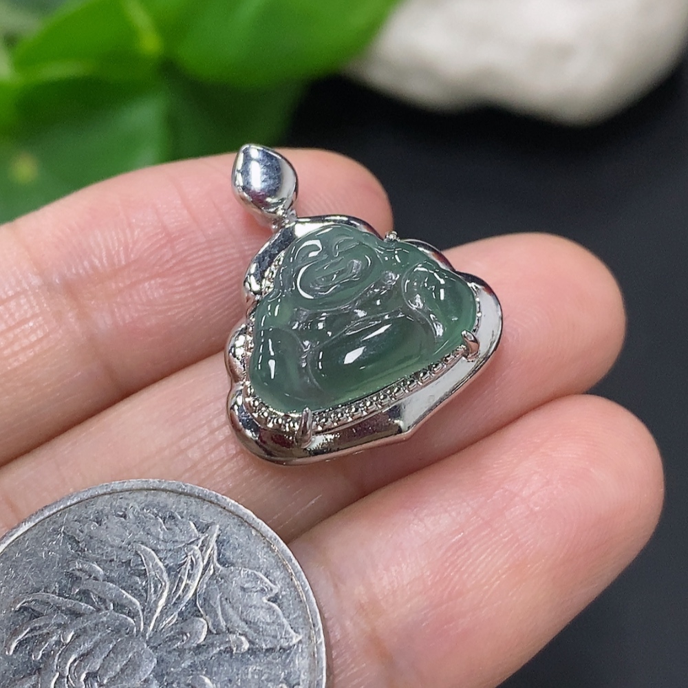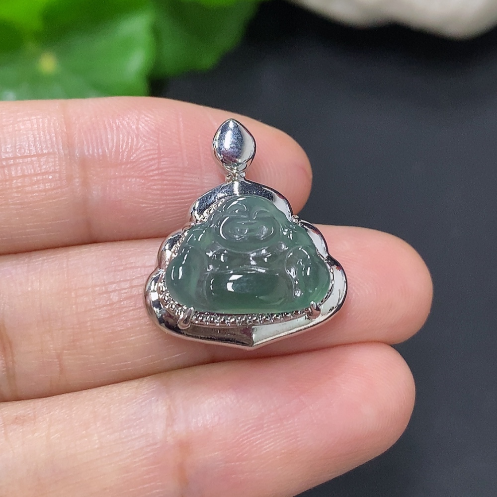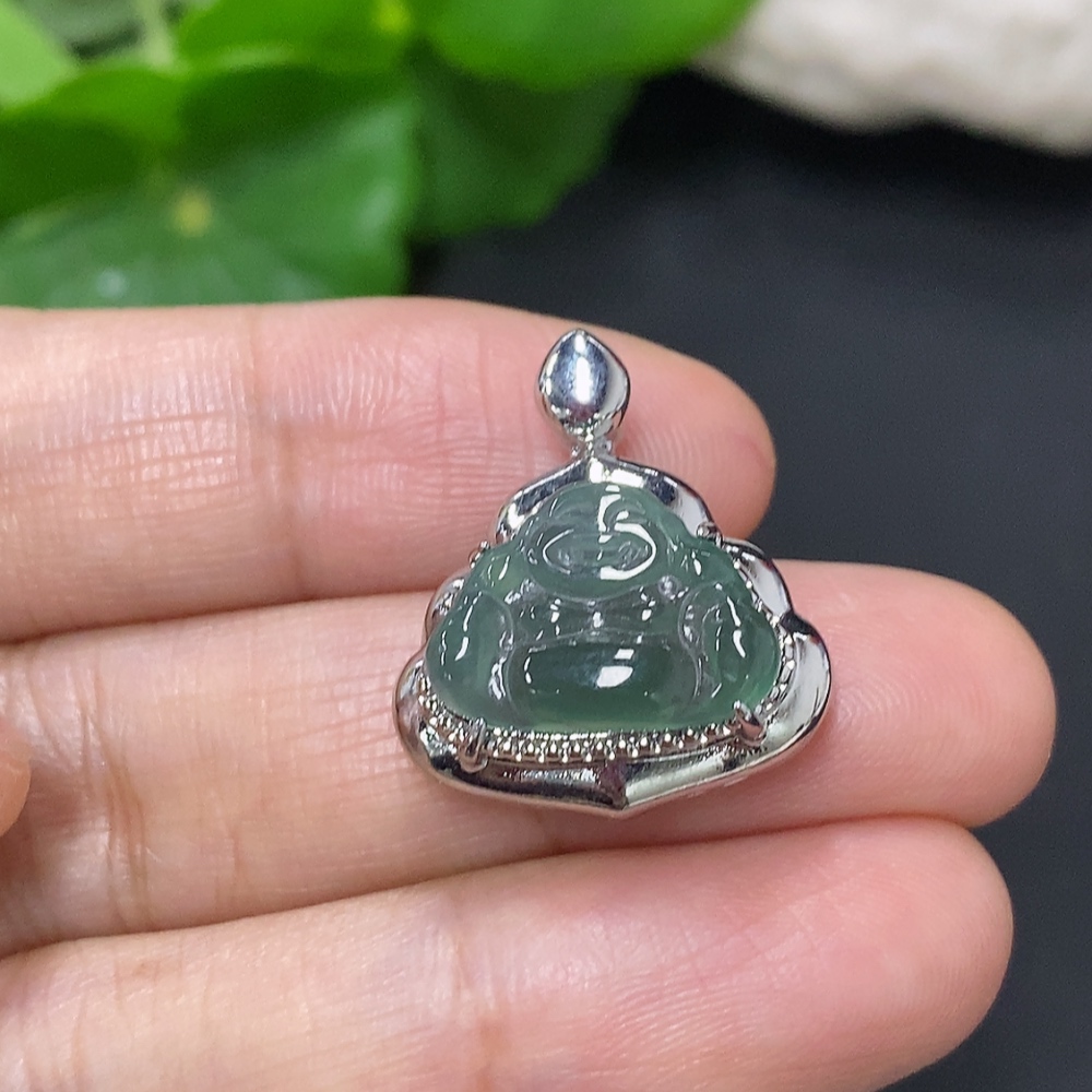 Jadeite Buddha Pendant with Inlay Setting, Non-Gold Inlay, Total Weight Approximately 2.9g
