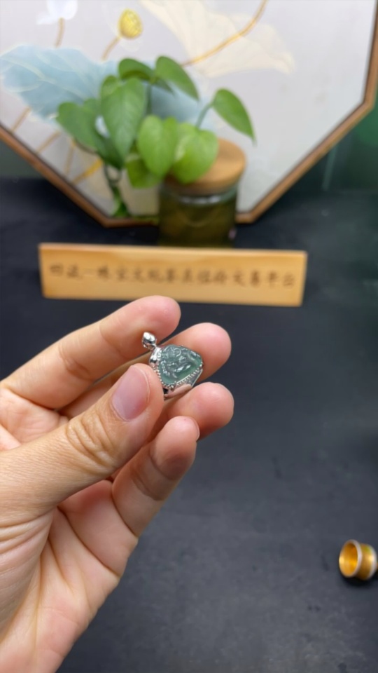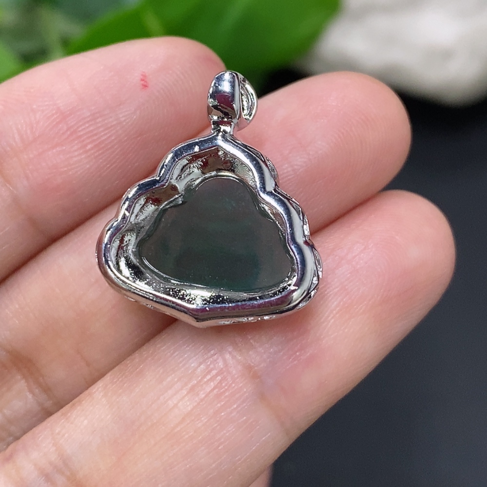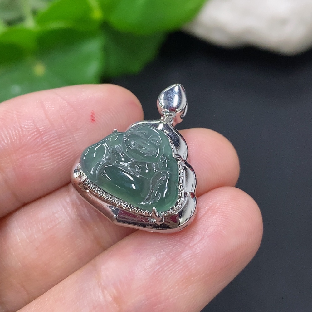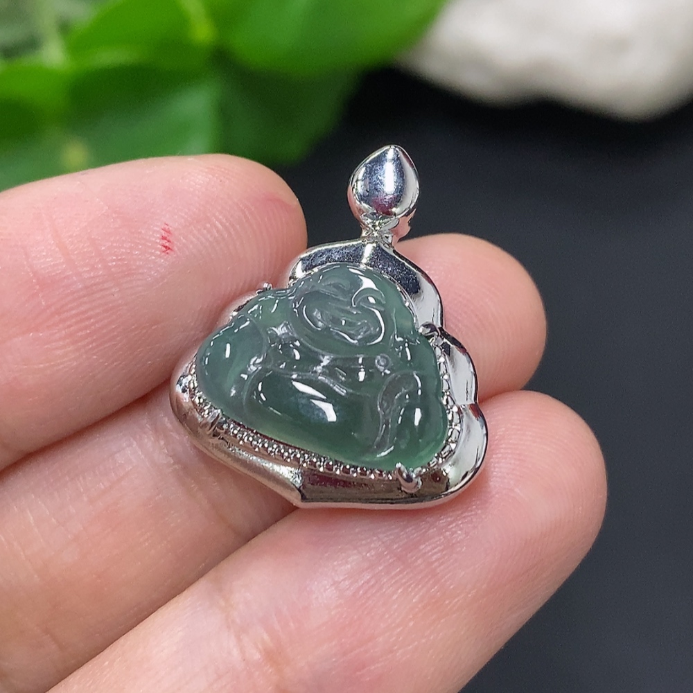 Jadeite Buddha Pendant with Inlay Setting, Non-Gold Inlay, Total Weight Approximately 2.9g