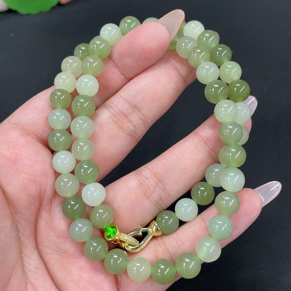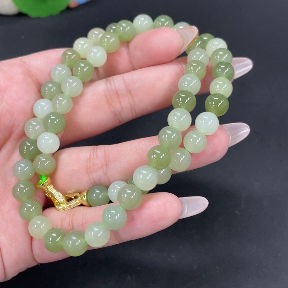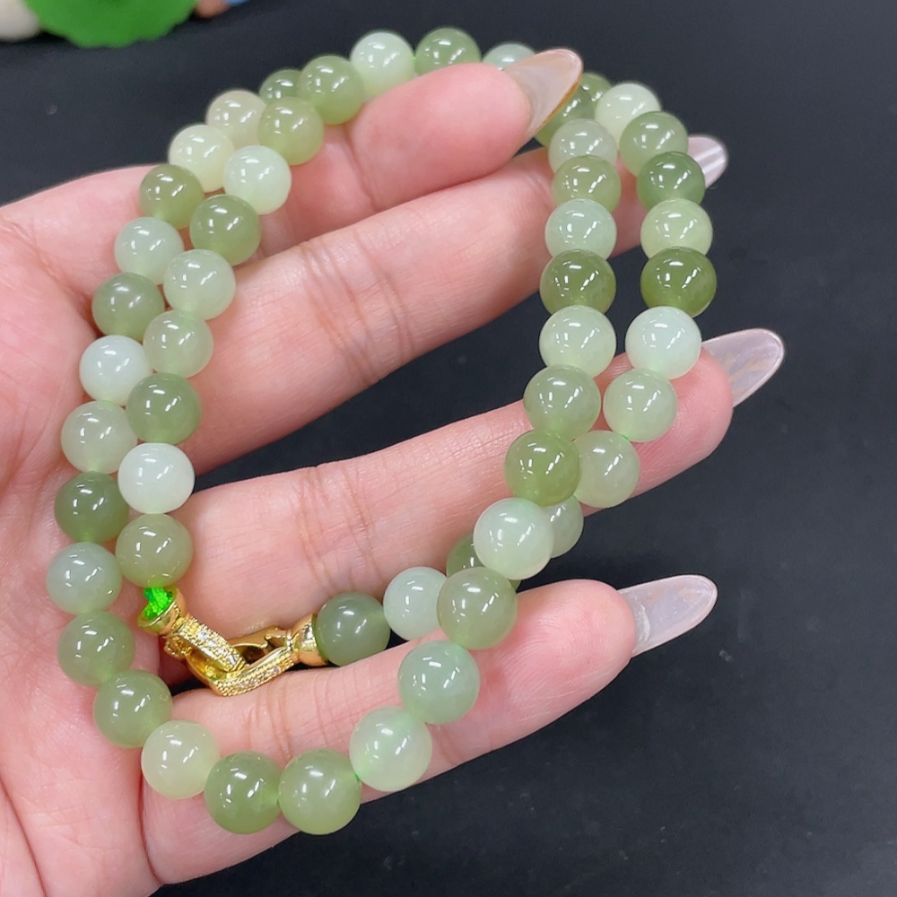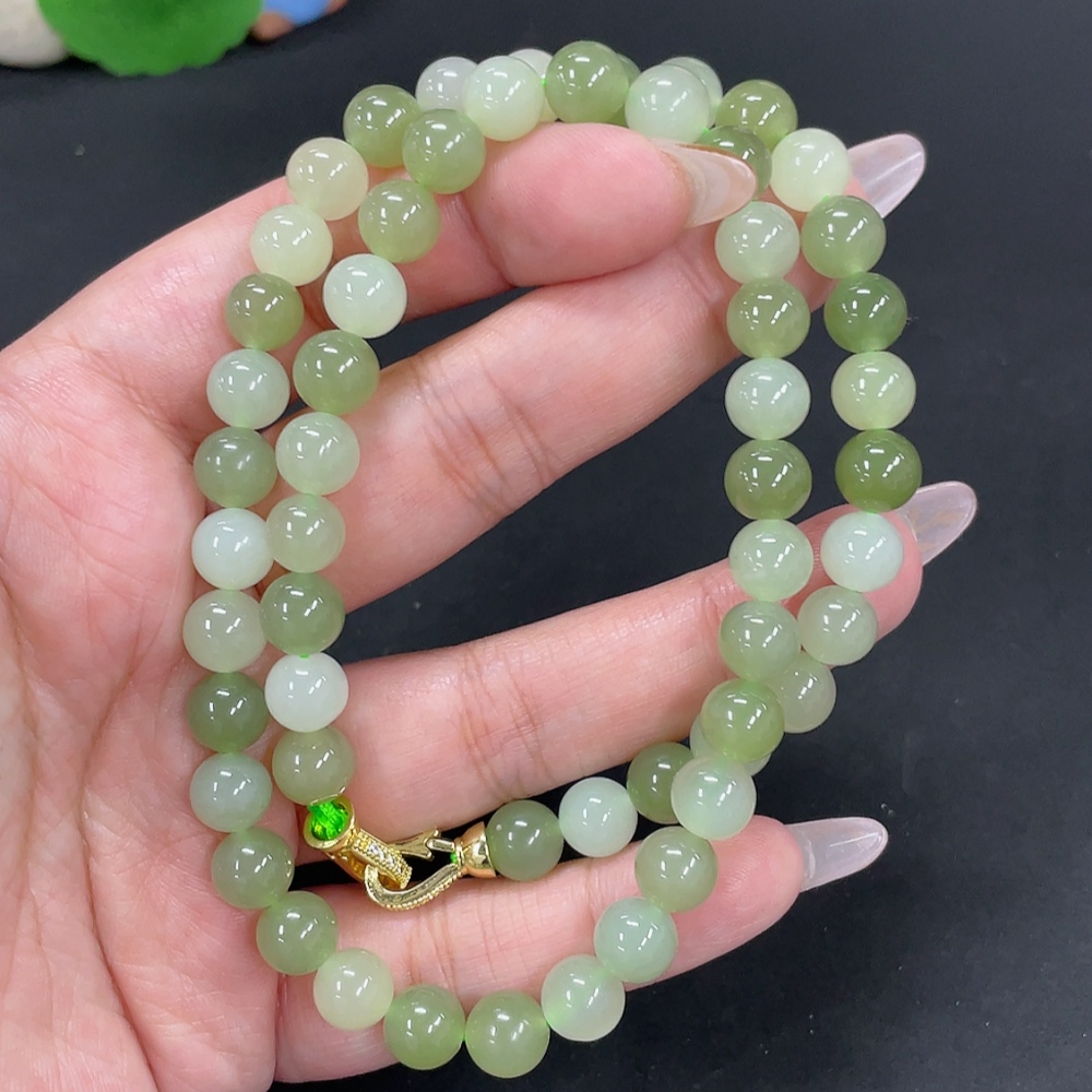 Hetian Jade Bead Necklace Approx. 7.6mm Non-Gold-Inlaid Total Weight About 45.3g