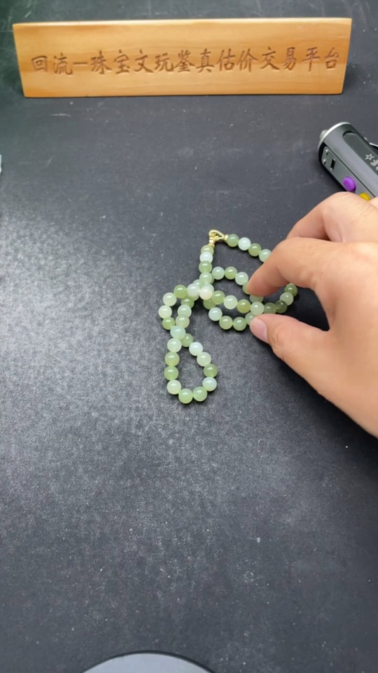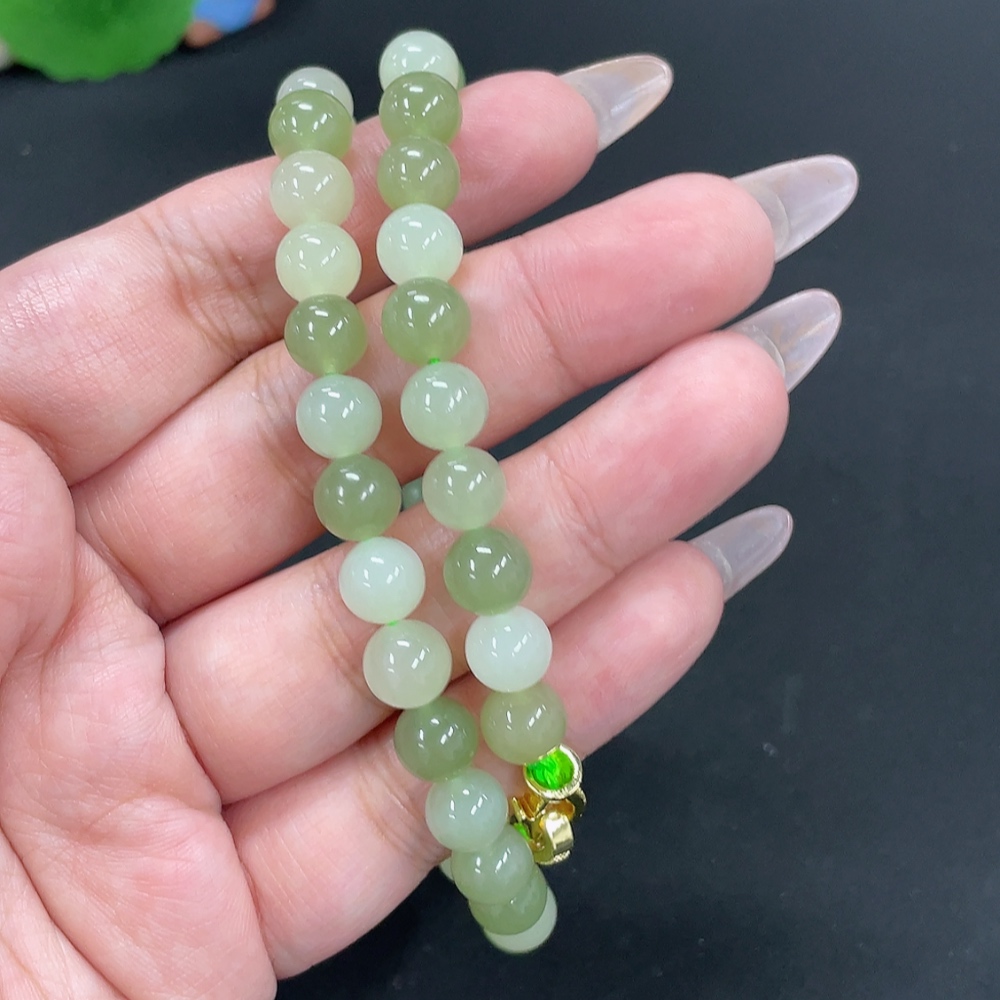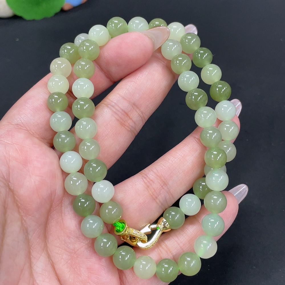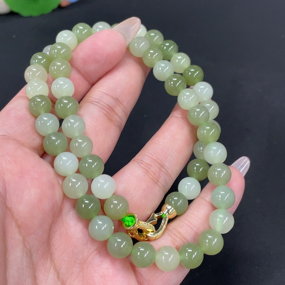 Hetian Jade Bead Necklace Approx. 7.6mm Non-Gold-Inlaid Total Weight About 45.3g