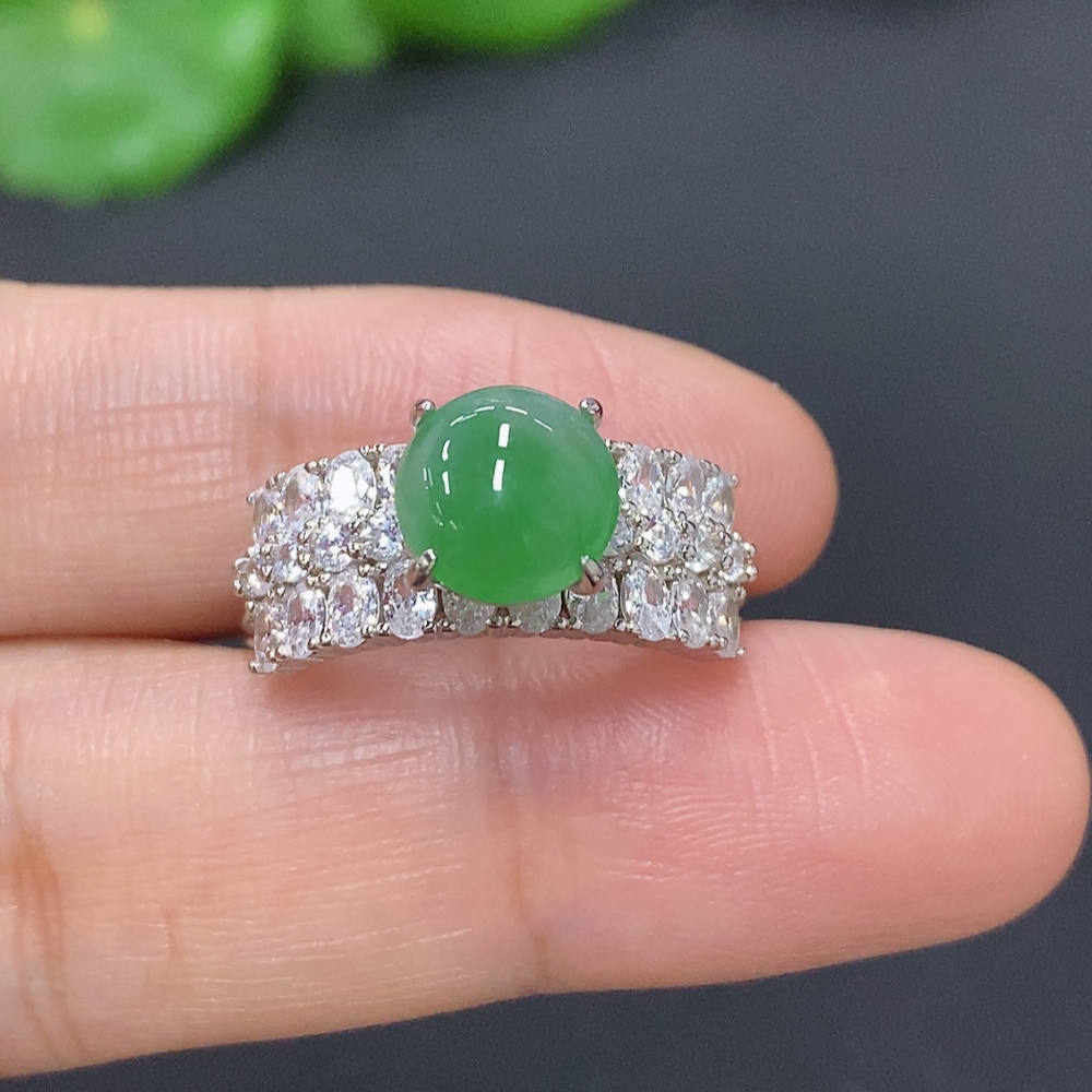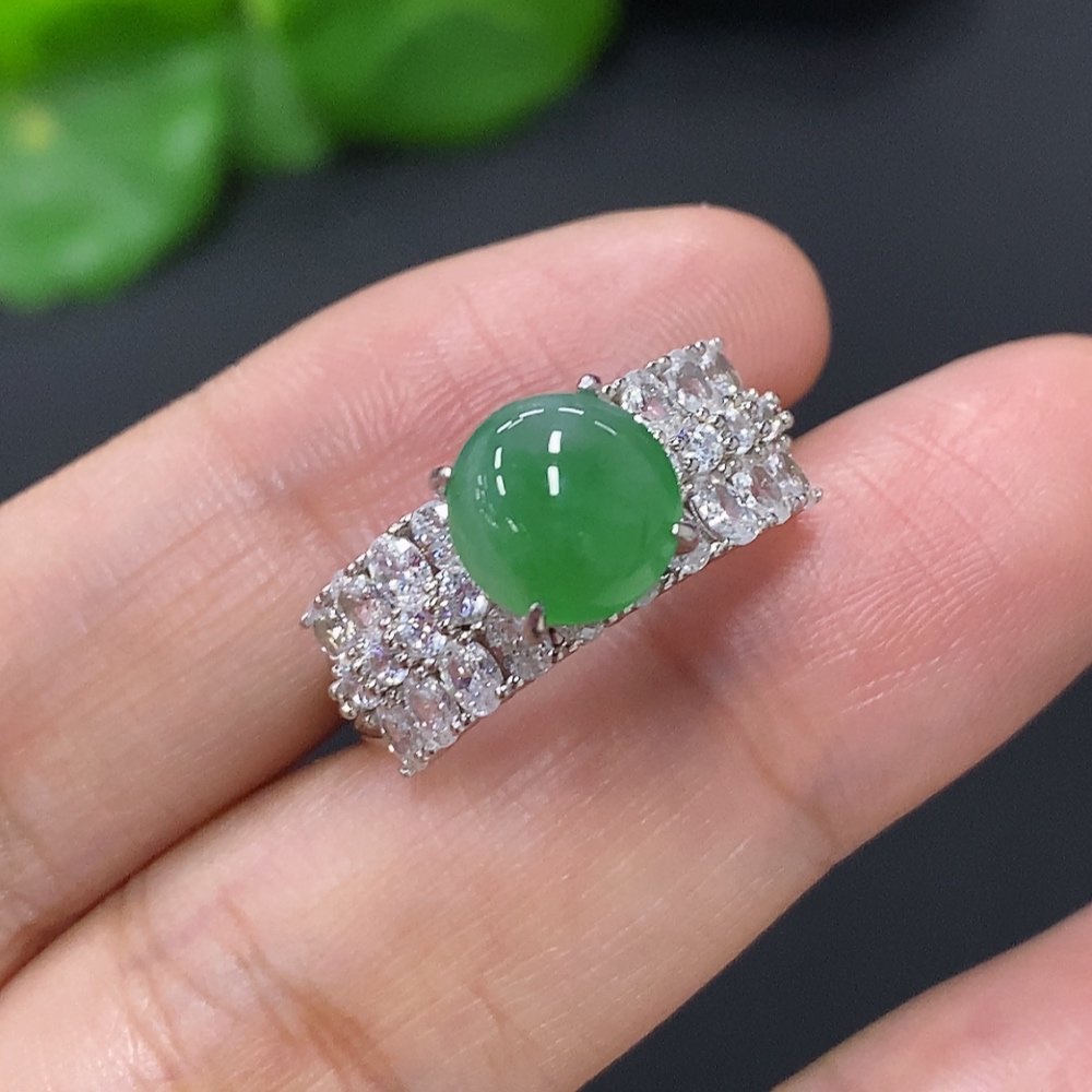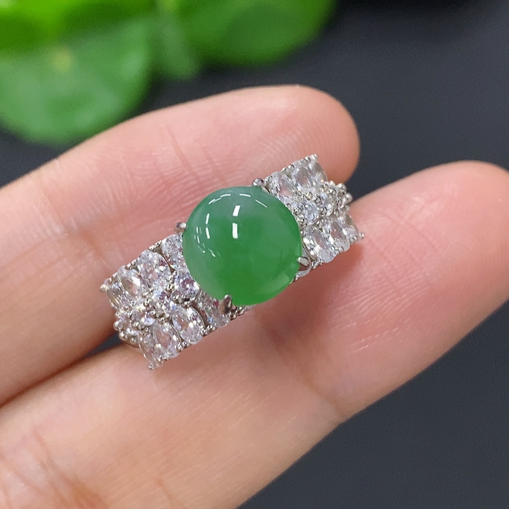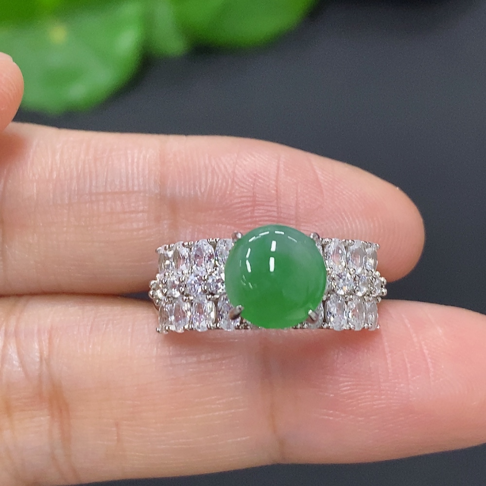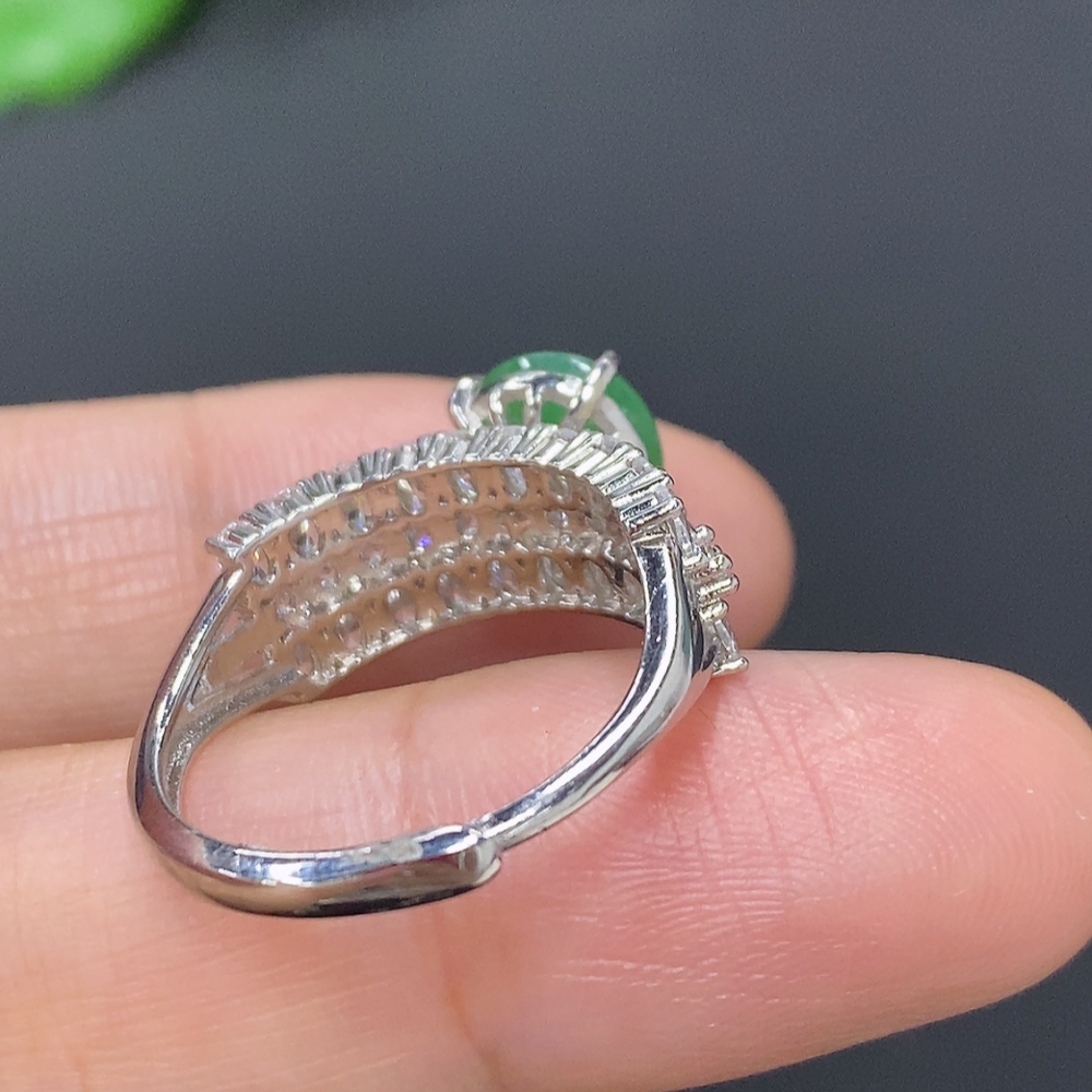 Jadeite Cabochon Inlaid Ring Adjustable Size Non-Gold Inlay Total Weight Approx. 3.7g