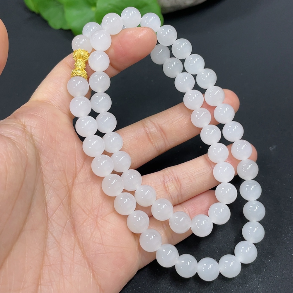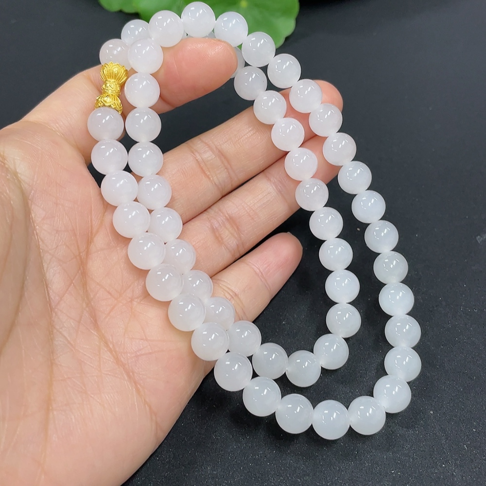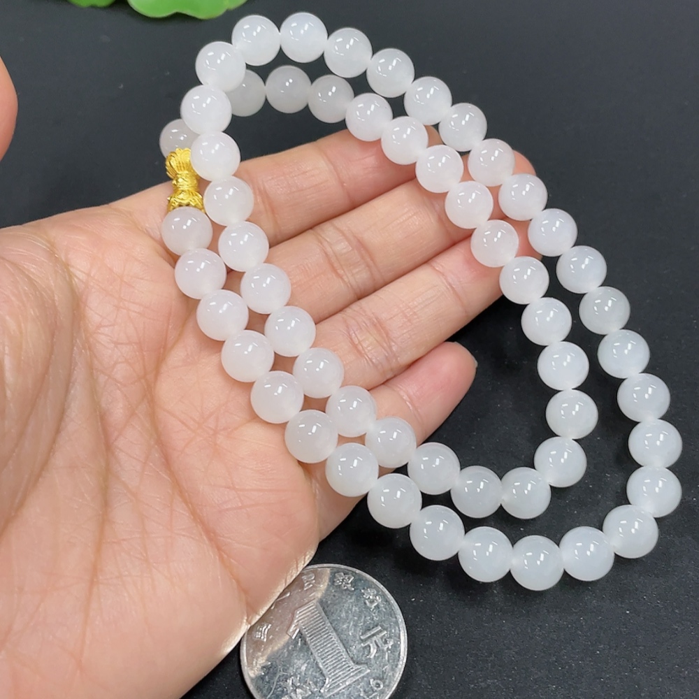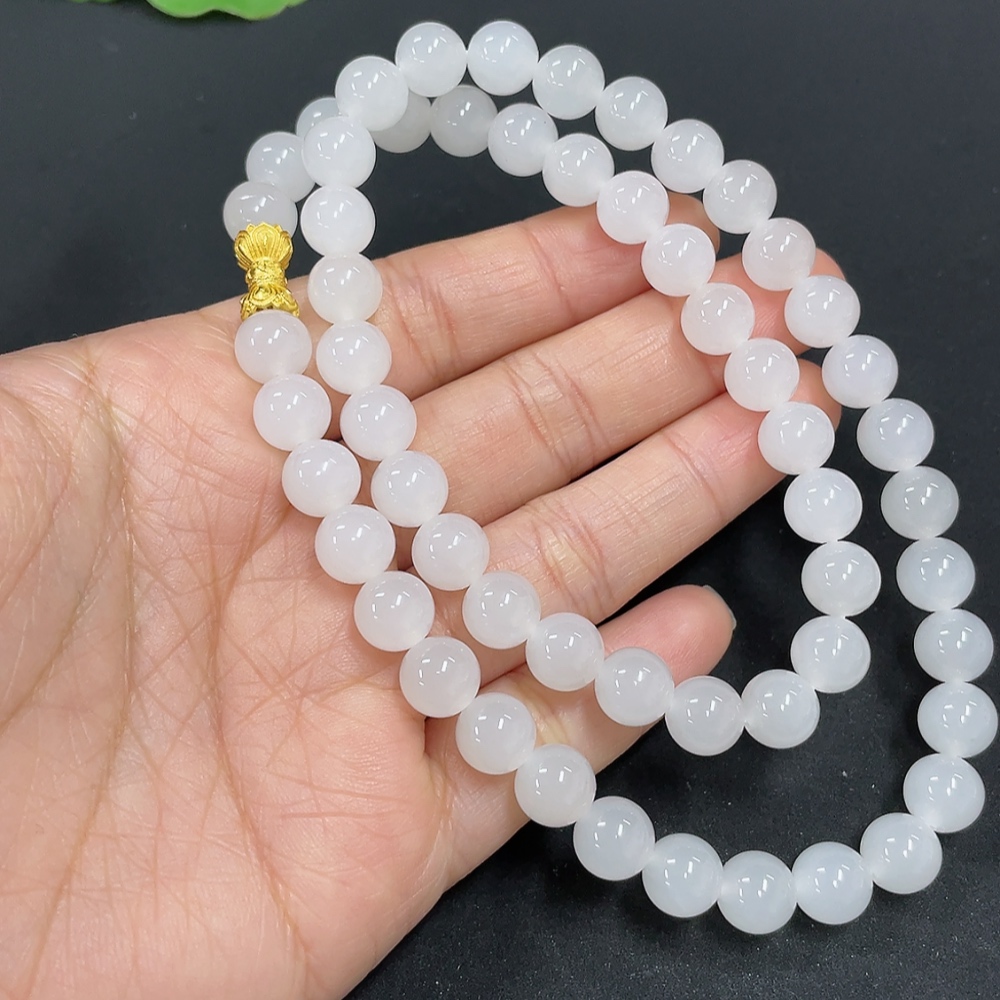 Hetian Jade Bead Necklace, approx. 7.8mm, non-gold inlaid, total weight approx. 44.6g