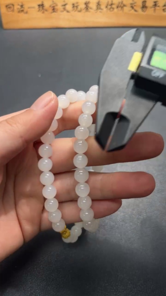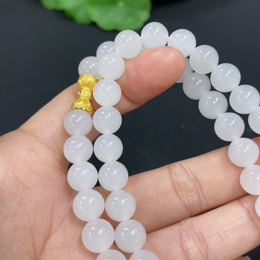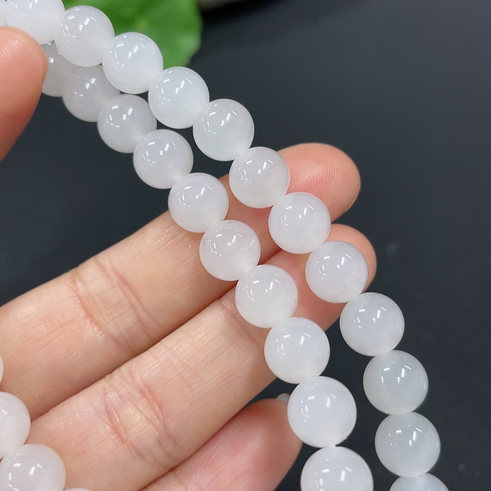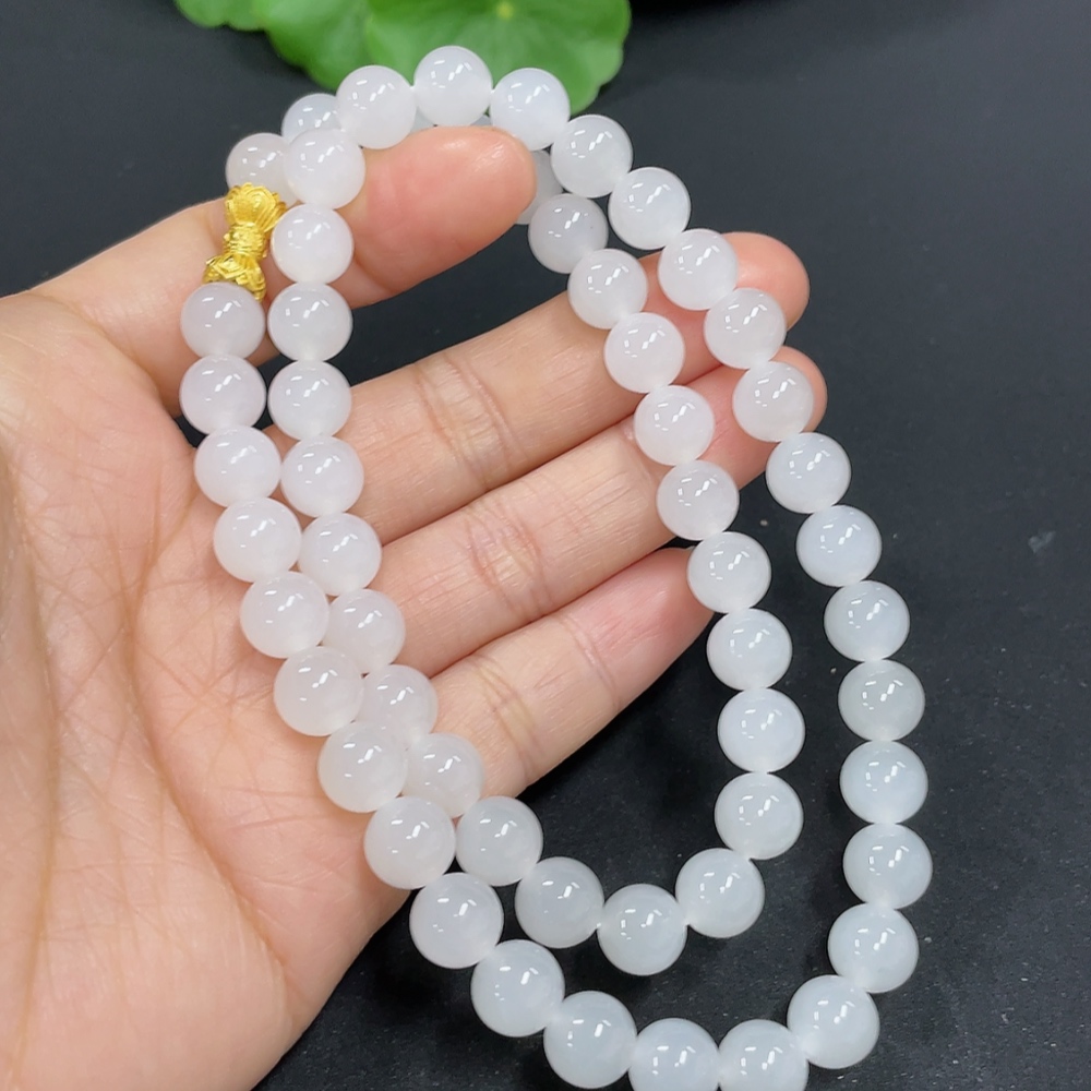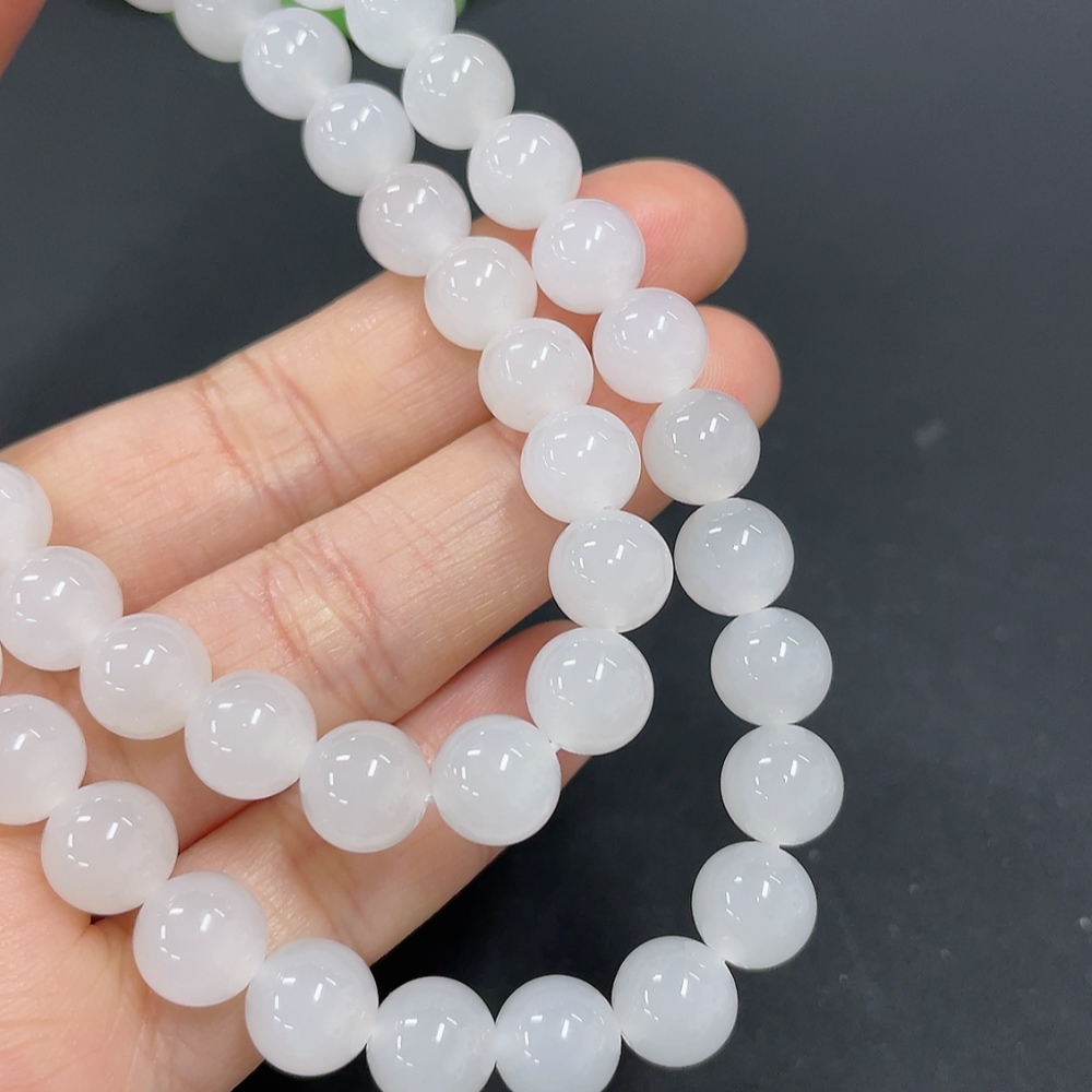 Hetian Jade Bead Necklace, approx. 7.8mm, non-gold inlaid, total weight approx. 44.6g