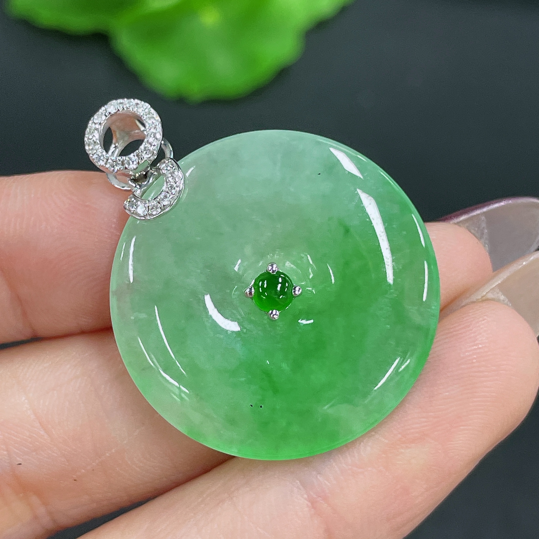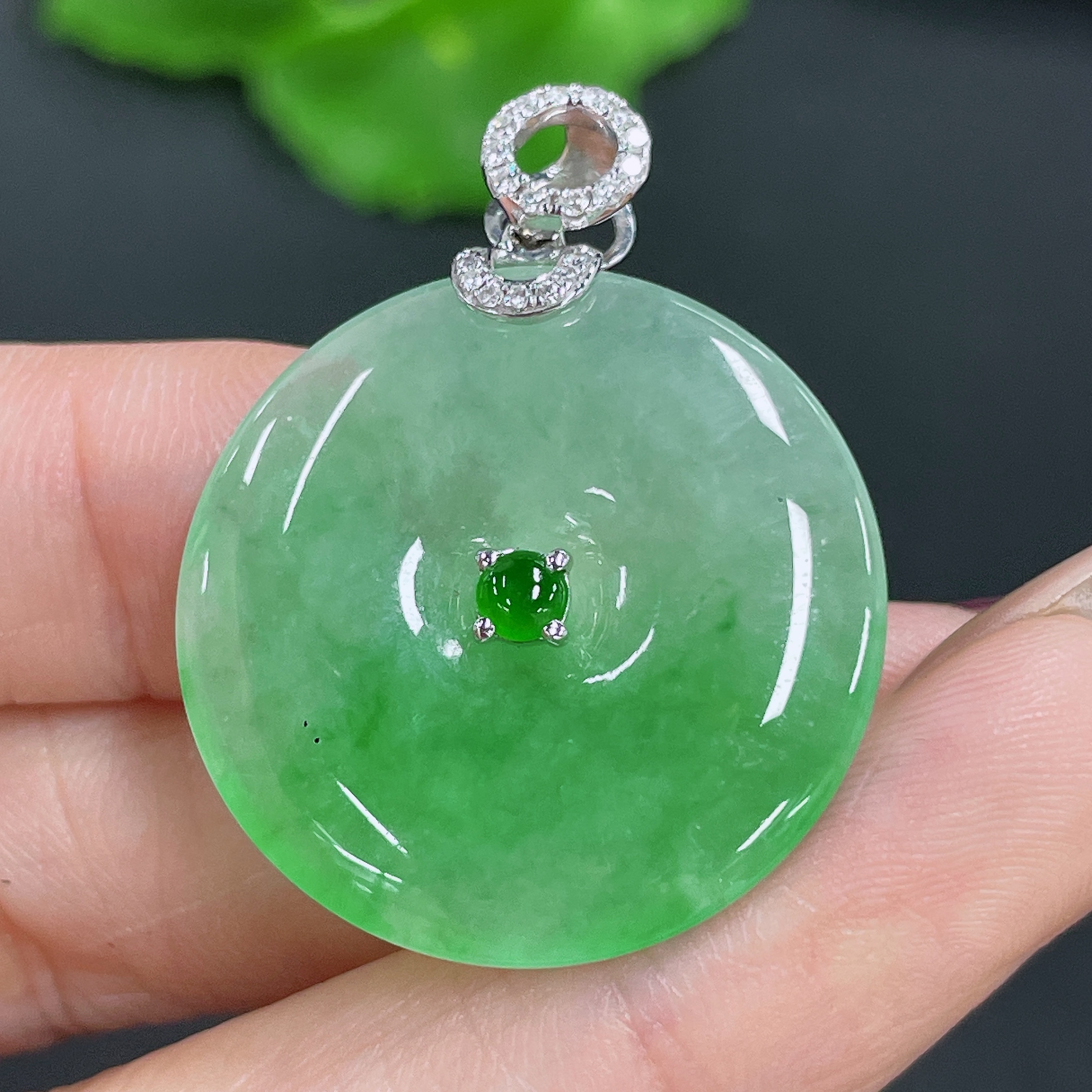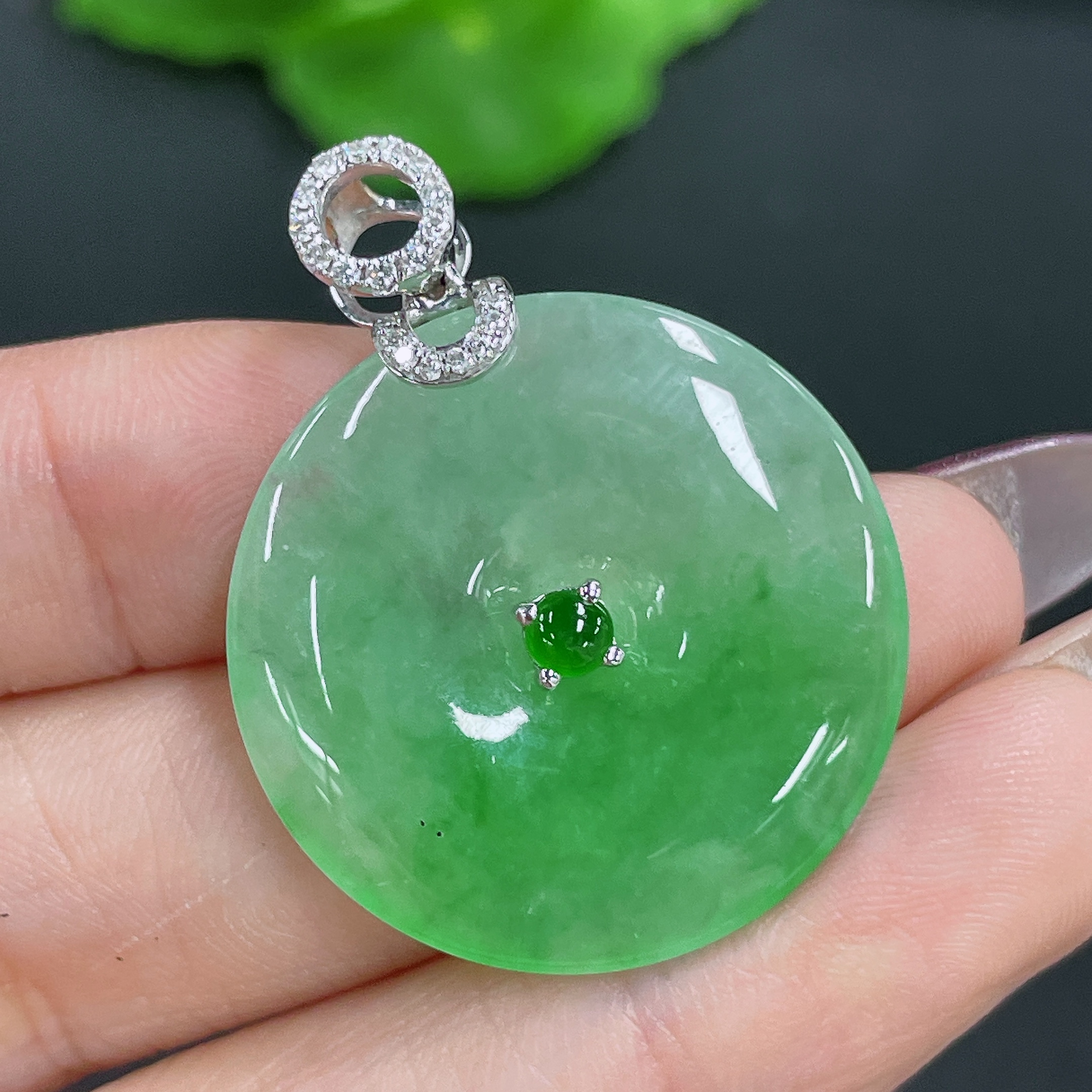 Jadeite Pendant Peace Knot 18K Gold Inlaid with Diamonds Total Weight Approx. 8.13g