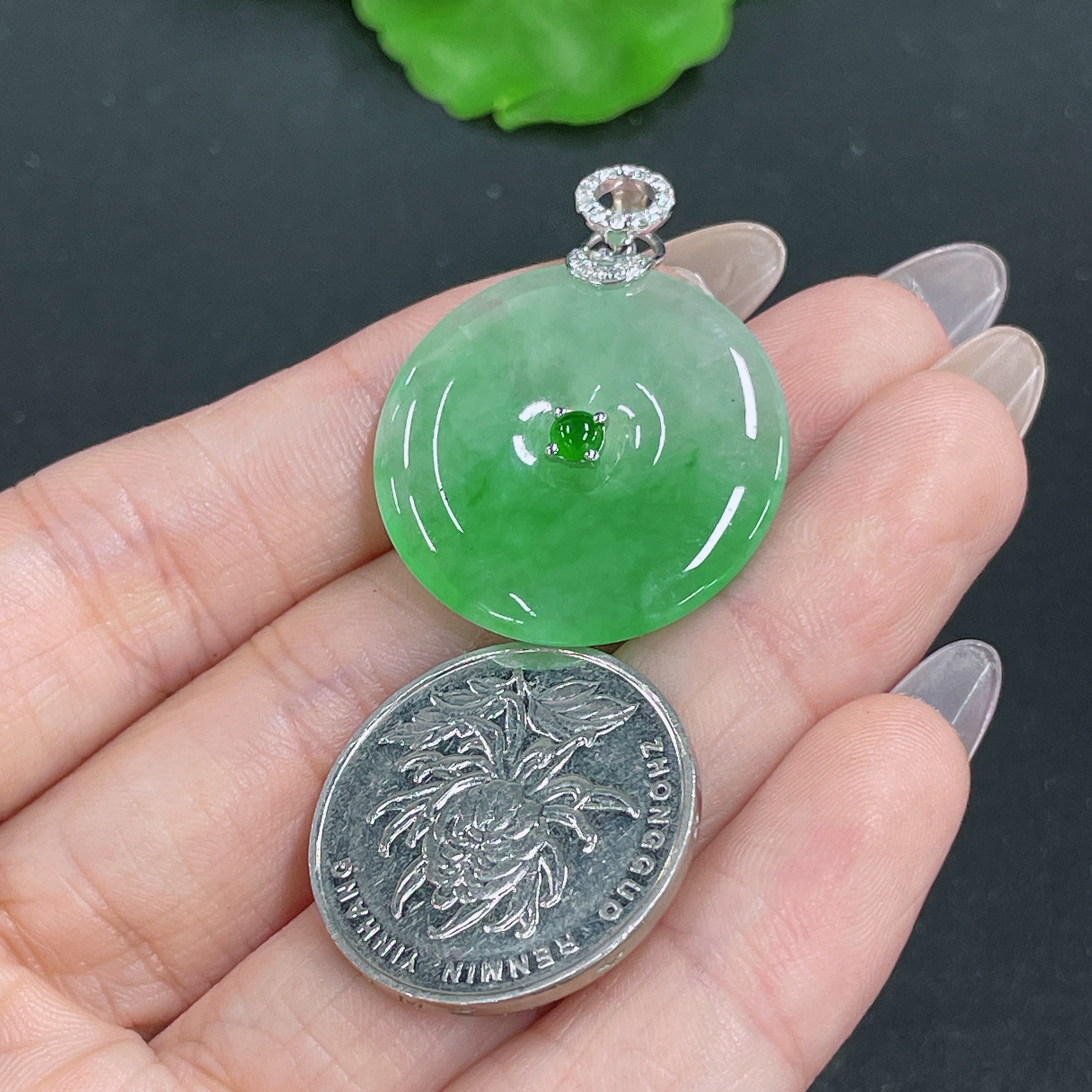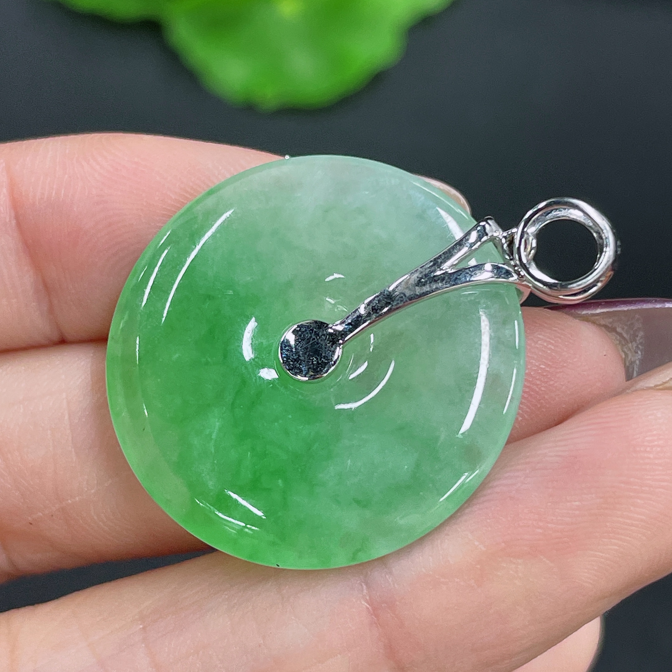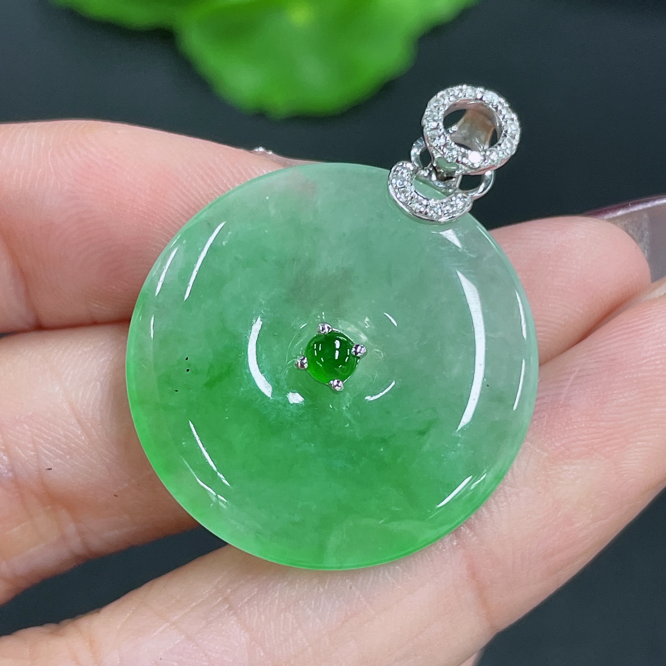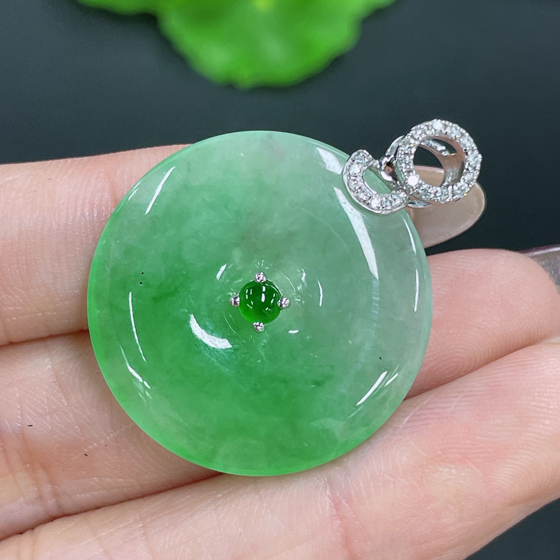 Jadeite Pendant Peace Knot 18K Gold Inlaid with Diamonds Total Weight Approx. 8.13g