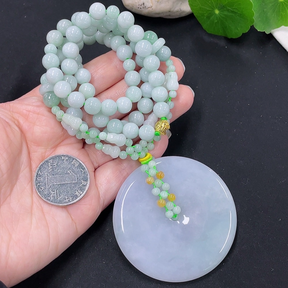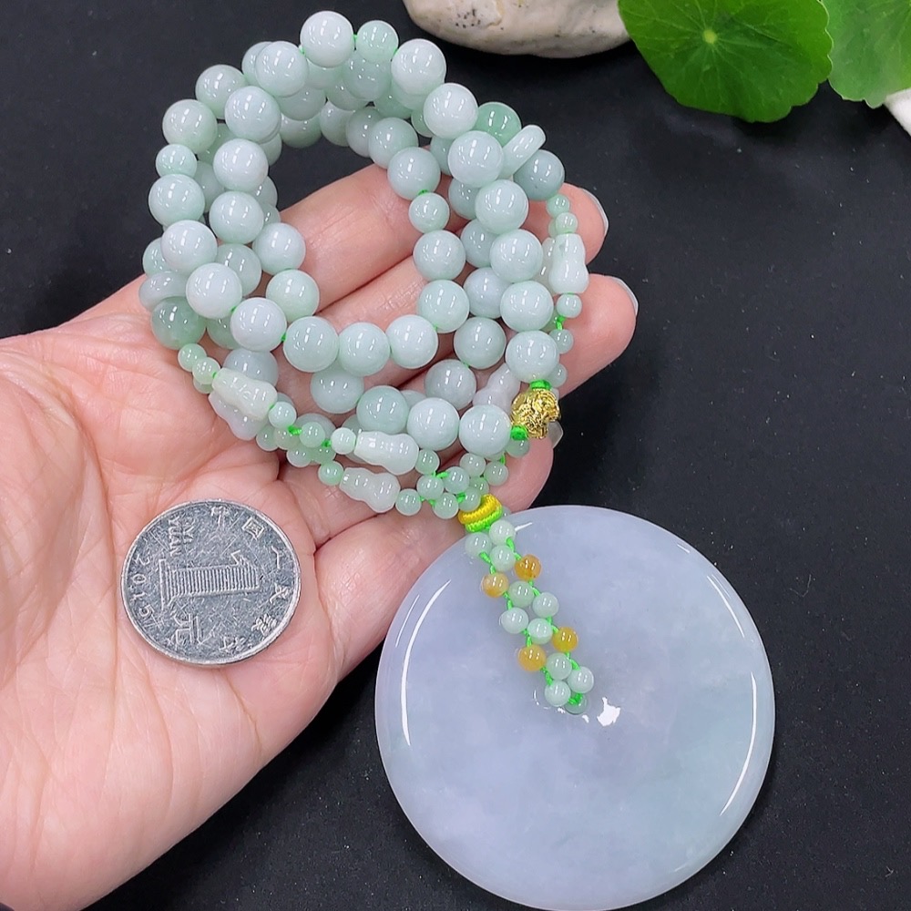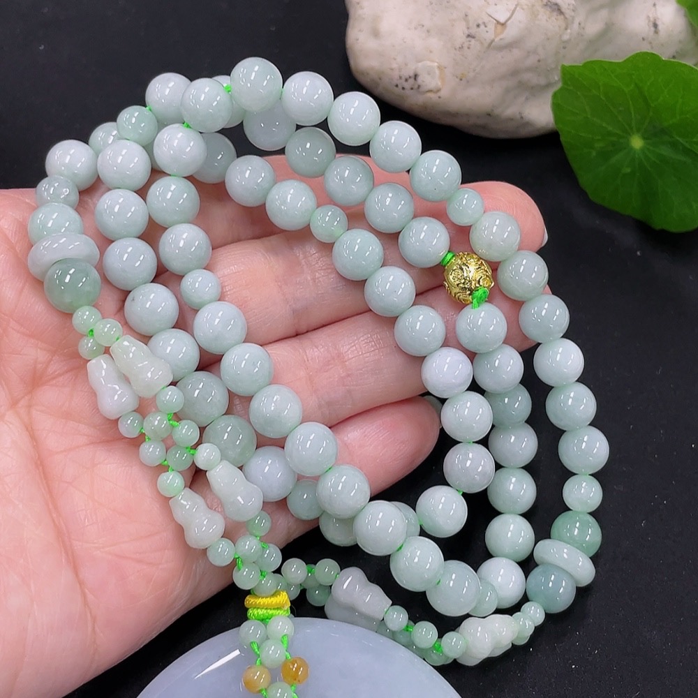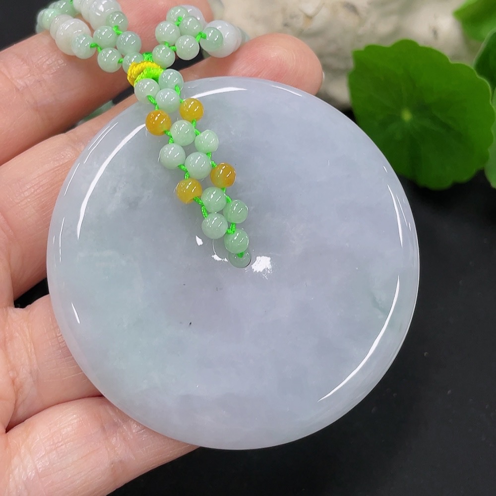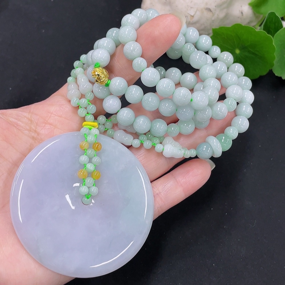 Jadeite safety buckle pendant with a total weight of approximately 114g (accompanying beads non-A) (yellow beads non-A) (non-gold inlaid)